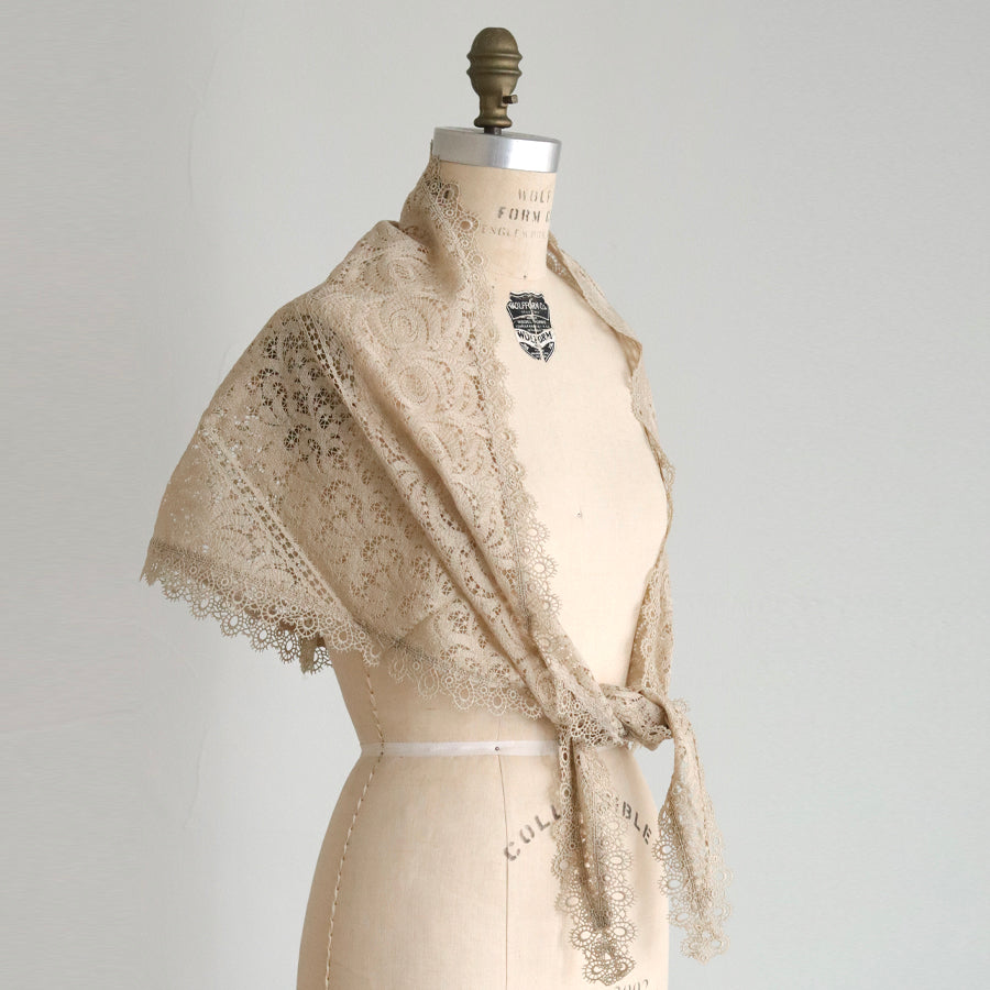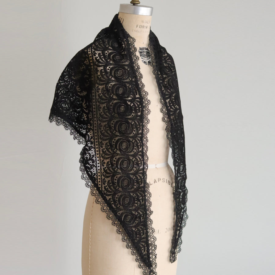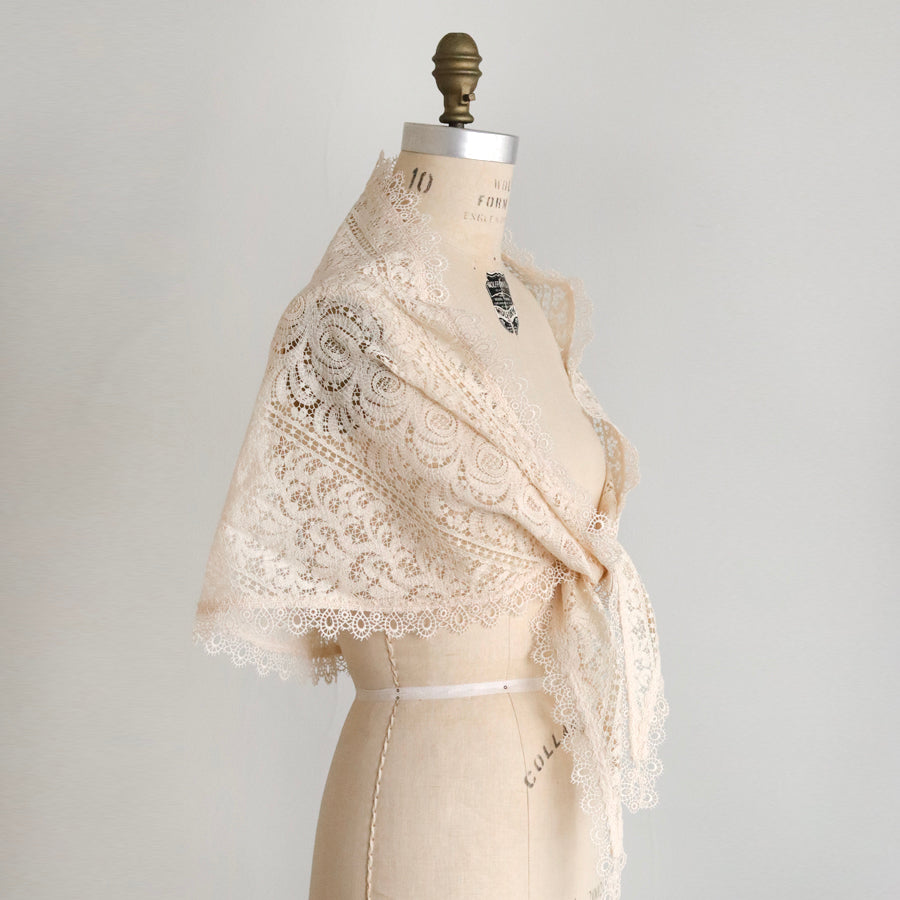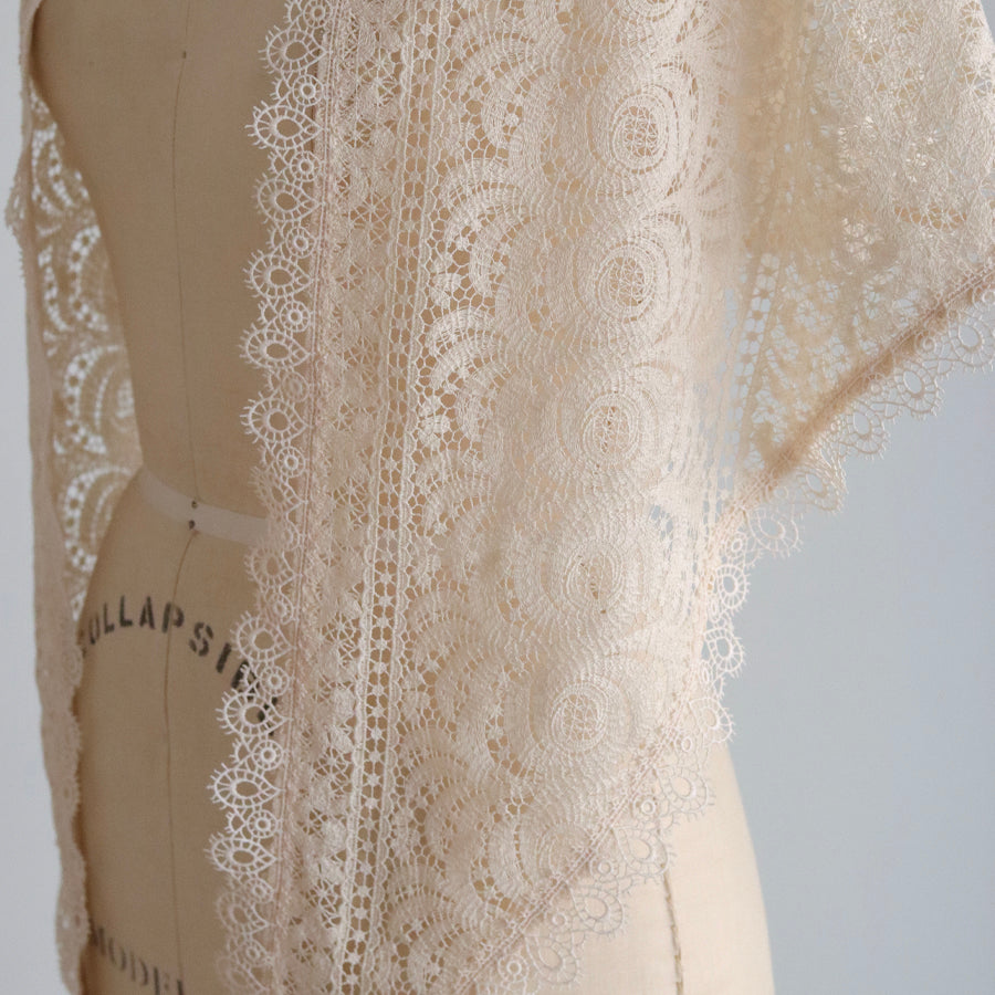 オリジナルレース「縞模様ケミカル」を使用した三角ストール。