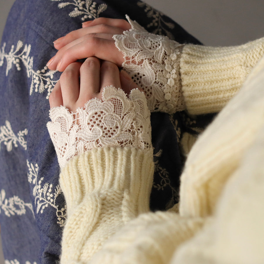 いつものお洋服に取り入れるだけで華やかなレースのレイヤードを作れます。