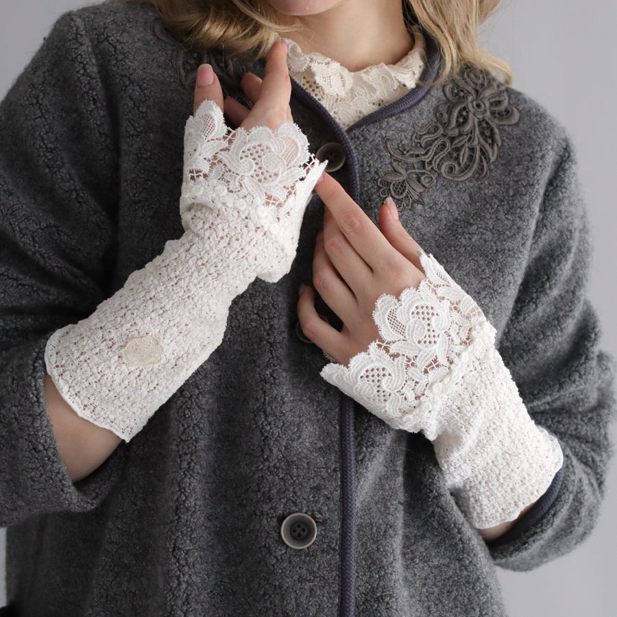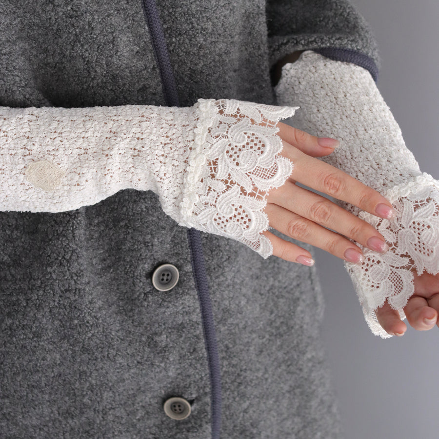 ストレッチラッセルに花音ケミカルレースを組み合わせ、付け心地の良さとレースの華やかさを兼ね合わせたカフスを作りました。