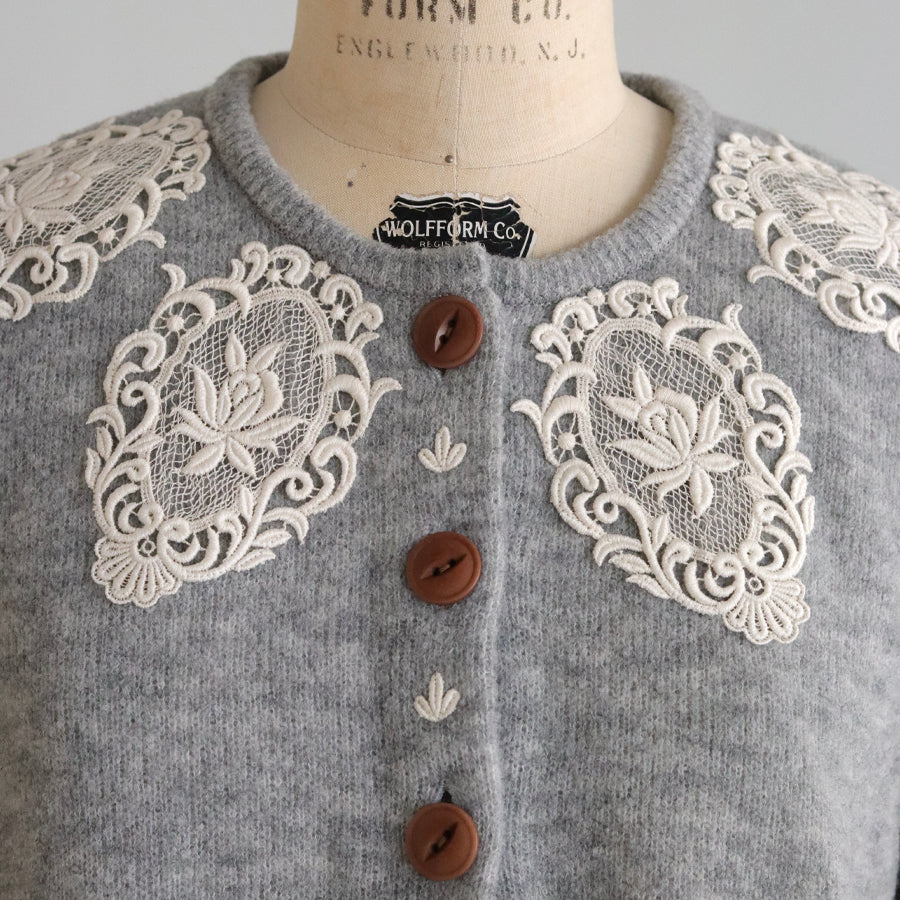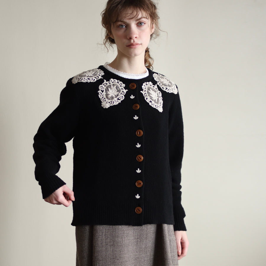 ボタンとボタンの間にちょこんとあしらわれた小さなモチーフレースもアクセントになっています。