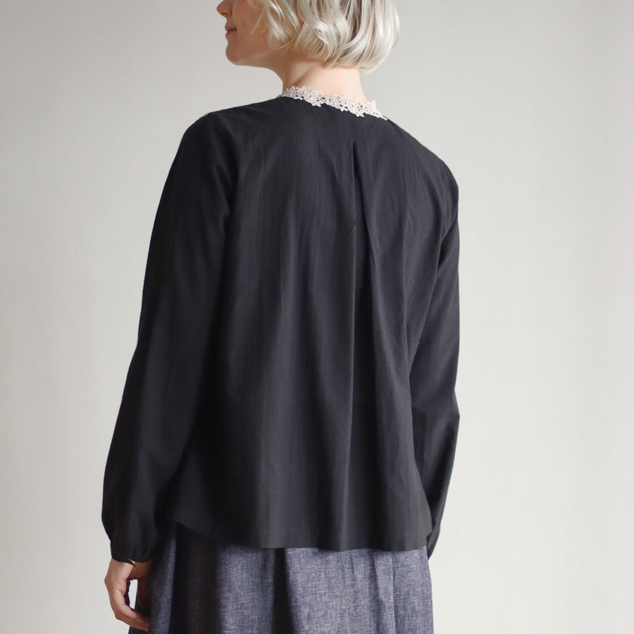 甘撚りのソフトなタッチが心地良い「60ふんわりコットン」シリーズのジレブラウス。