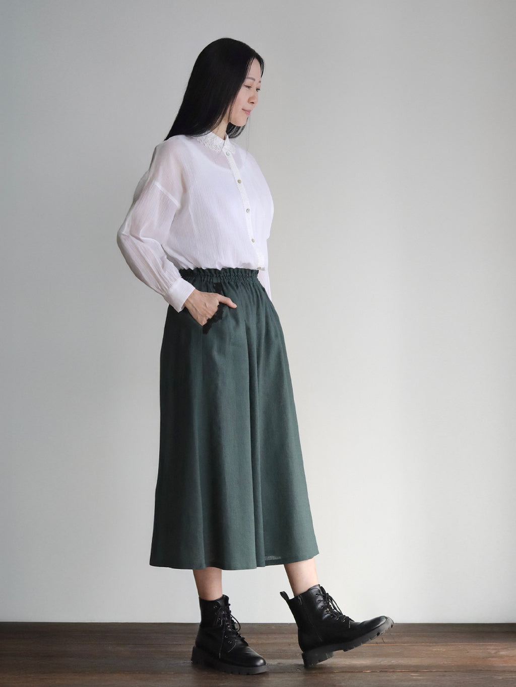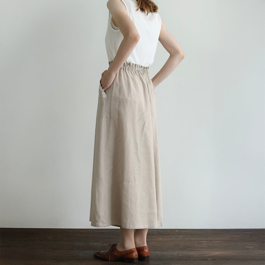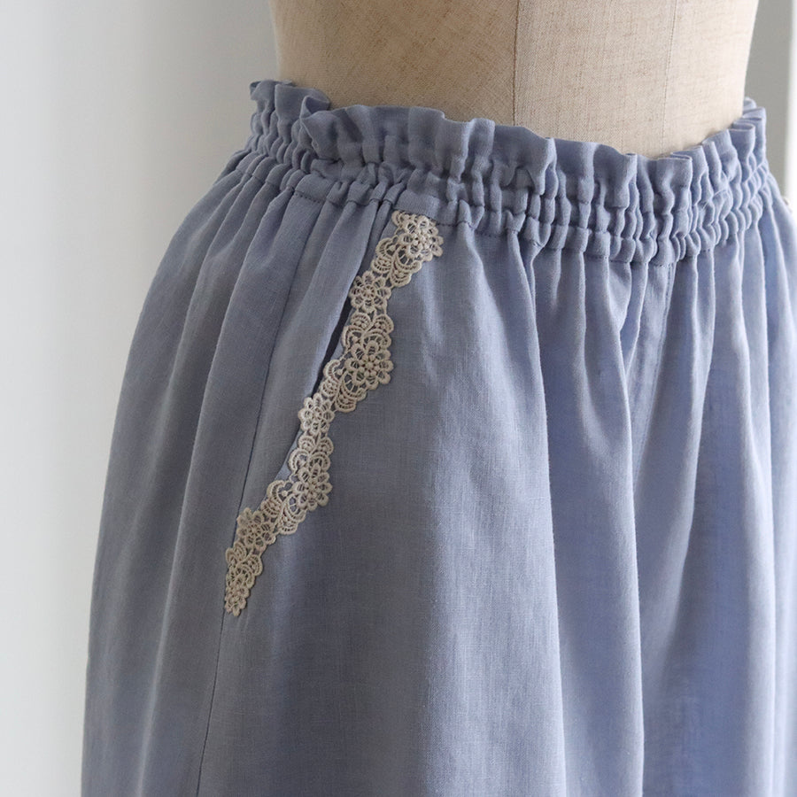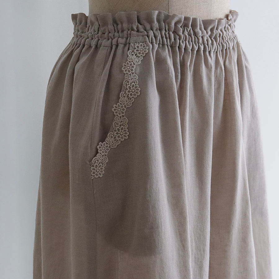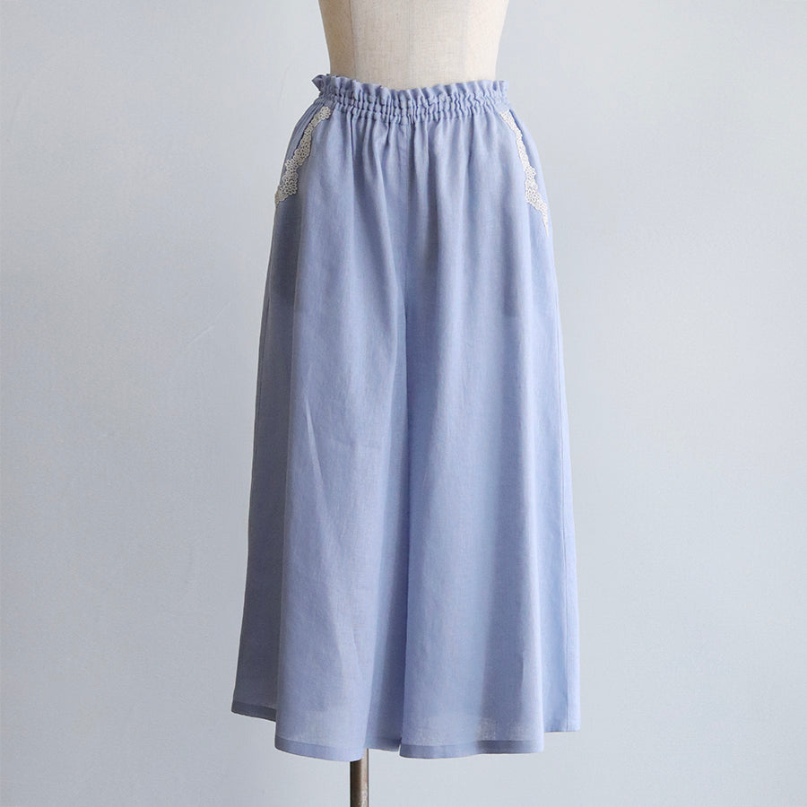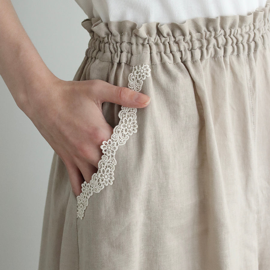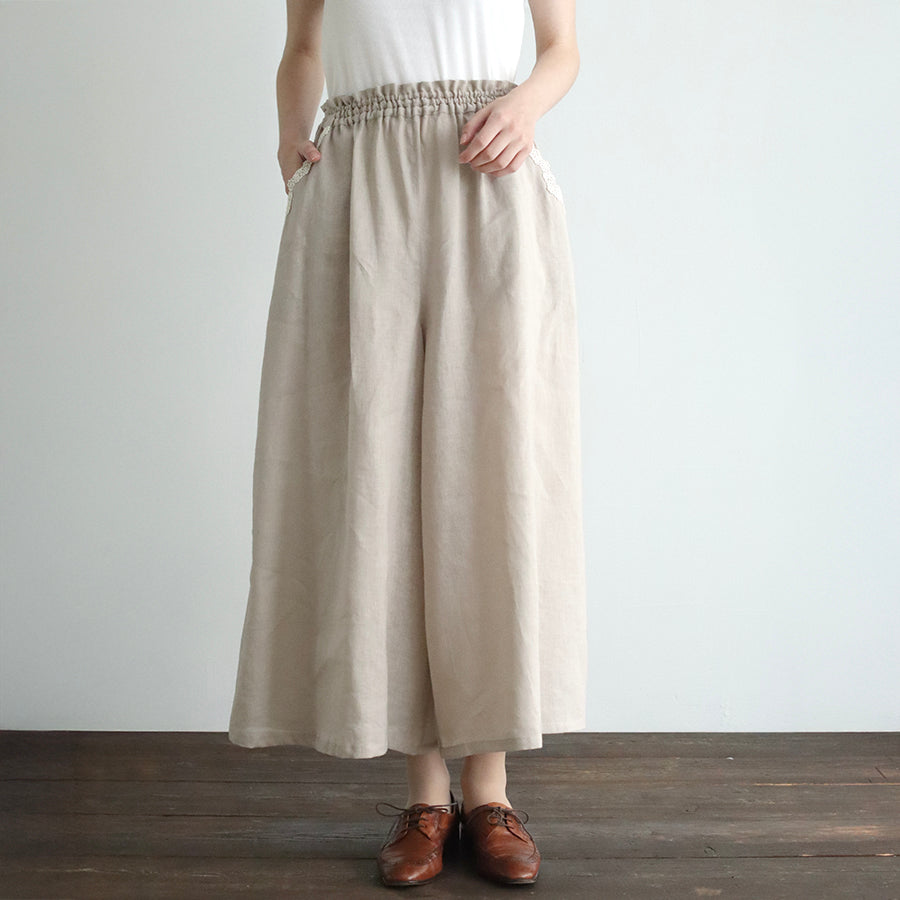 涼やかで上質な素材感のリネンコットンパンツ。日本の職人さんによる特殊な染色技法により独特のやわらかな風合いを生み出し、天然素材のナチュラルさを演出しています。