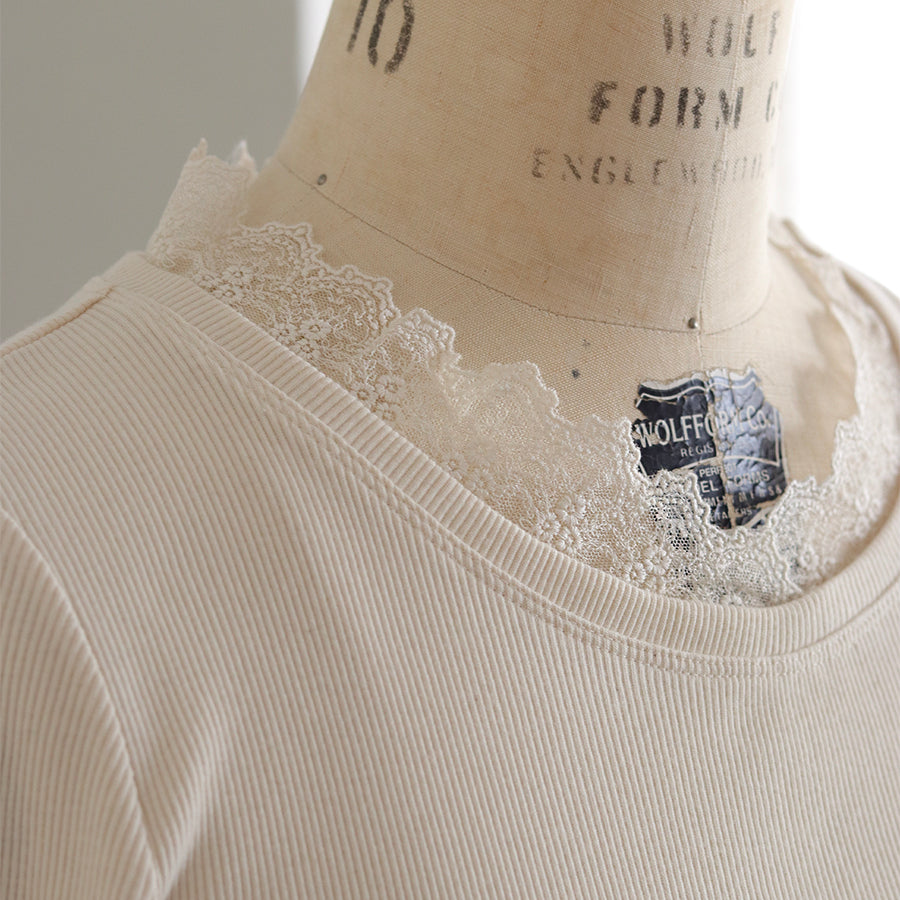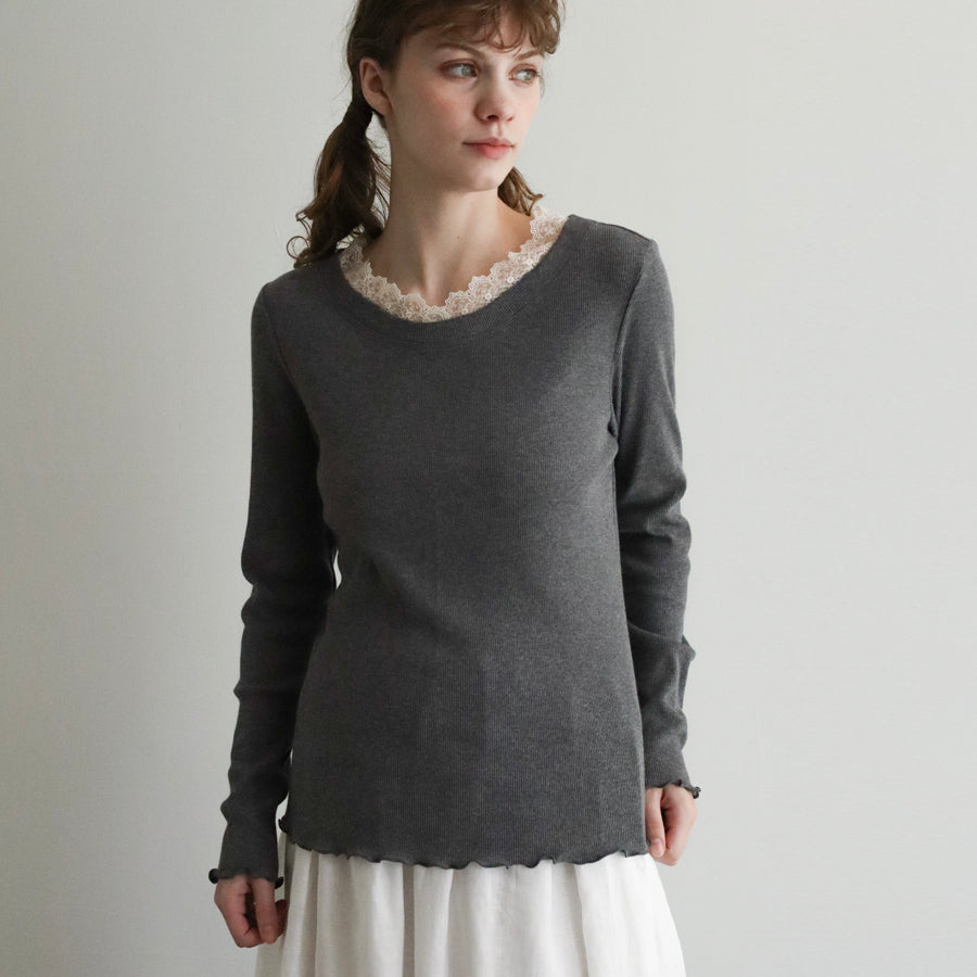 首周りのレースが華やかなレイヤードスタイルを演出してくれ、シーズンレスで活躍してくれます。