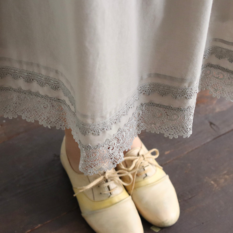 裾にはケミカルレースをあしらいました。ロング丈なので、裾からレースをちらっと出すのもオススメです。