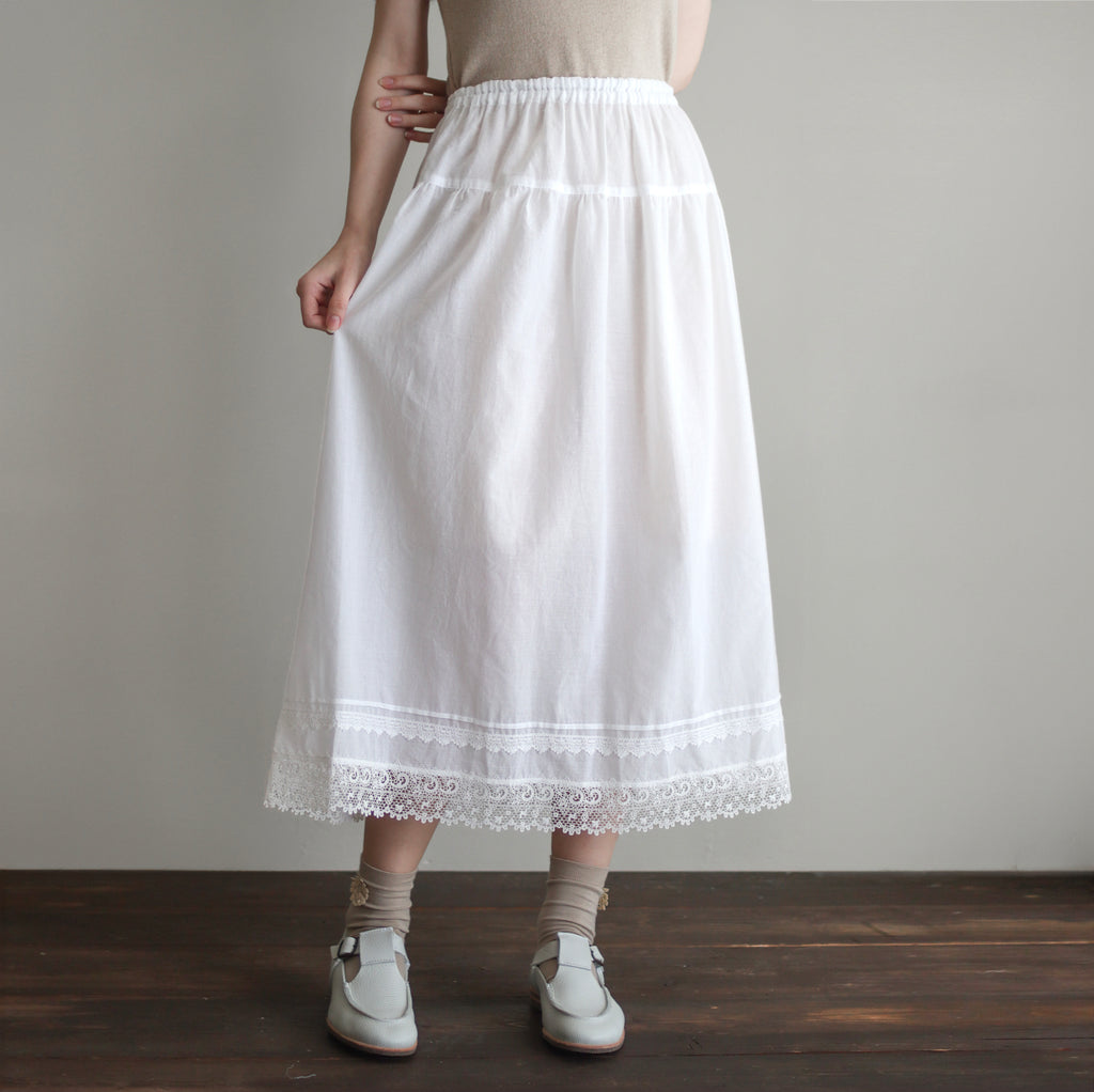 やわらかな80番手の綿糸で作った素材のロングペチスカート。
