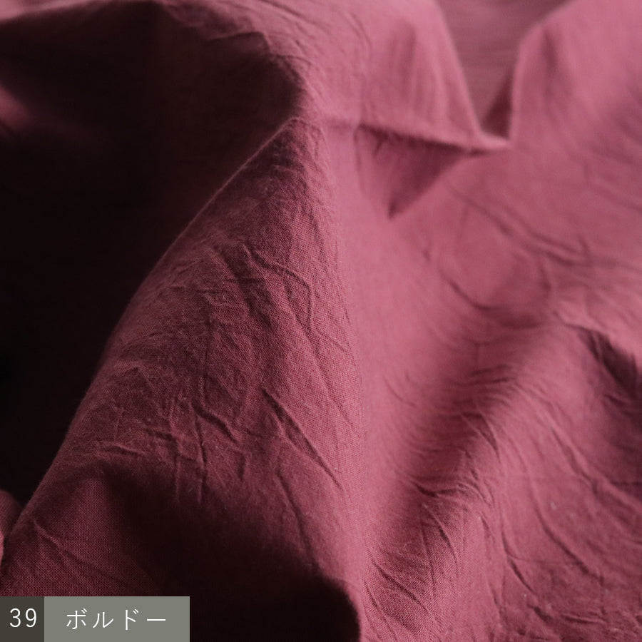 コットン100%の生地にワッシャー加工を施すことで、やわらかく自然なしわ感を演出しています。