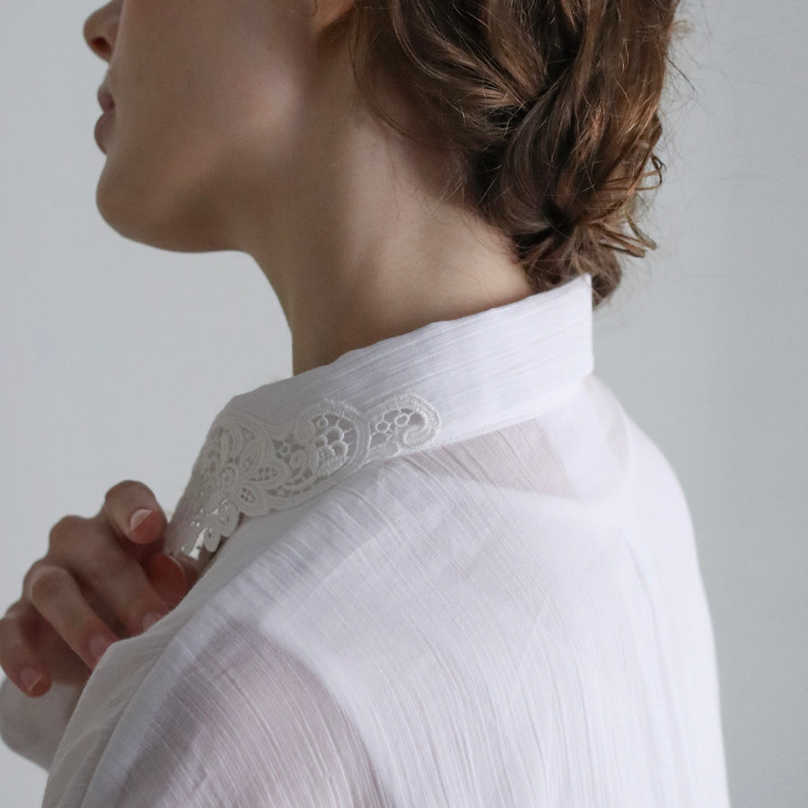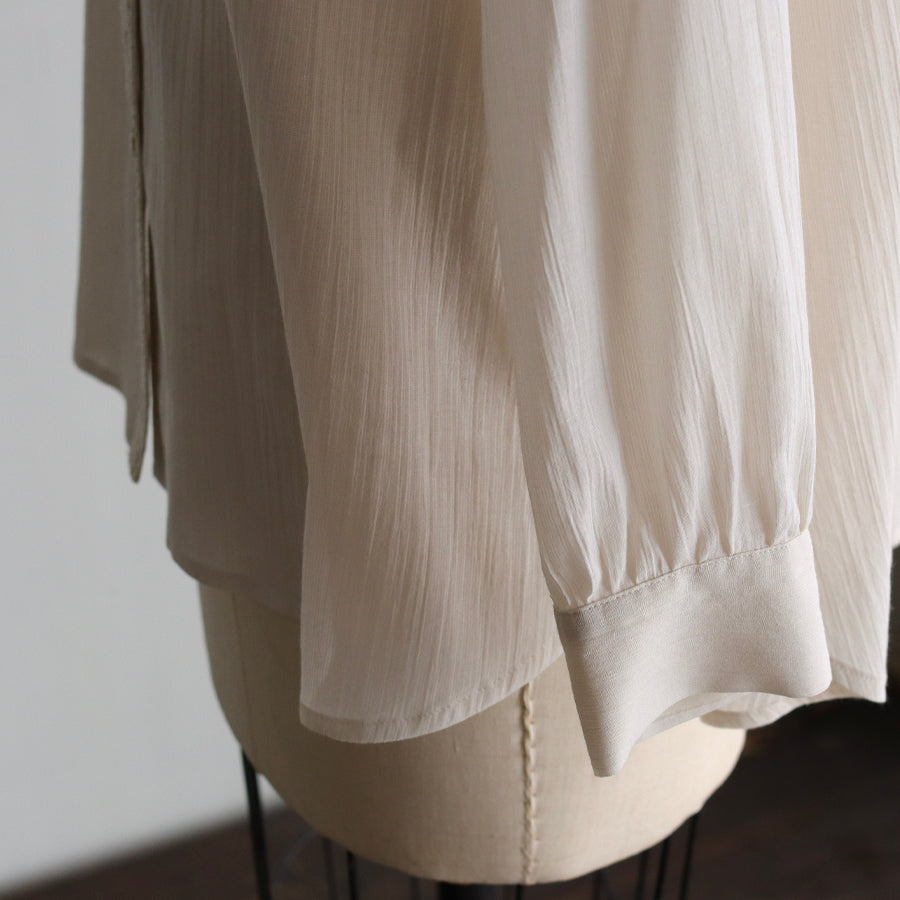非常にやわらかで肌にもよく馴染む素材感。シンプルで羽織にもなるブラウスはおしゃれに着回ししやすく、ワードロープにぜひ加えていただきたい一着です。