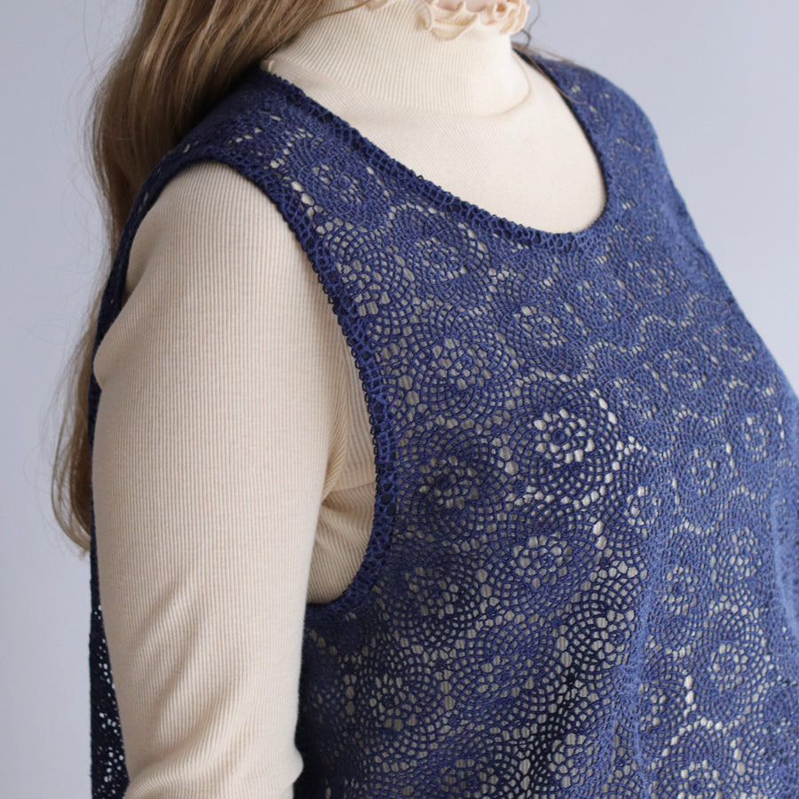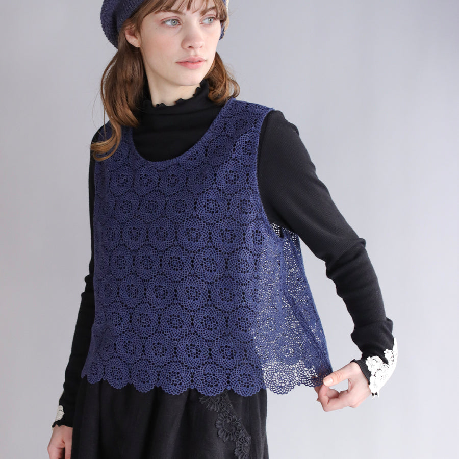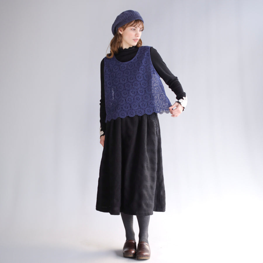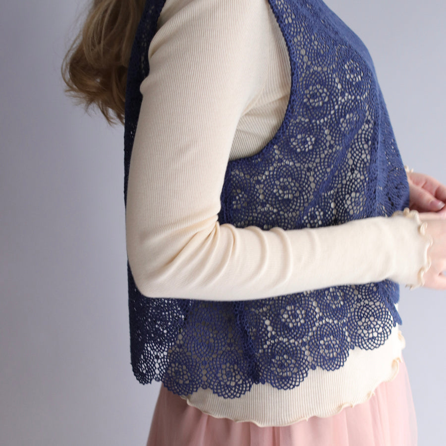 糸が細くとても繊細でやわらかな肌ざわりです。ハンドカットした裾のスカラップが華やかさをプラス。