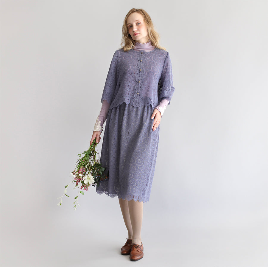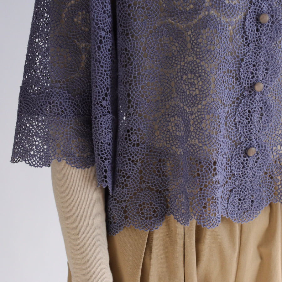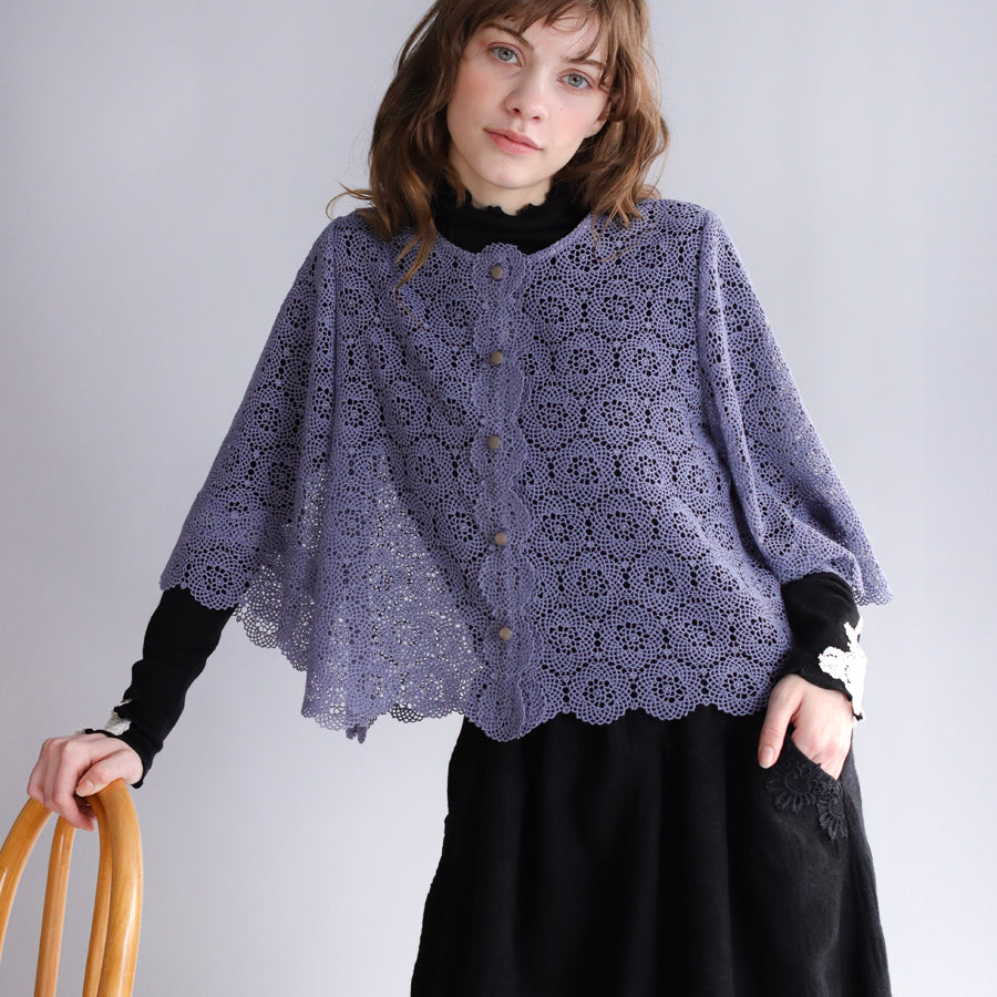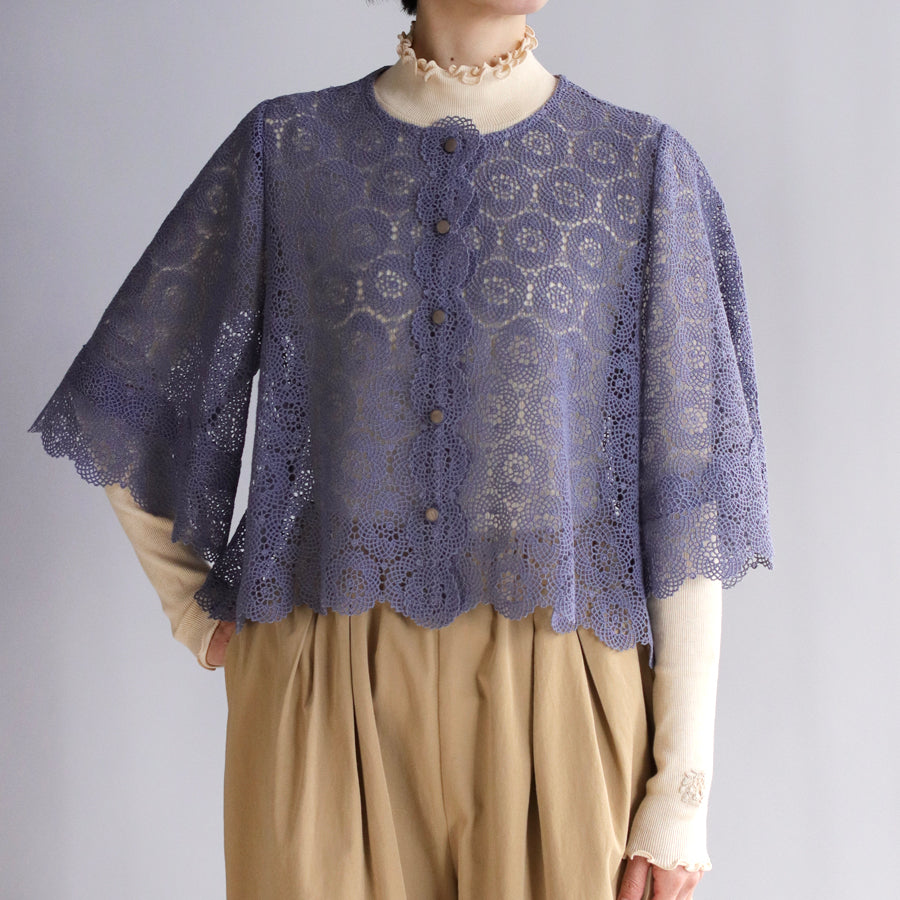糸が細くとても繊細でやわらかな肌ざわりです。ハンドカットしたお袖と裾のスカラップが華やかさをプラス。