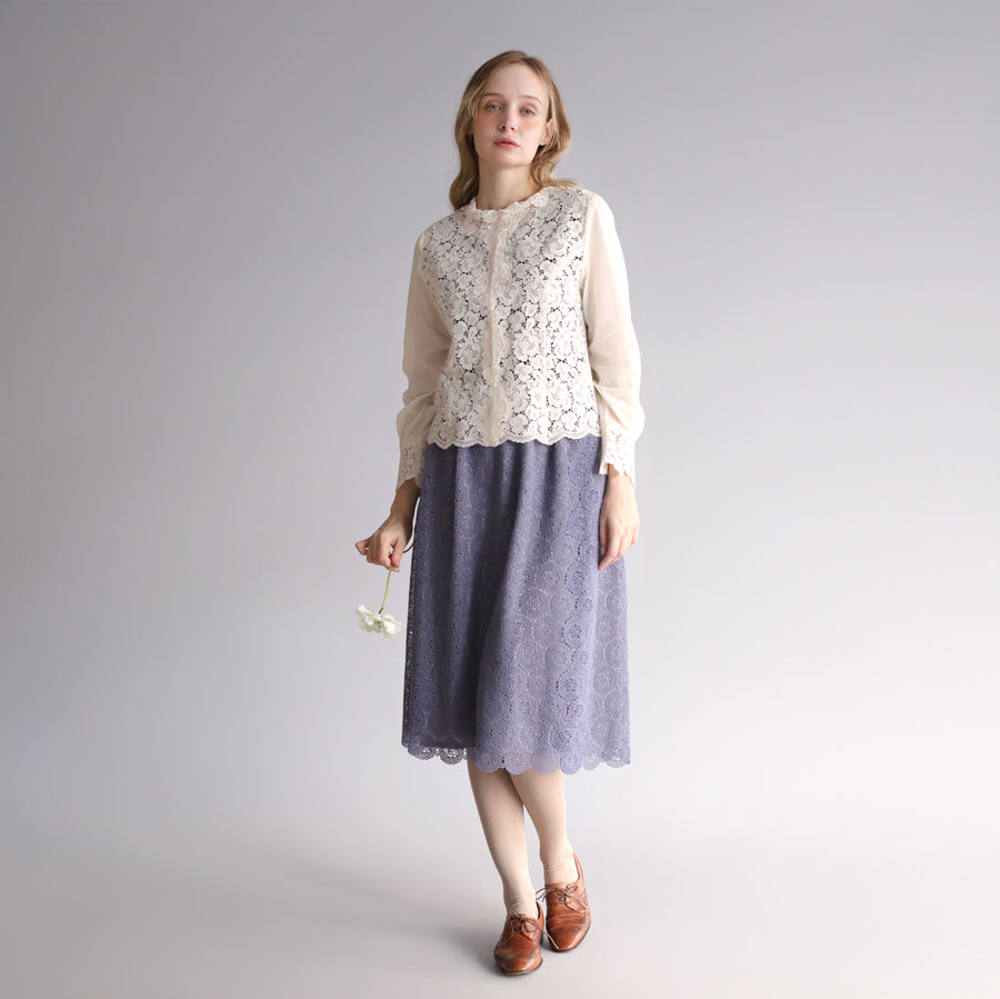 糸が細くとても繊細でやわらかな肌ざわりです。ハンドカットした裾のスカラップが華やかさをプラス。