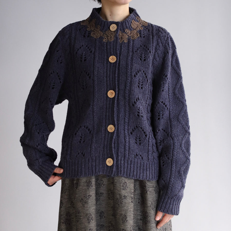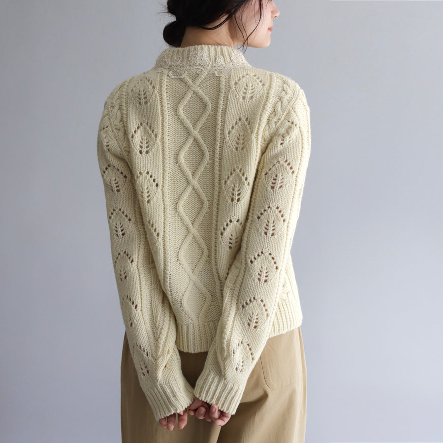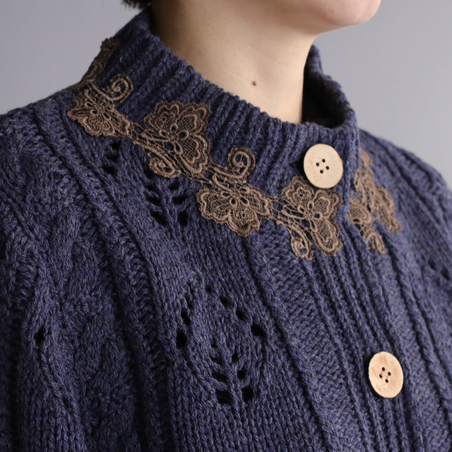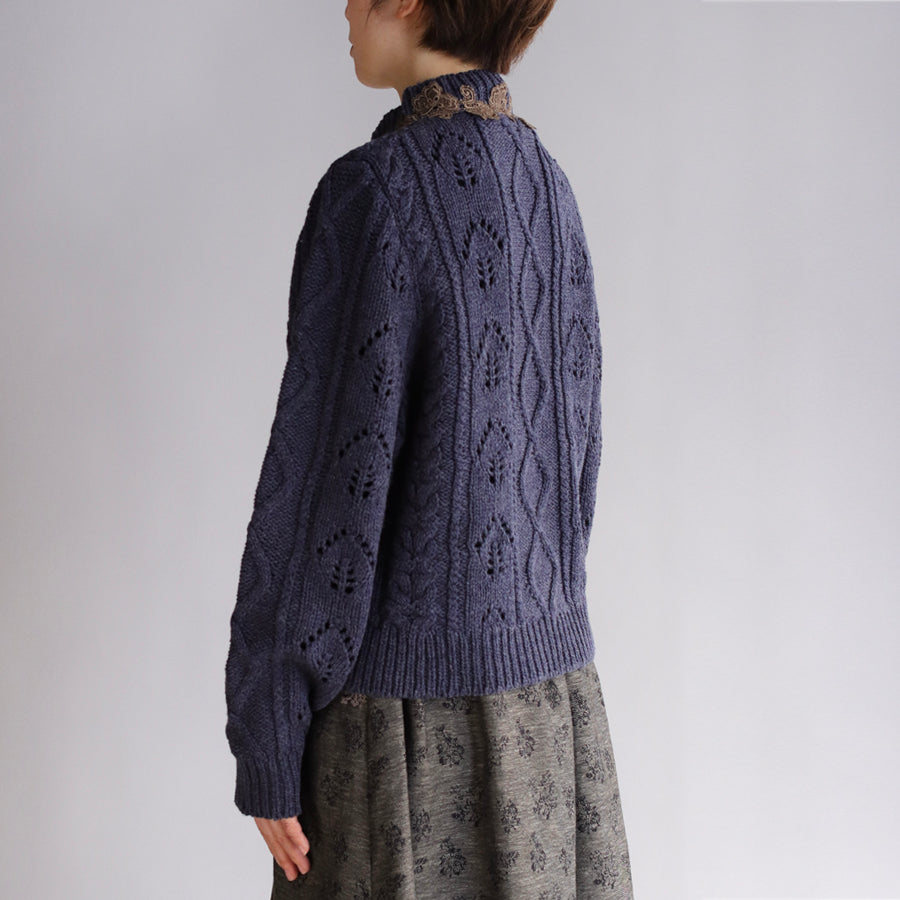 こちらはウール糸を二本取りして柄編みしたゆったりニットカーディガンです。