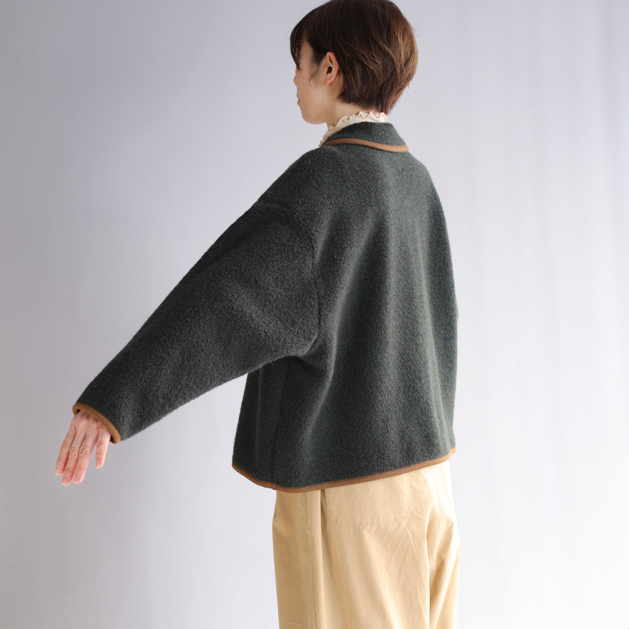 希少な丸編み機で制作した「ウールブークレ」シリーズのショートコート。