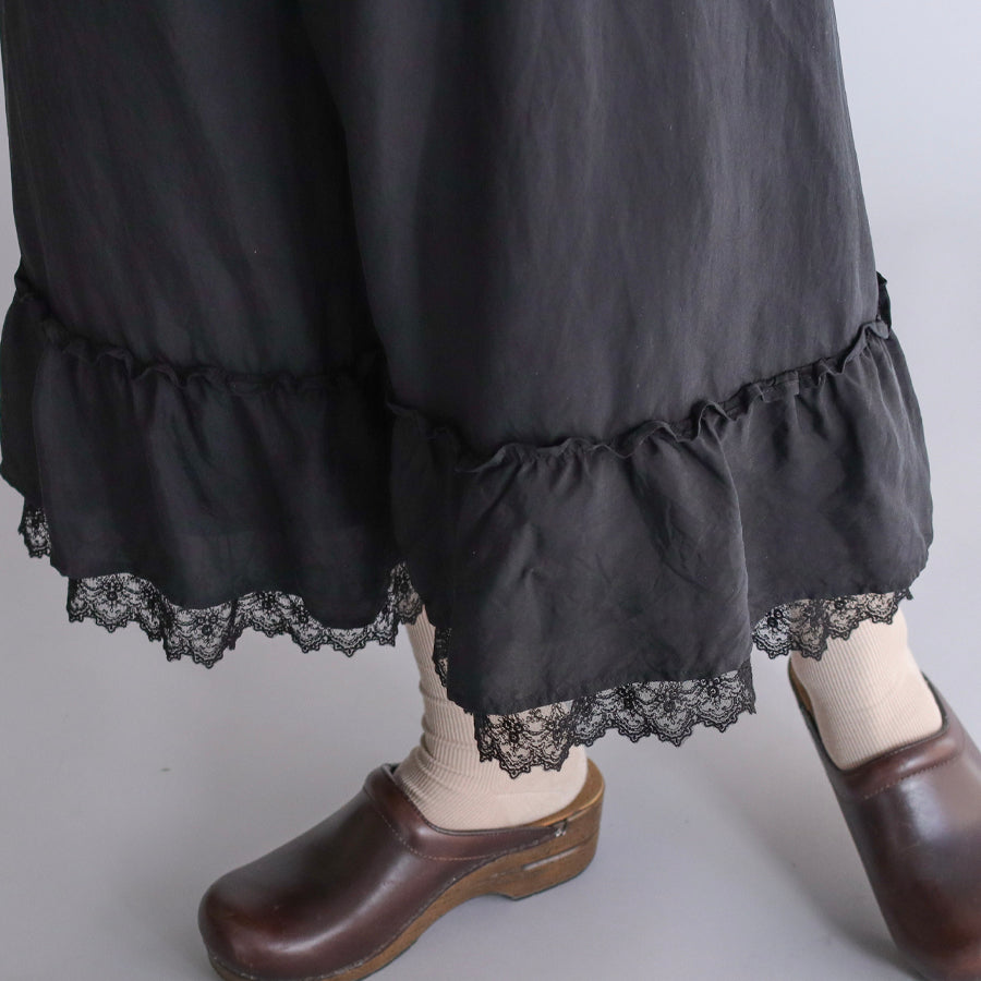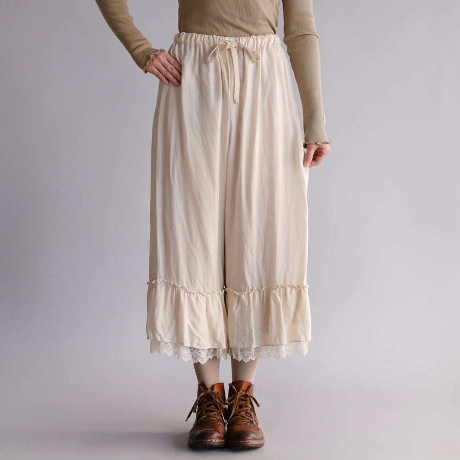 こちらはレイヤードのような裾のレース使いが目を引く新しいデザインのパンツ。