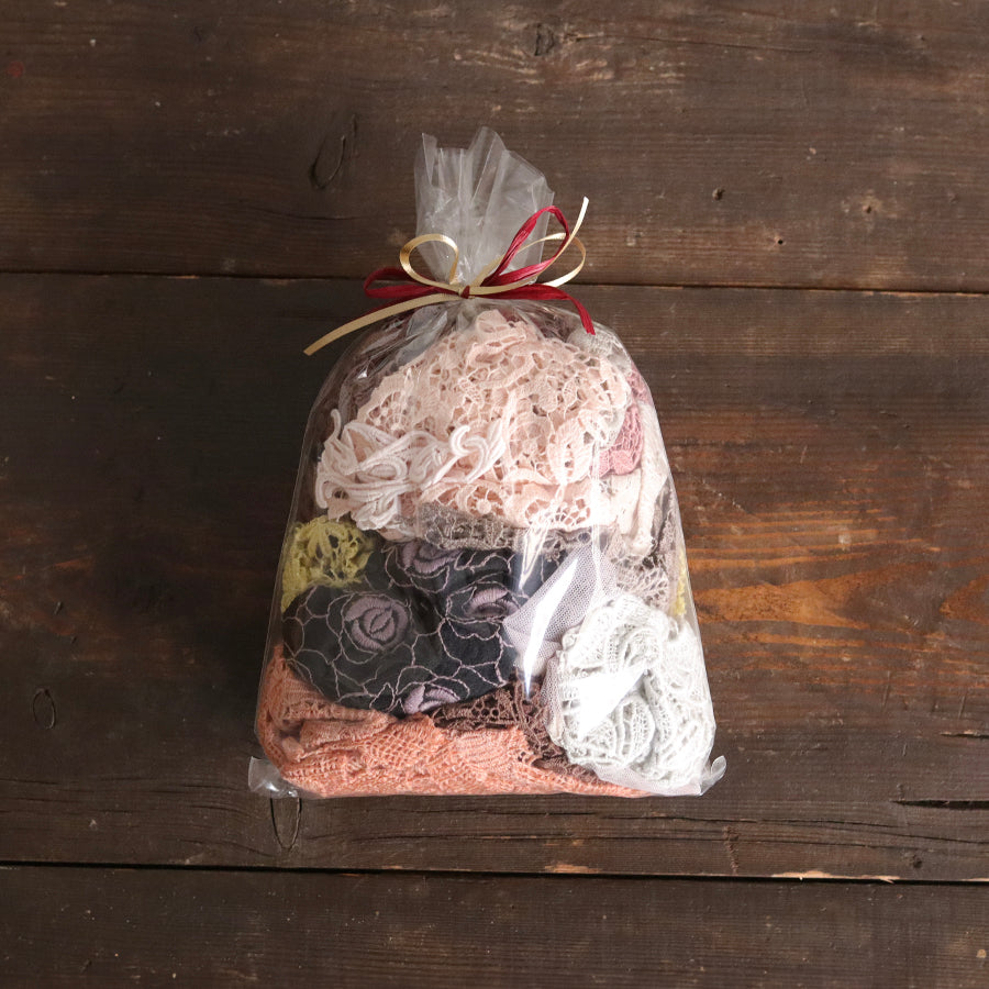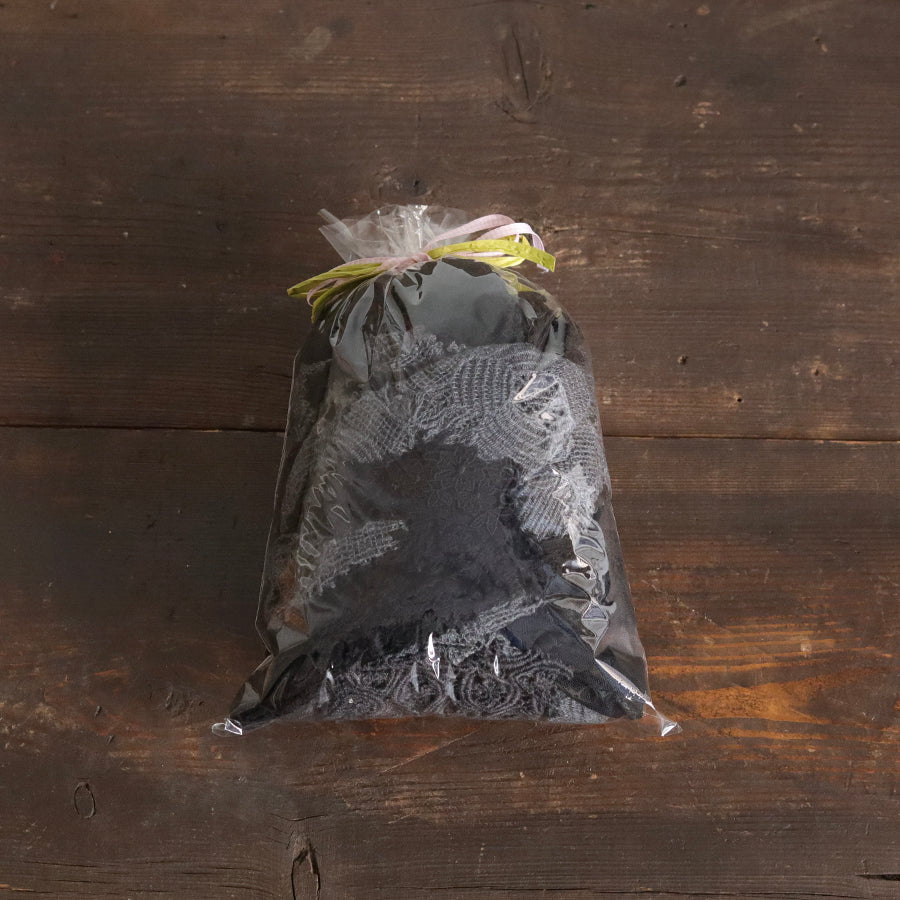裁断したままの状態で入っているため、糸くずやカットマーク用のシール、生地のかけらなどが入っている場合があります。