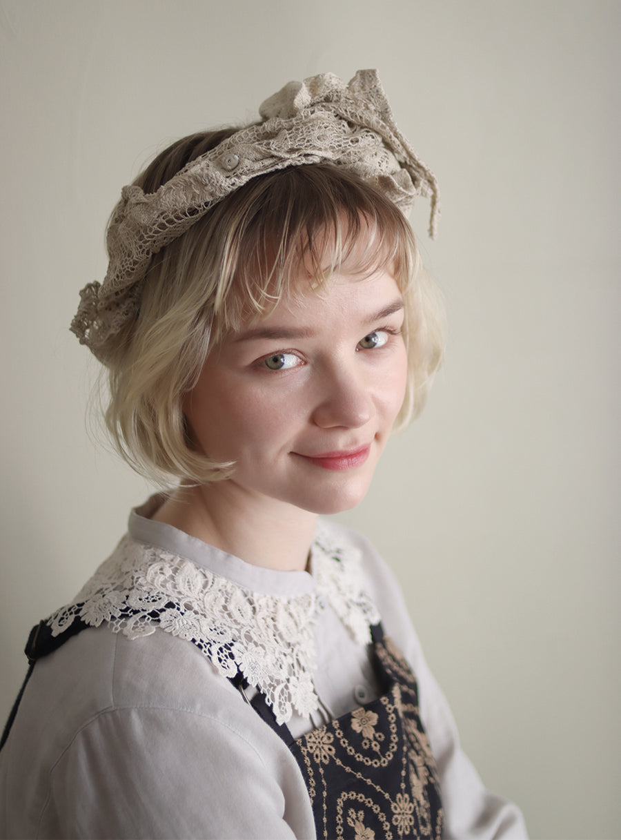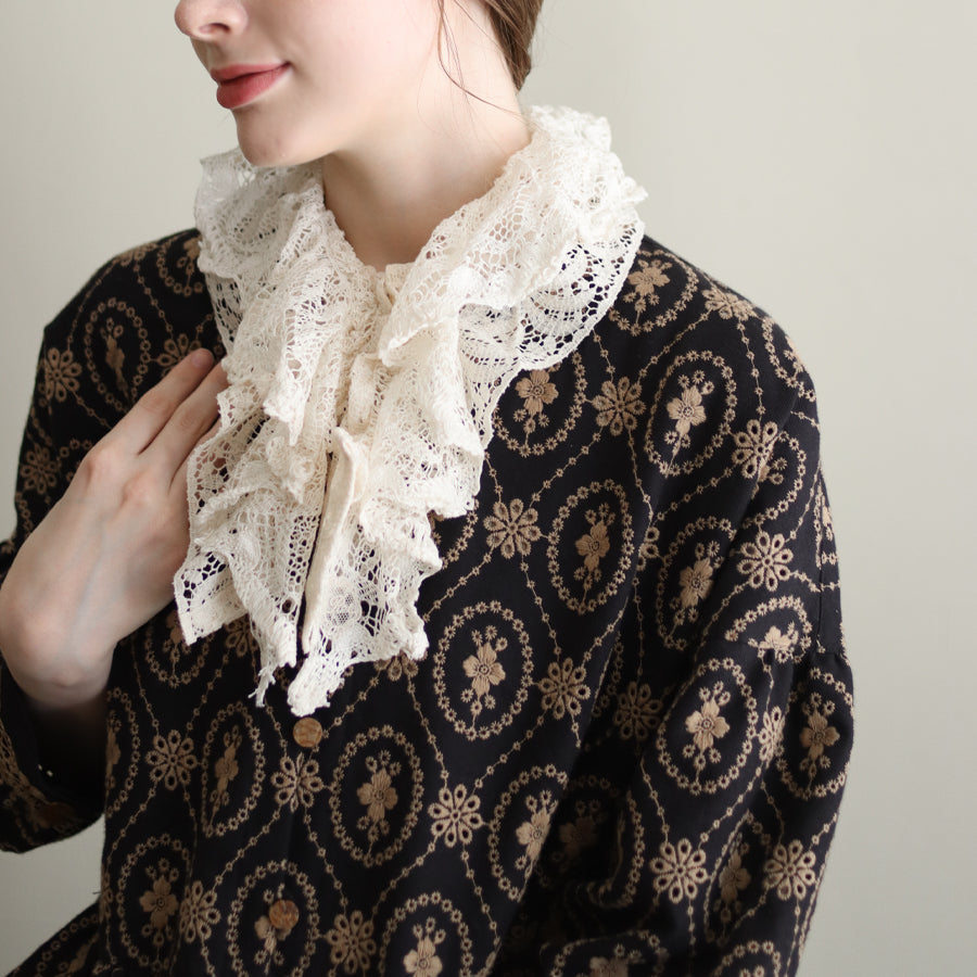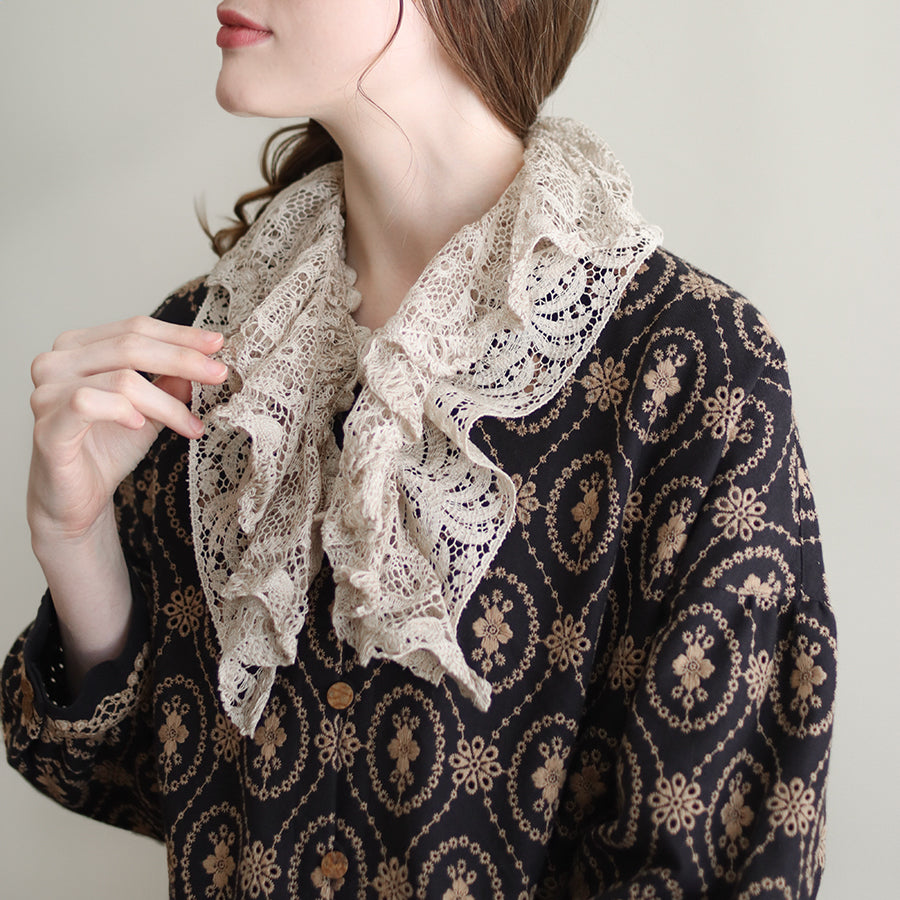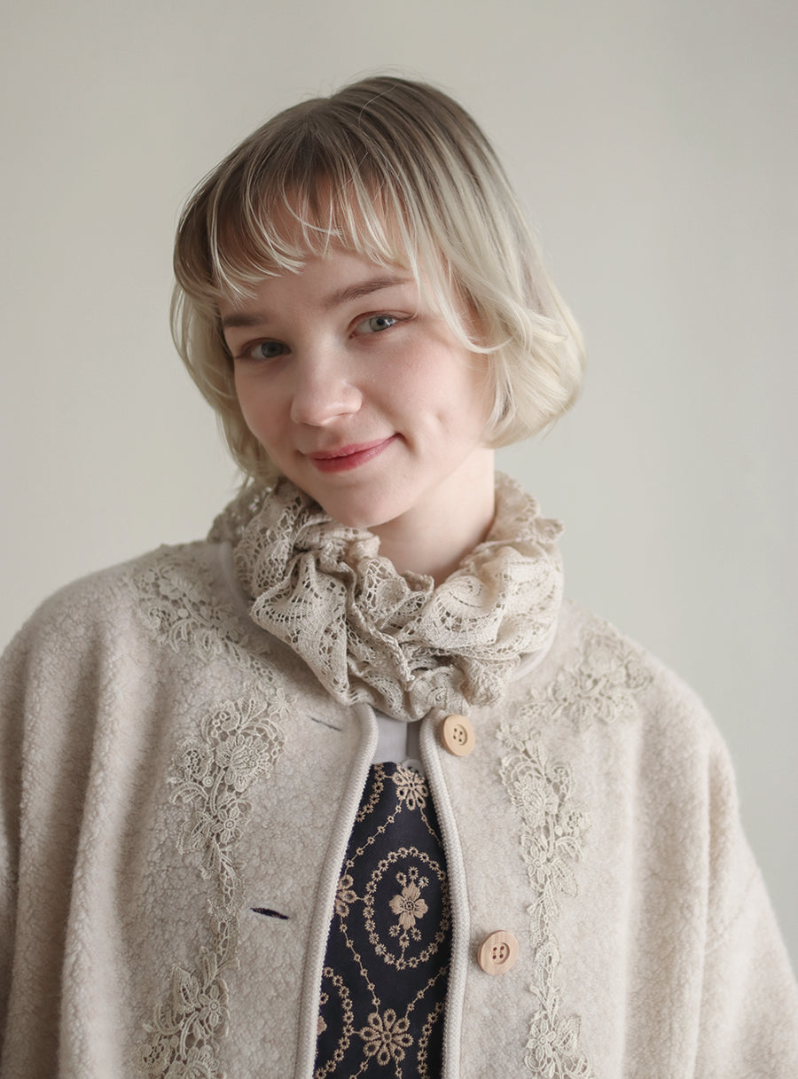 くるくると巻いても、スナップを留めて衿レースのようにしてもお使いいただけます。