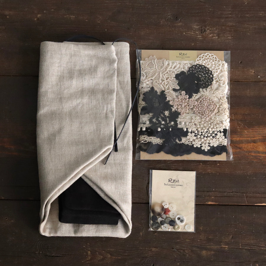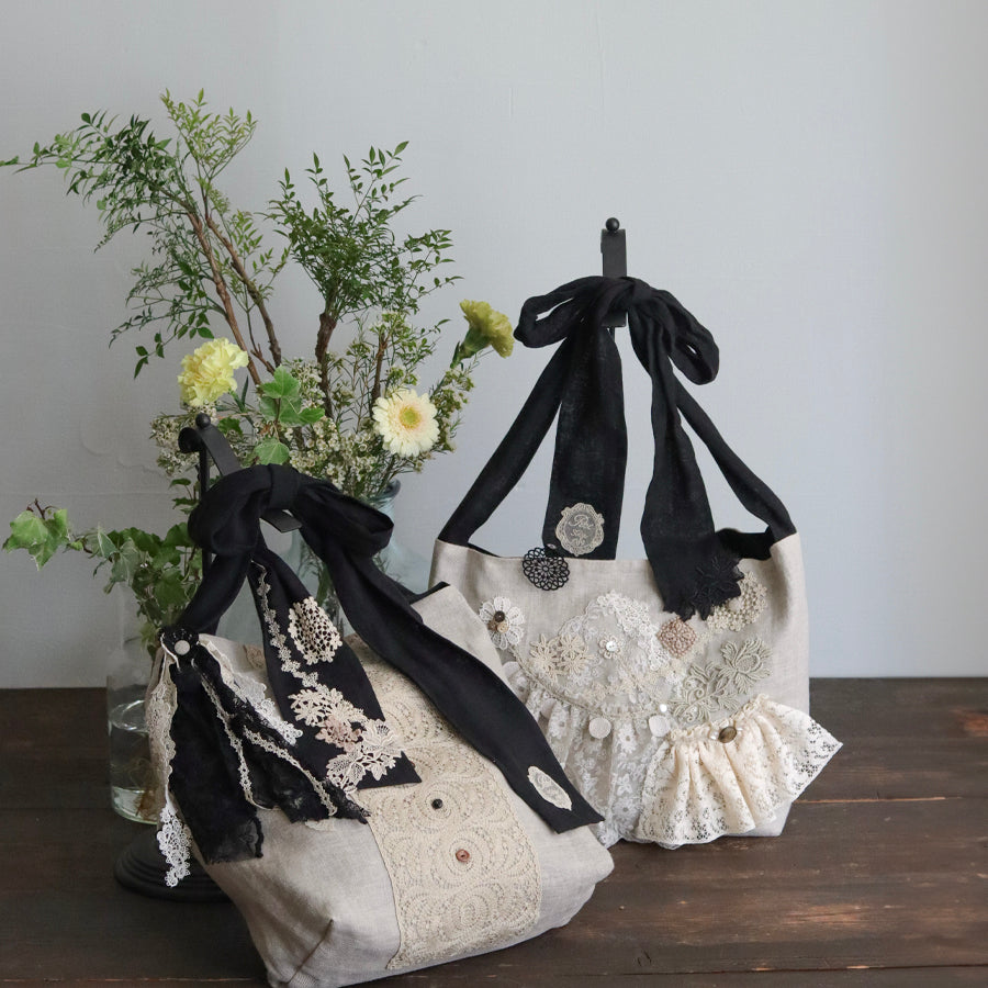 お好きな組み合わせでレースを縫い合わせて、世界に一つのオリジナルBagをお作りいただけます。