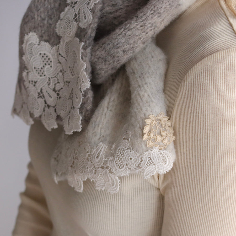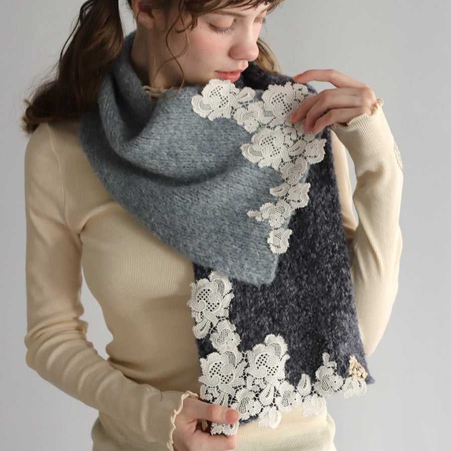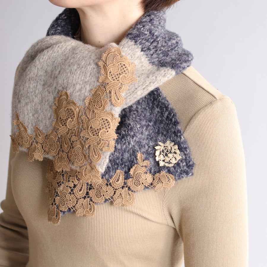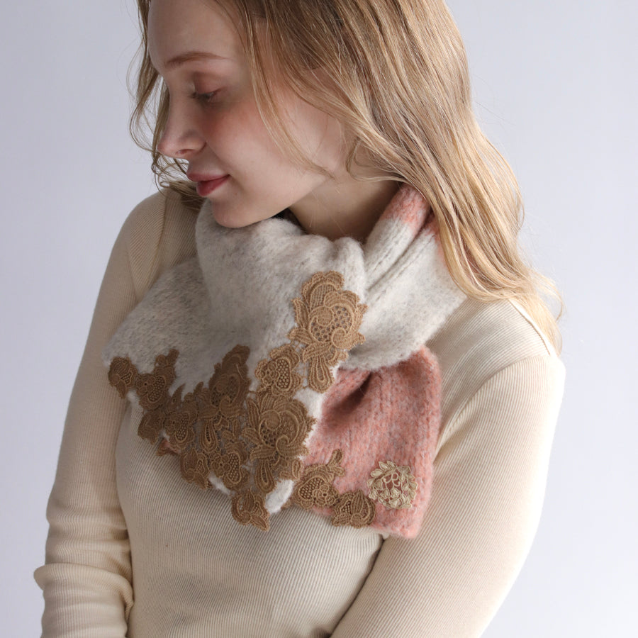 ツートンカラーでレースもとっても華やかです。首に巻いても苦しくない、でもあたたかい絶妙なサイズ感。