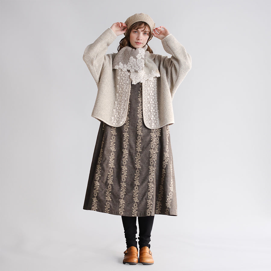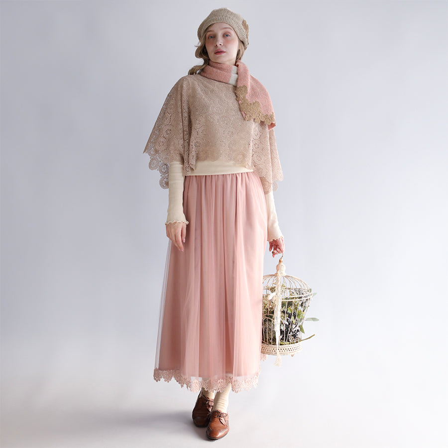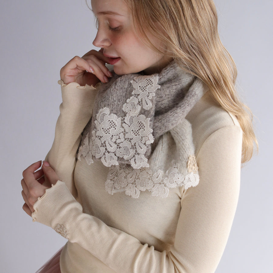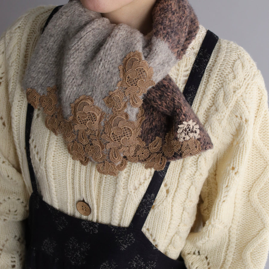 ツートンカラーでレースもとっても華やかです。首に巻いても苦しくない、でもあたたかい絶妙なサイズ感。
