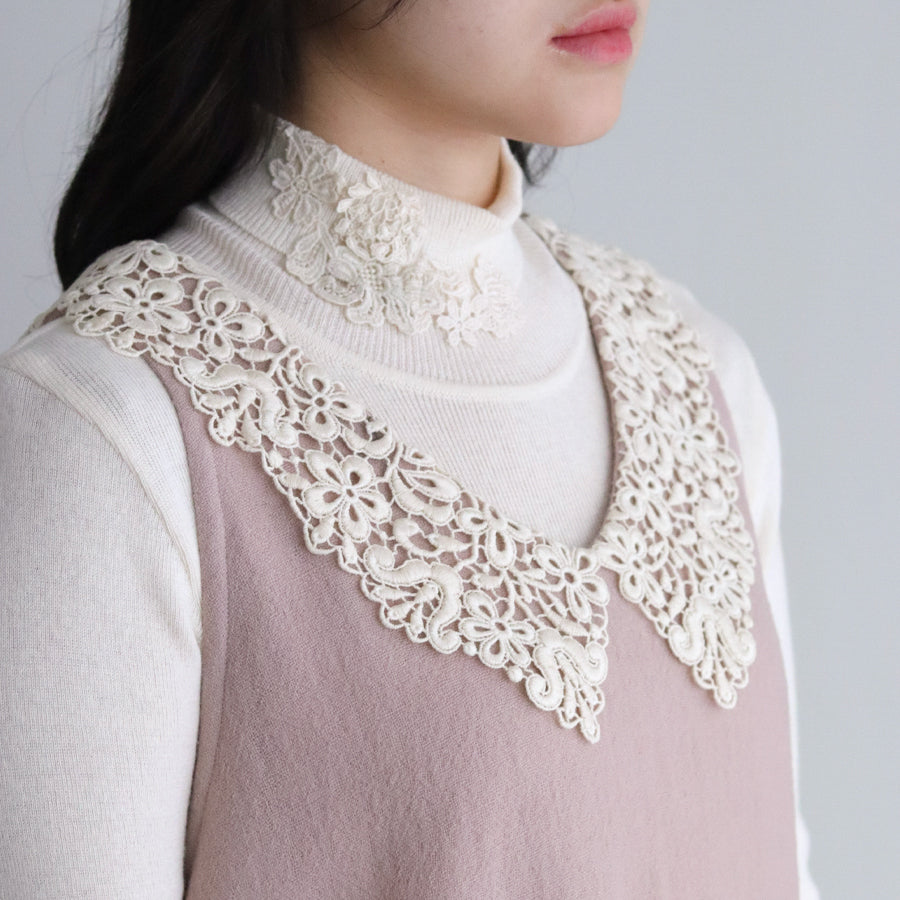 レースの襟がアクセントになっている一着です。