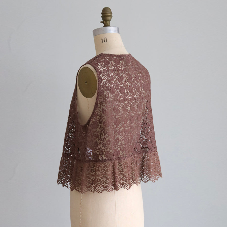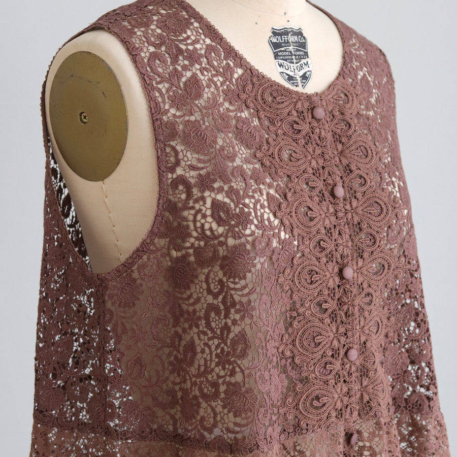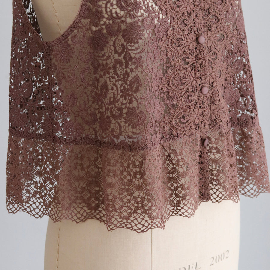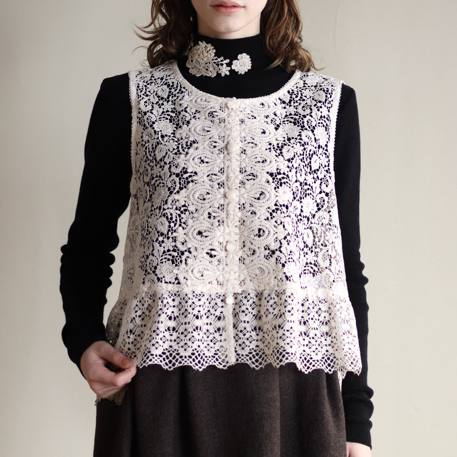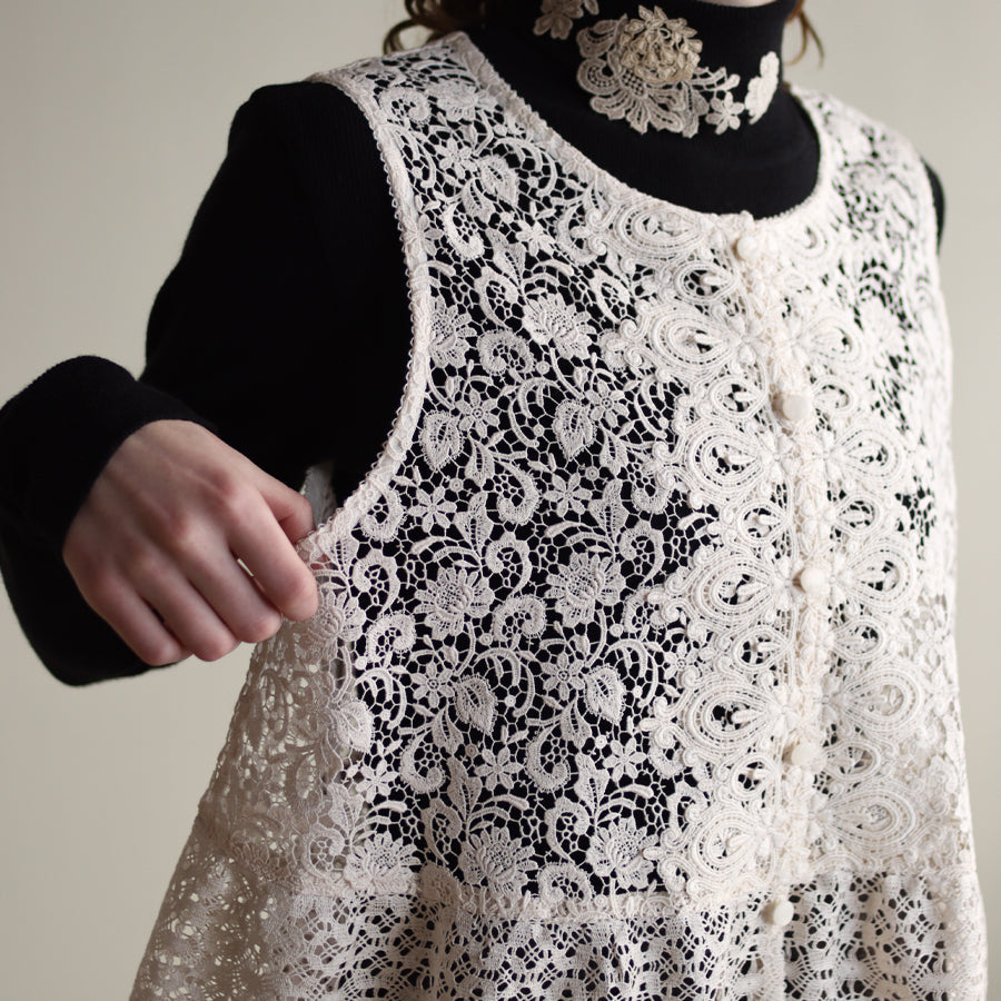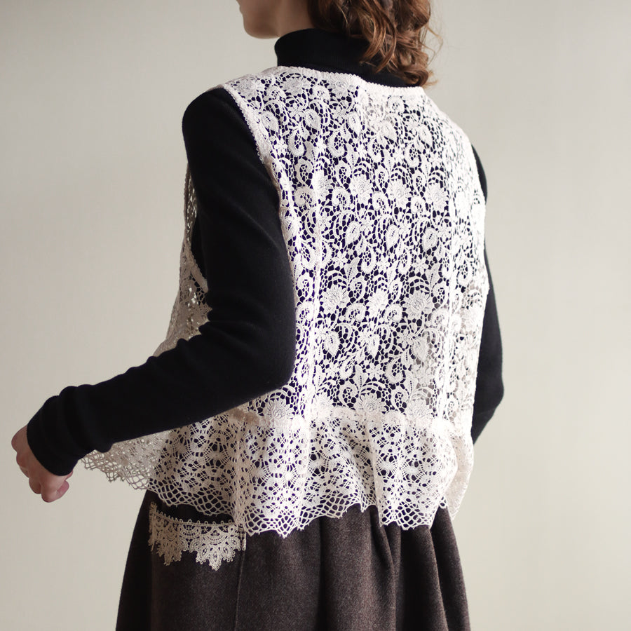 アンティークのような繊細で美しい糸使いが目を引くREIオリジナルレース「Anticoケミカル」のベスト。