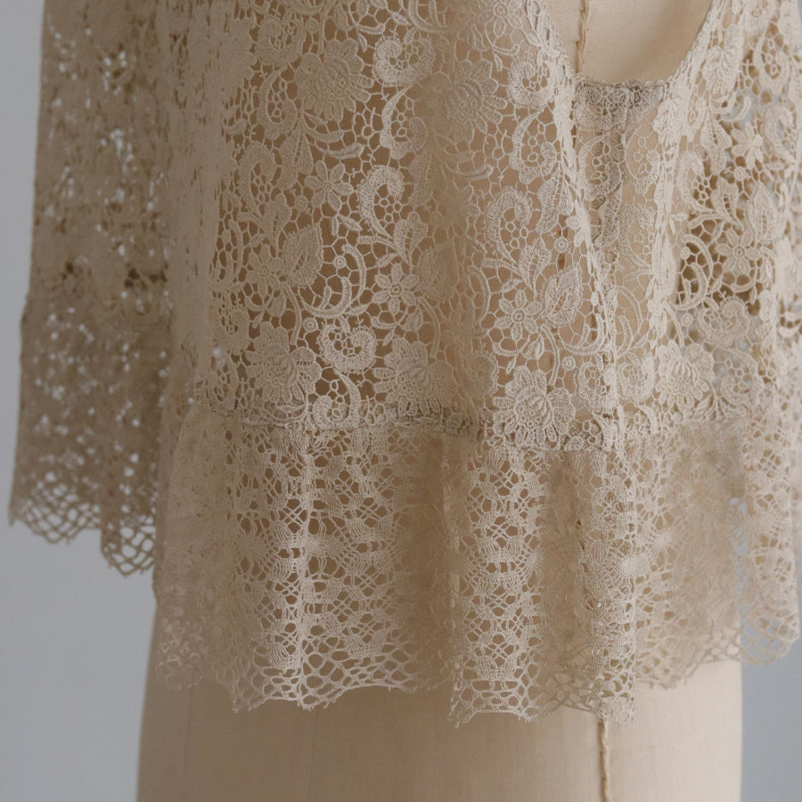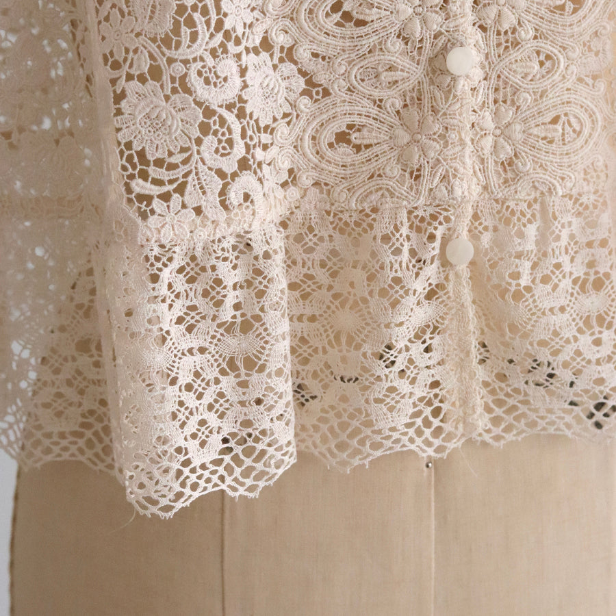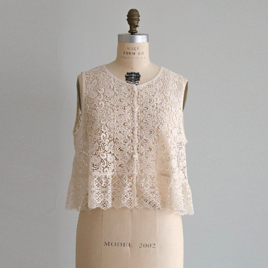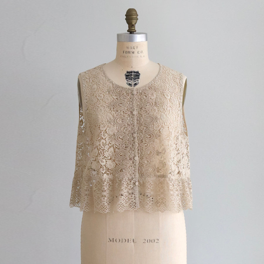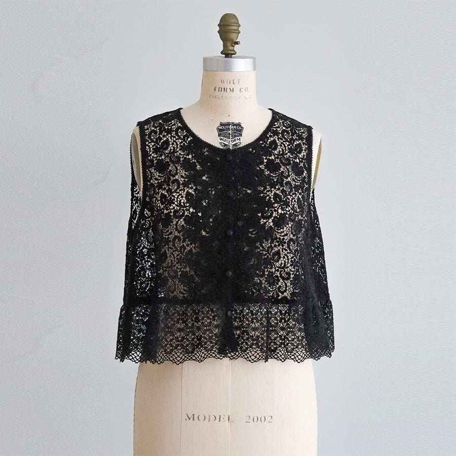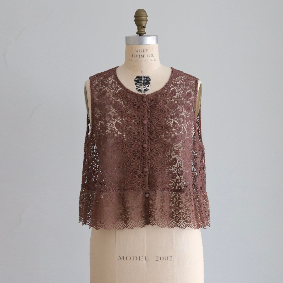 アンティークのような繊細で美しい糸使いが目を引くREIオリジナルレース「Anticoケミカル」のベスト。