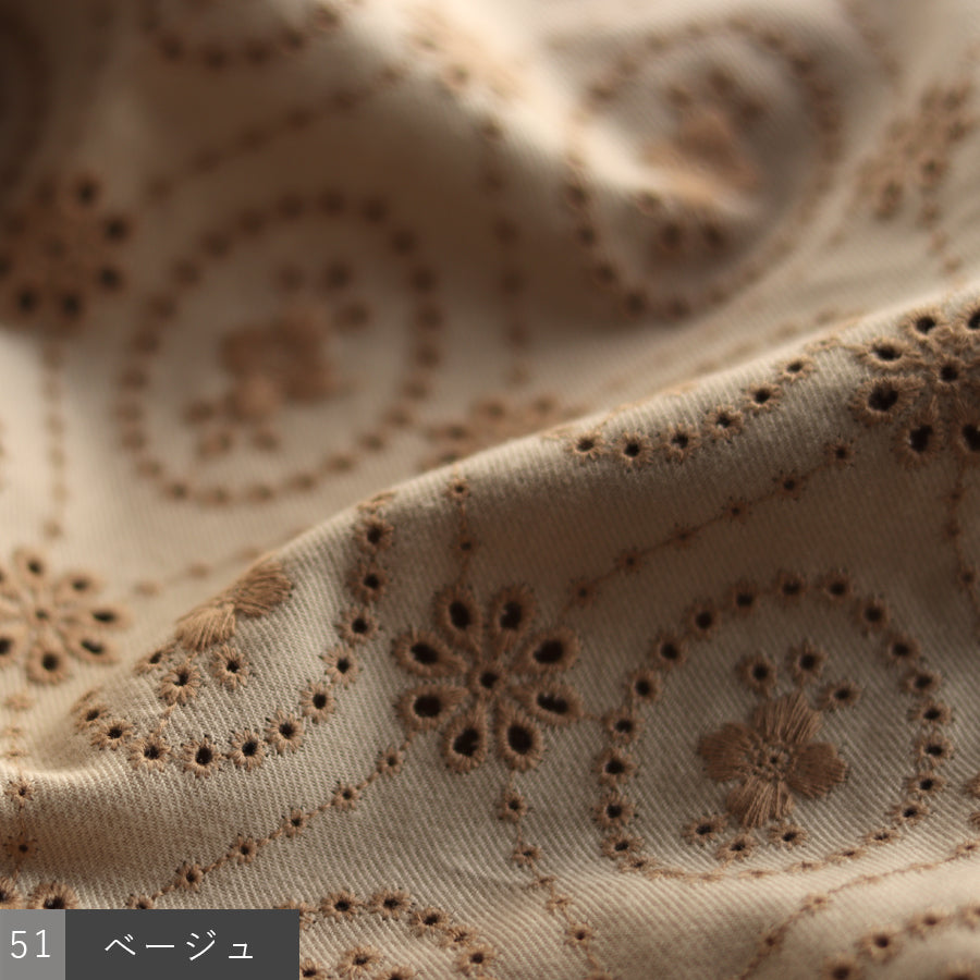 同じ刺繍素材でスカートも作っていますので、セットアップで着ていただくととても華やかです。