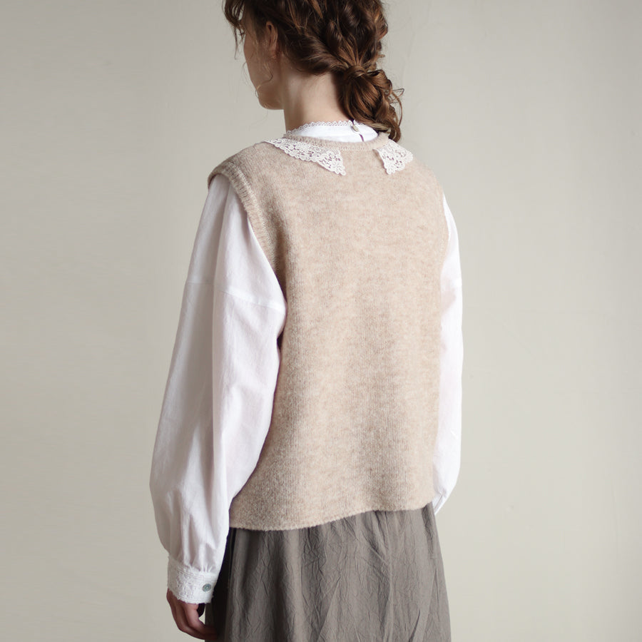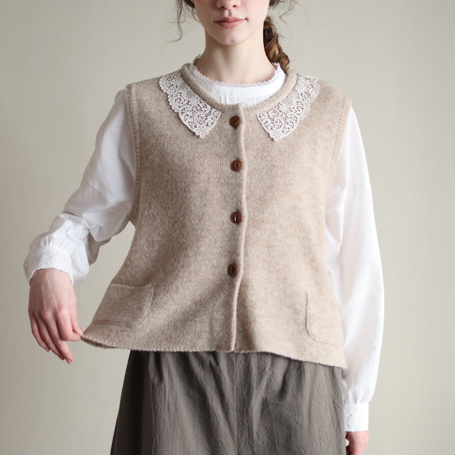 最高品種と言われるメリノ種のウールをループ状につむぐことで表情豊かな素材に仕立てた「ブークレknit」のベスト。