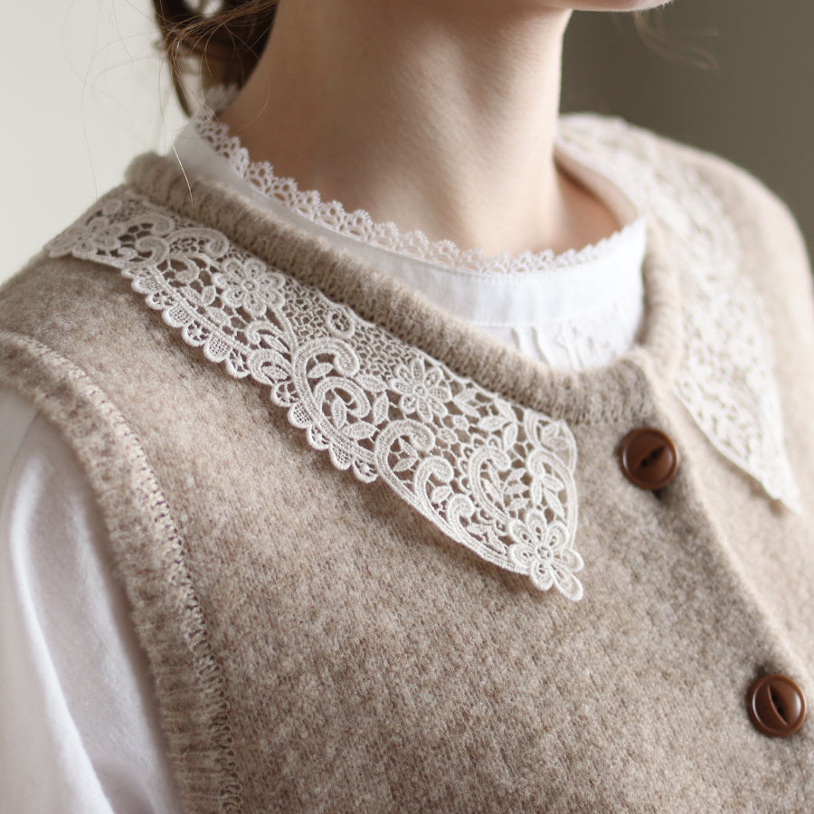 カジュアルライクなデザインに、繊細なレースの襟が目を引きます。