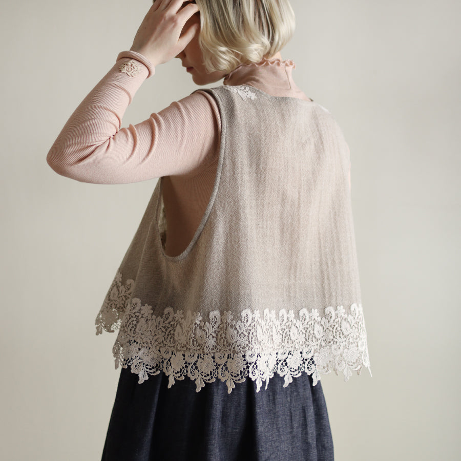 お洋服と合わせ方次第で様々な表情を作れるベストです。