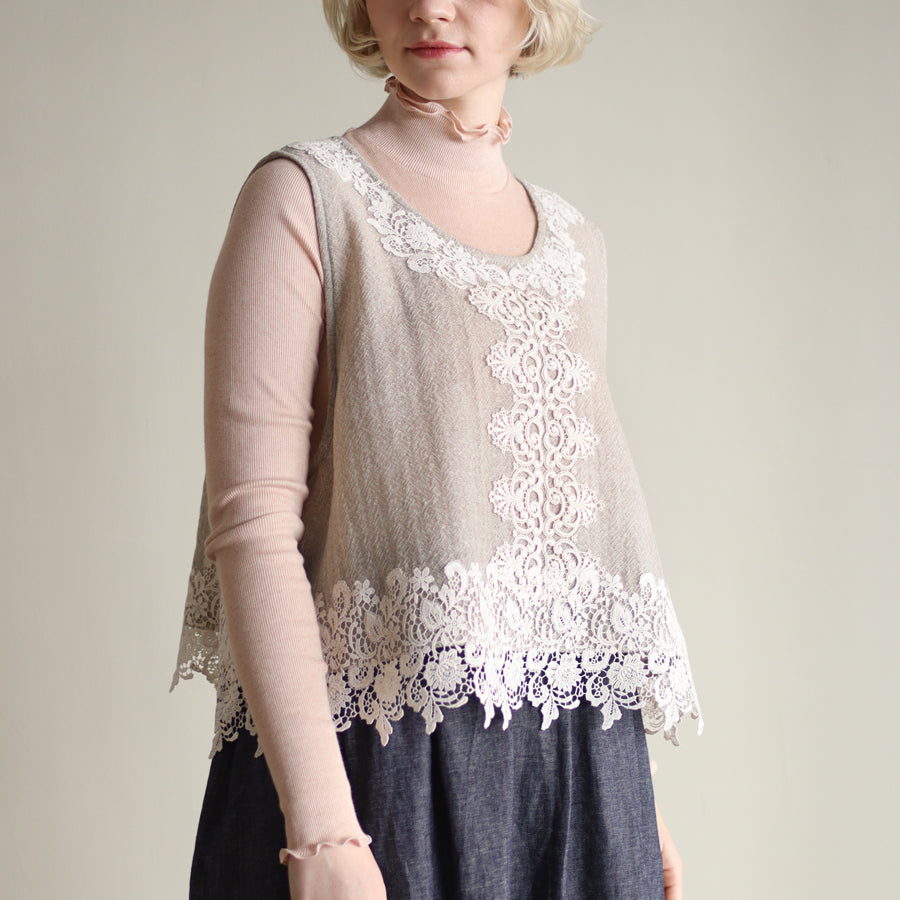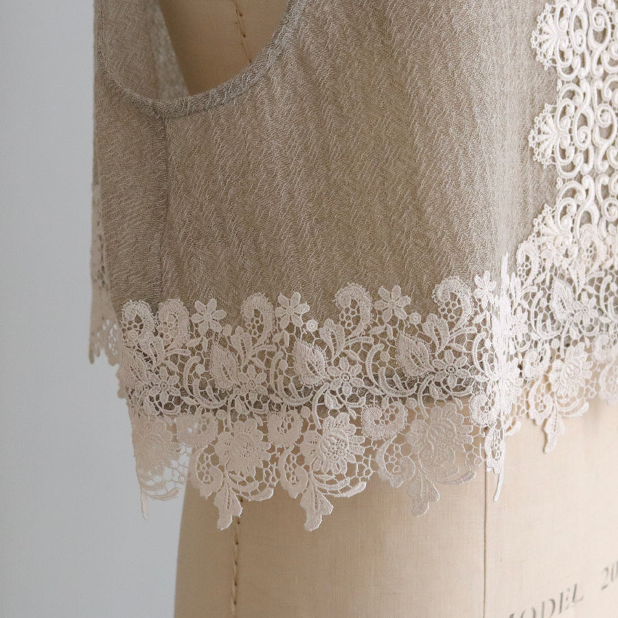 着回ししやすいベーシックなデザインですが、レース使いがとても華やかでコーディネートのプラスワンアイテムにおすすめの一枚。