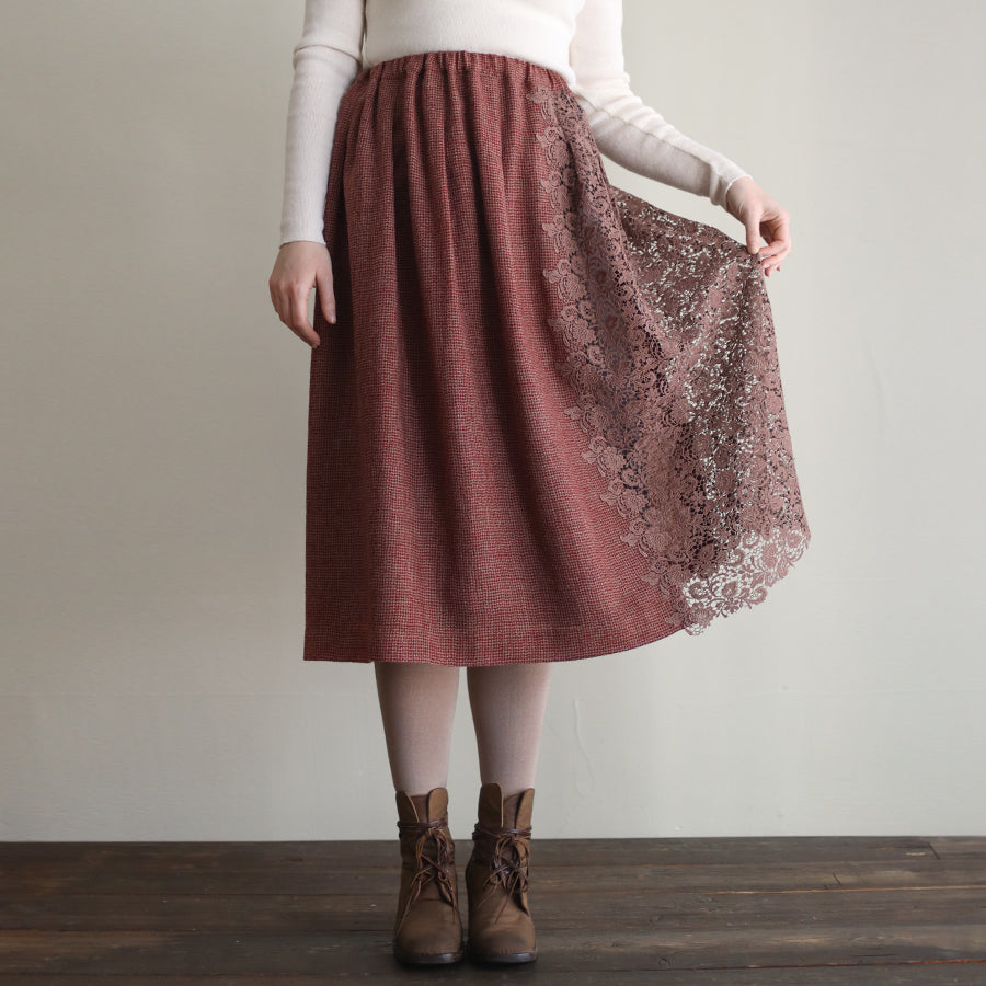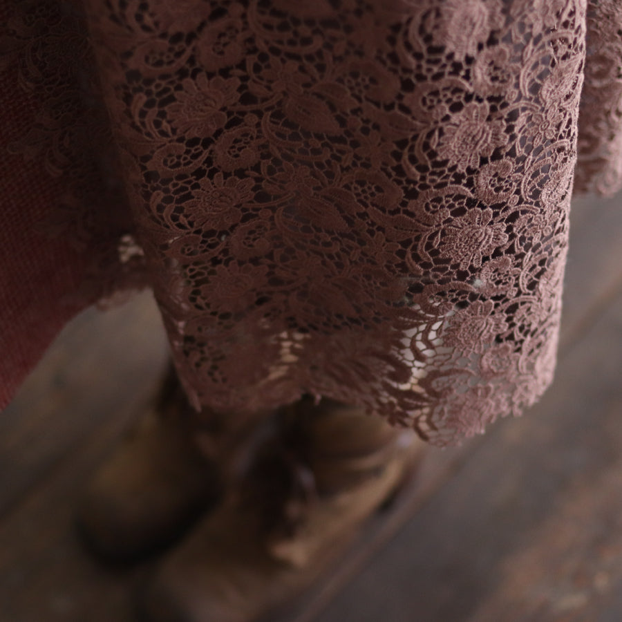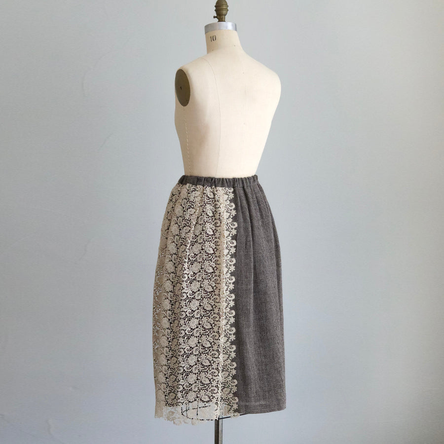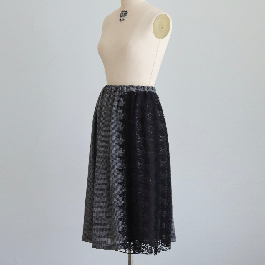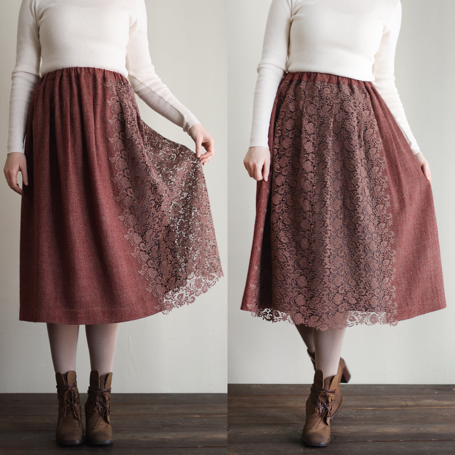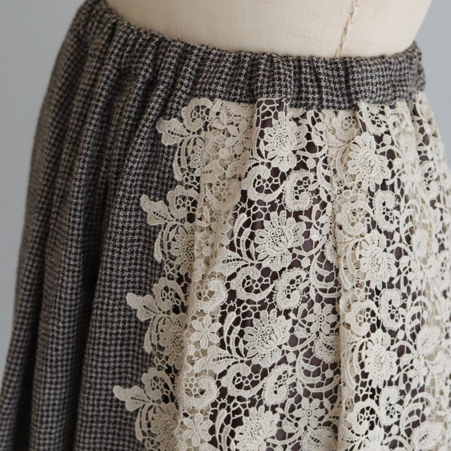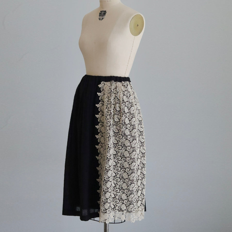 オリジナルレースの「Anticoケミカル」を贅沢に使い、ボリューミーなコンビネーションスカートを作りました。