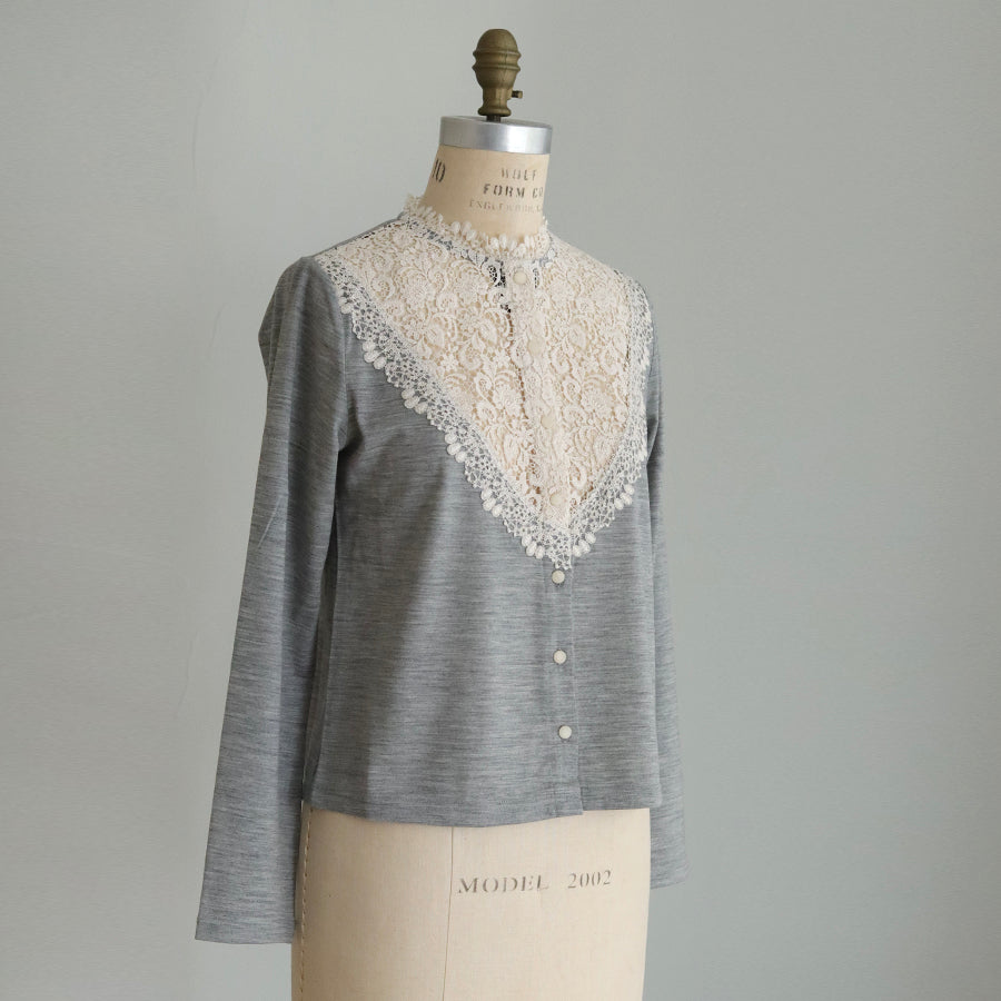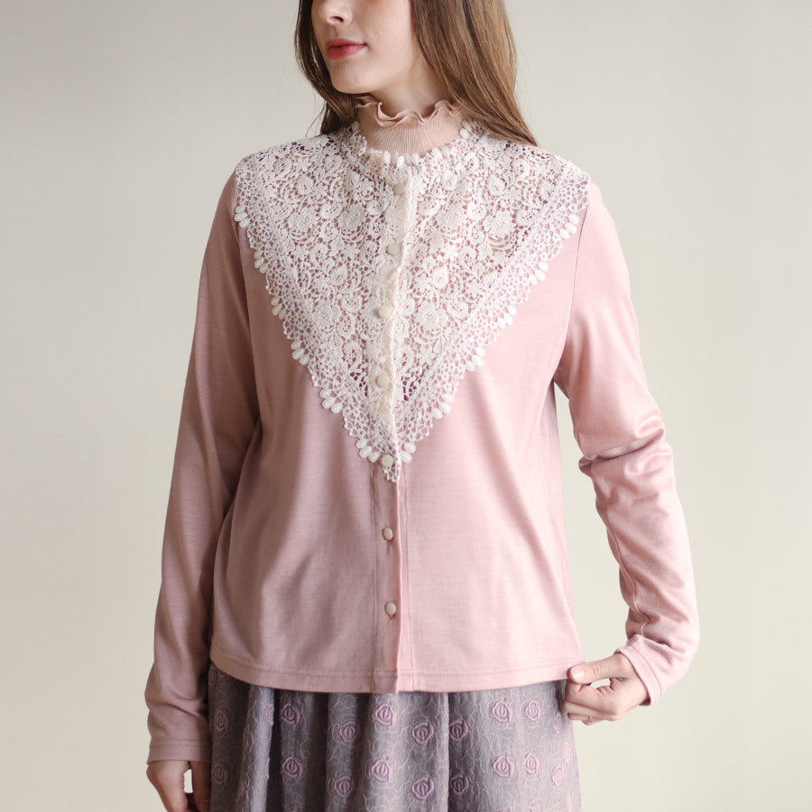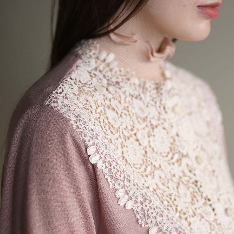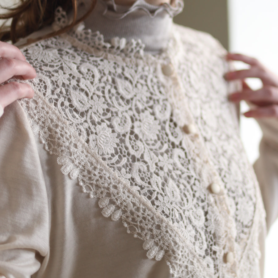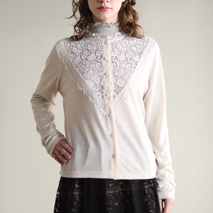 レース部分は透け感があるので、インナーの色によって表情が変わり、様々な着こなしが楽しめて飽きの来ない一着です。