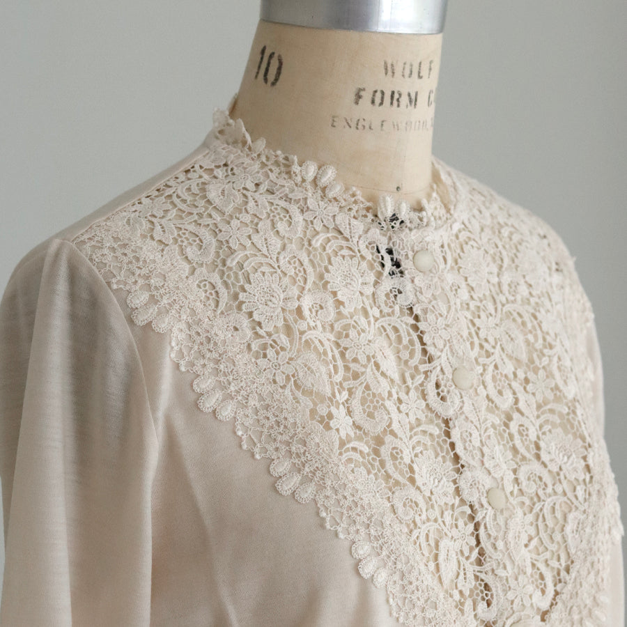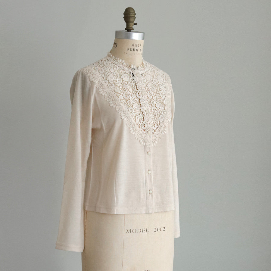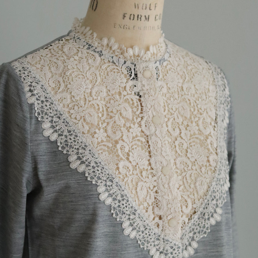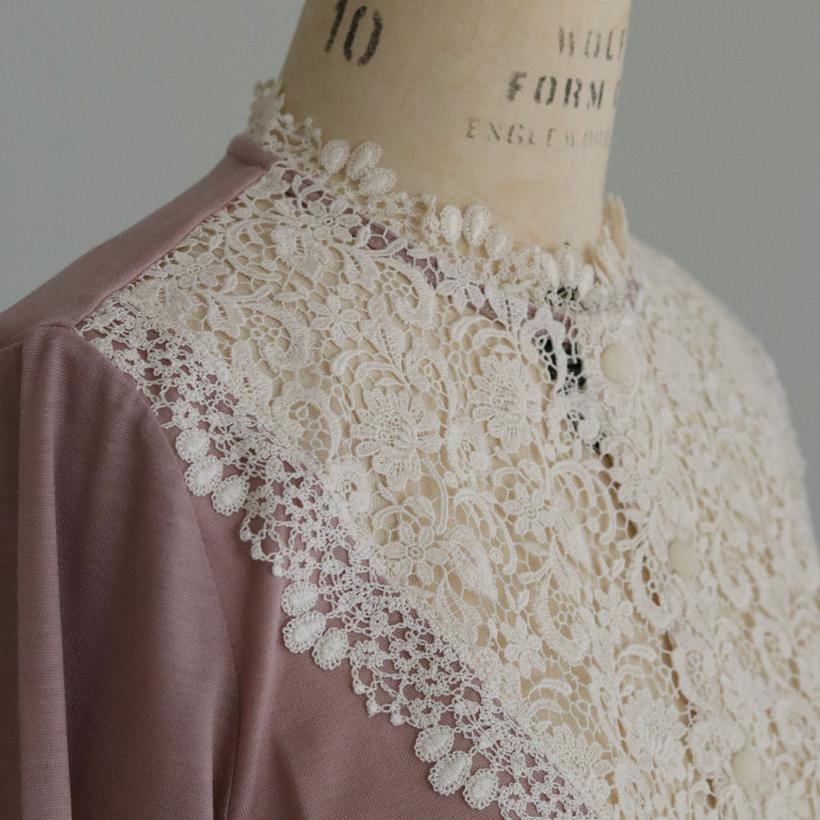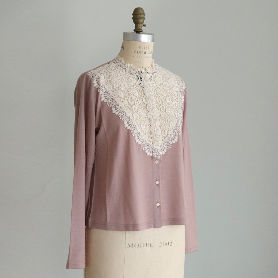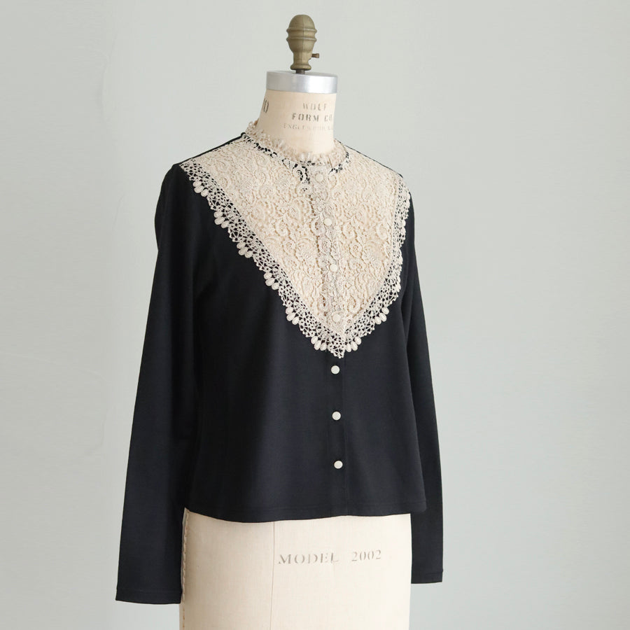 レース部分は透け感があるので、インナーの色によって表情が変わり、様々な着こなしが楽しめて飽きの来ない一着です。