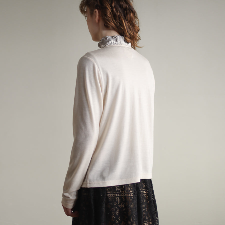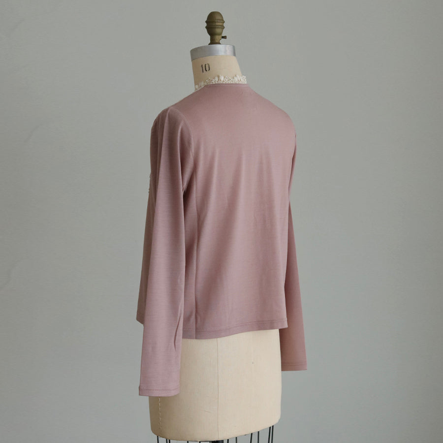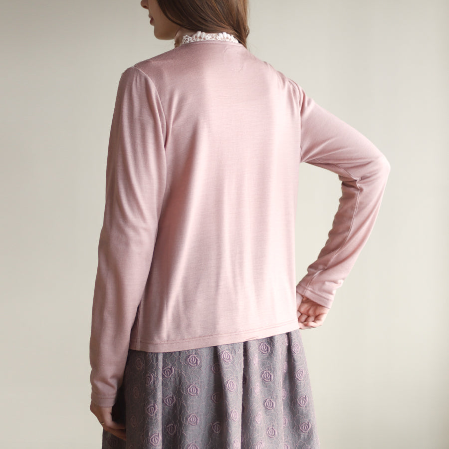 しっとりなめらかな肌触りのウール天竺素材で作ったカーディガン。