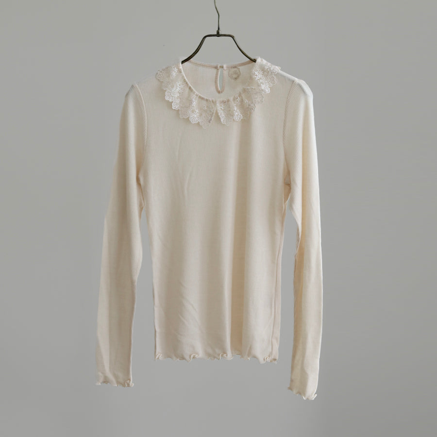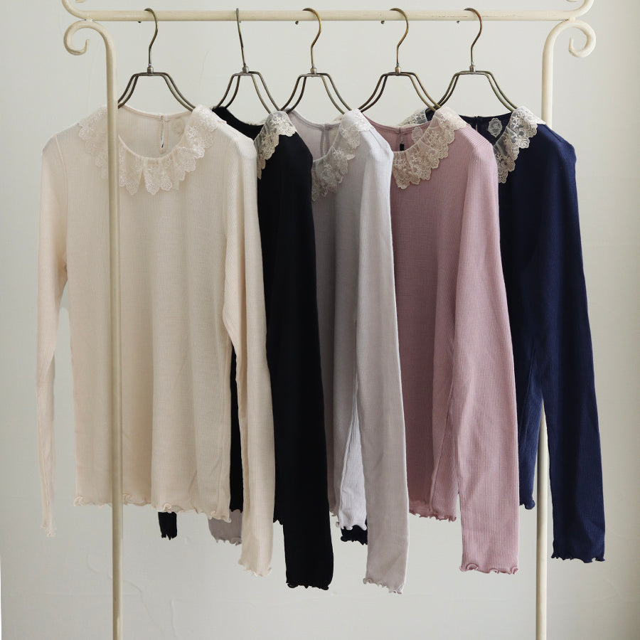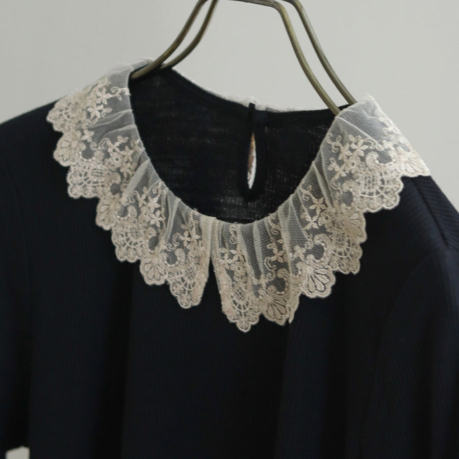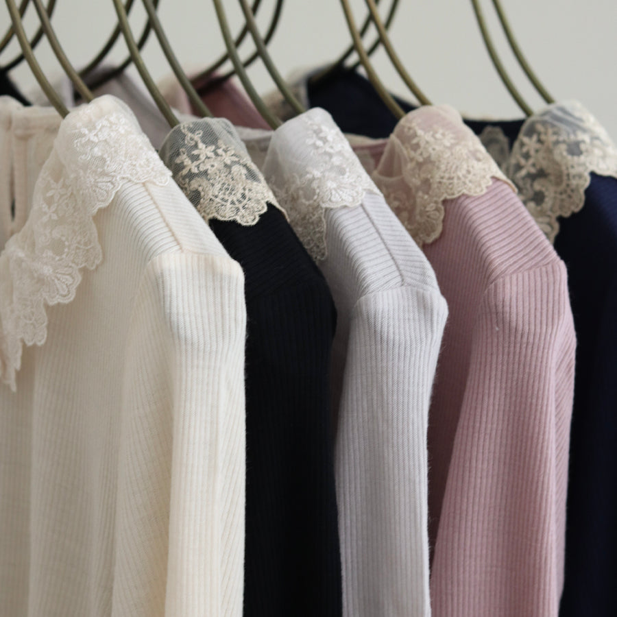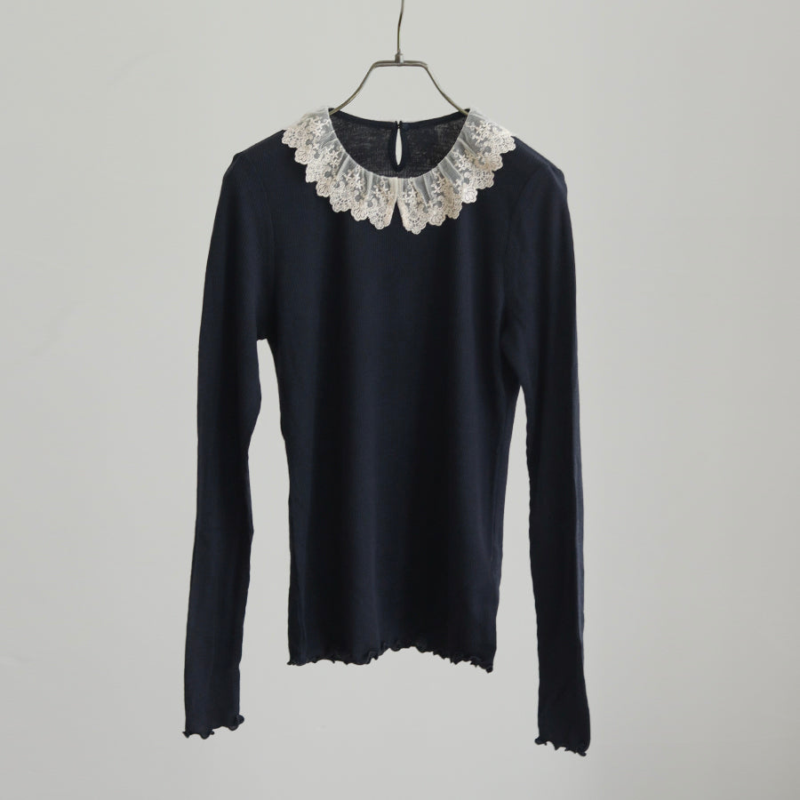 クルーネックをチュールレースであしらった、華やかなインナーです。