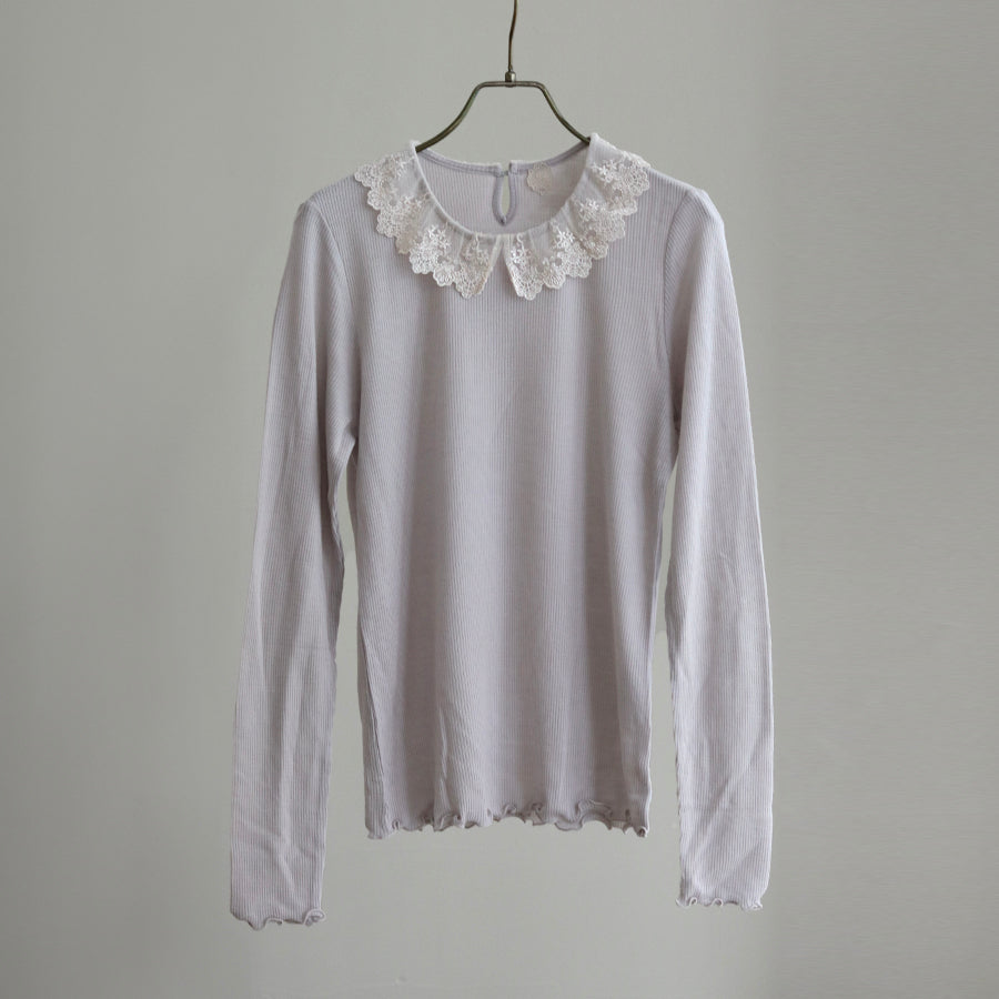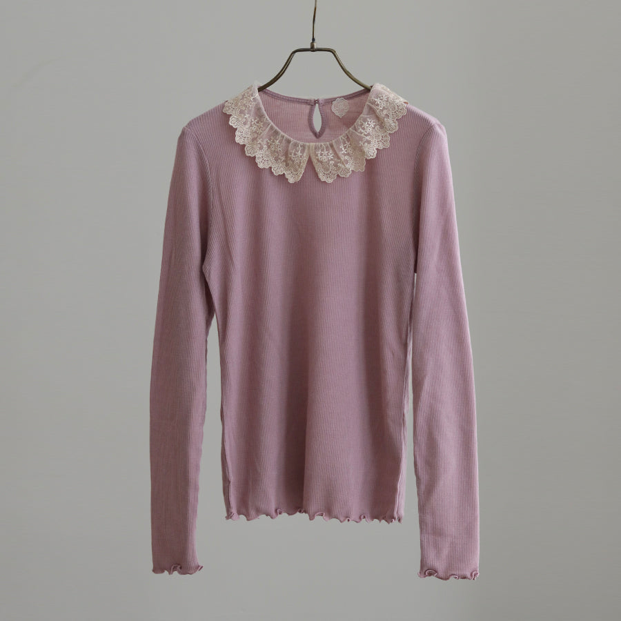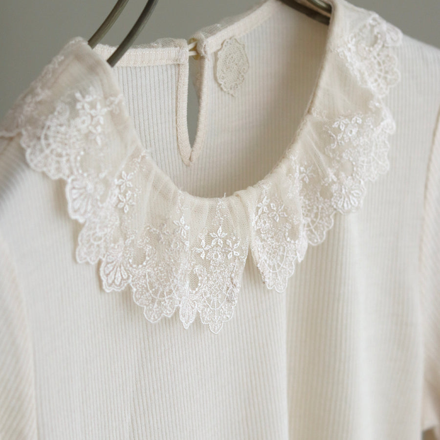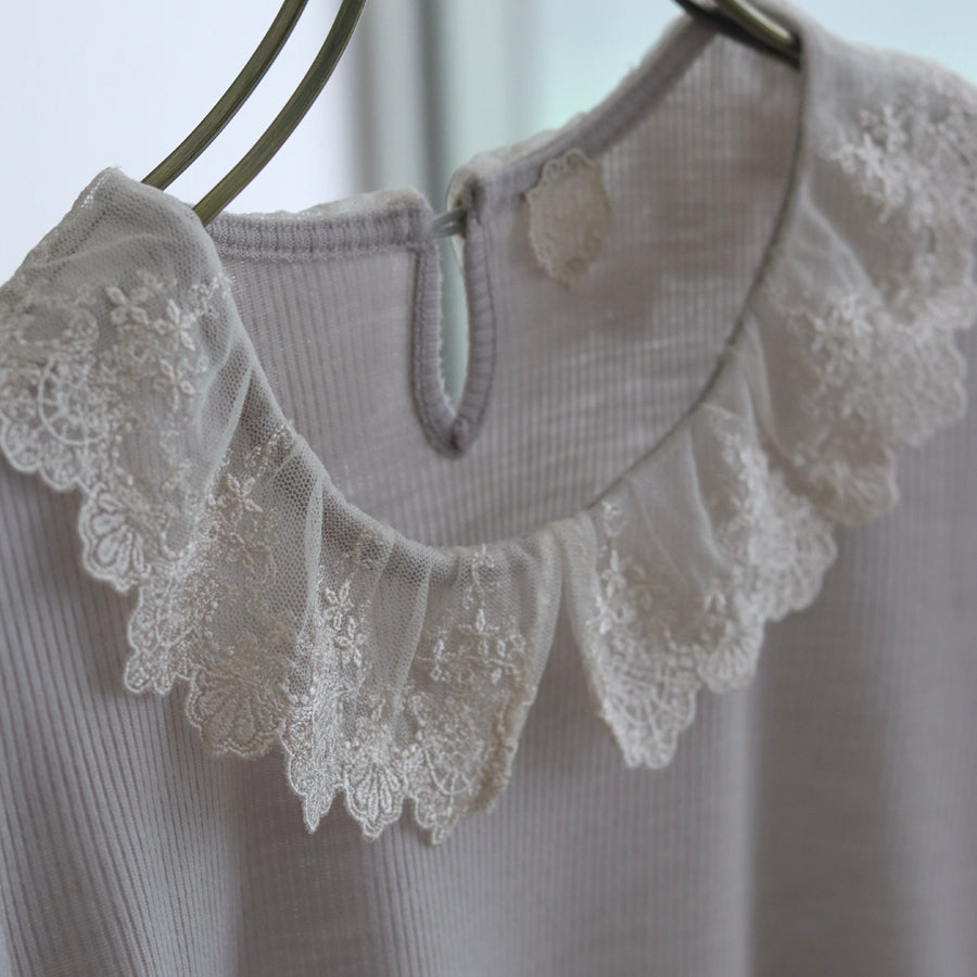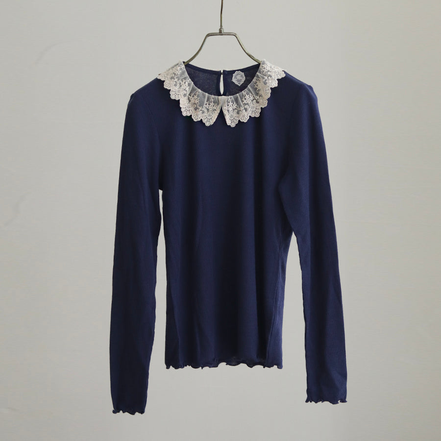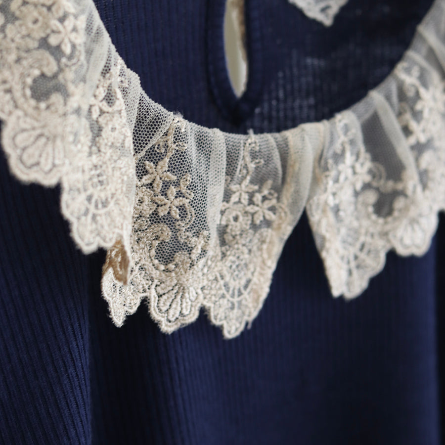 クルーネックをチュールレースであしらった、華やかなインナーです。
