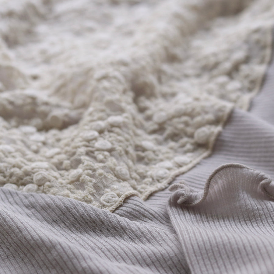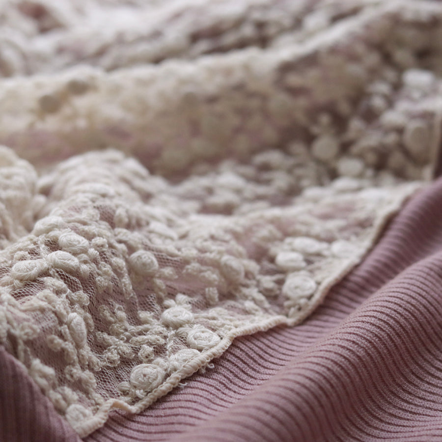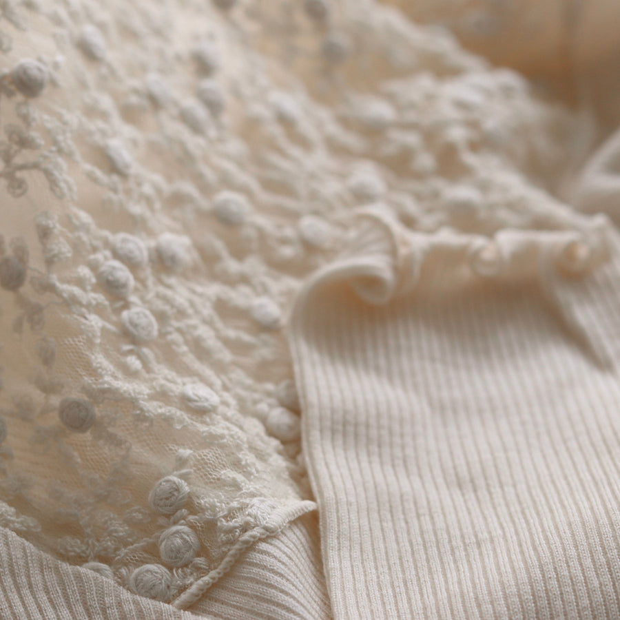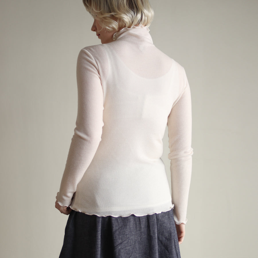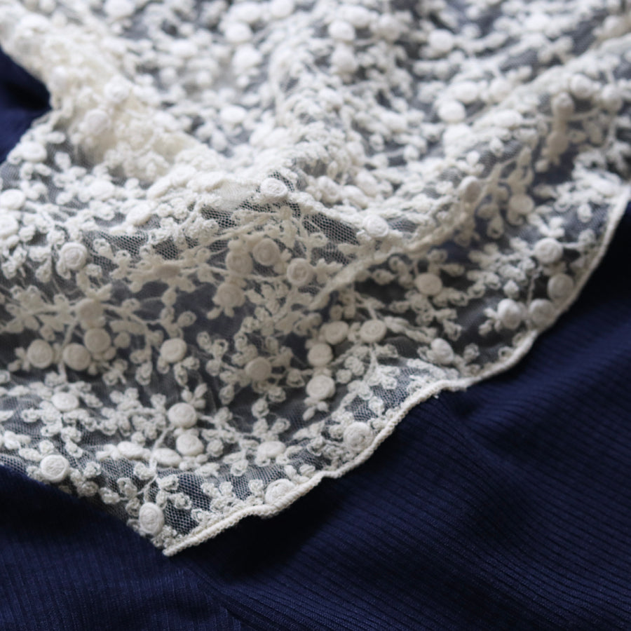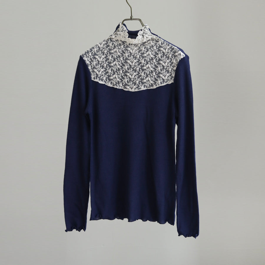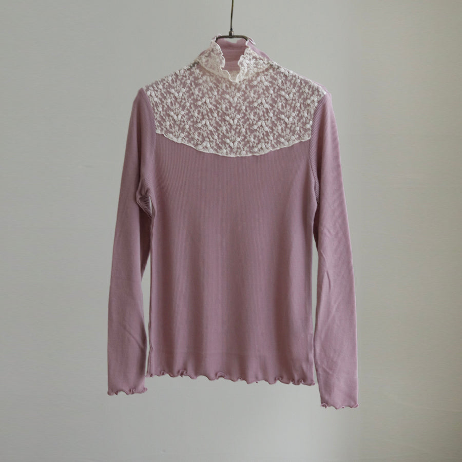 首元はチュールレースになっているため、締め付けがなくハイネックが苦手な方にもおすすめ。