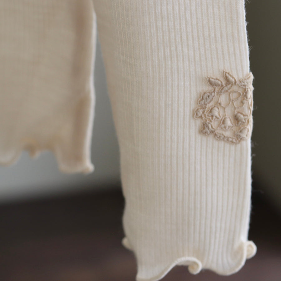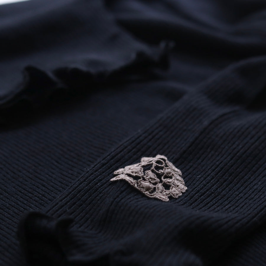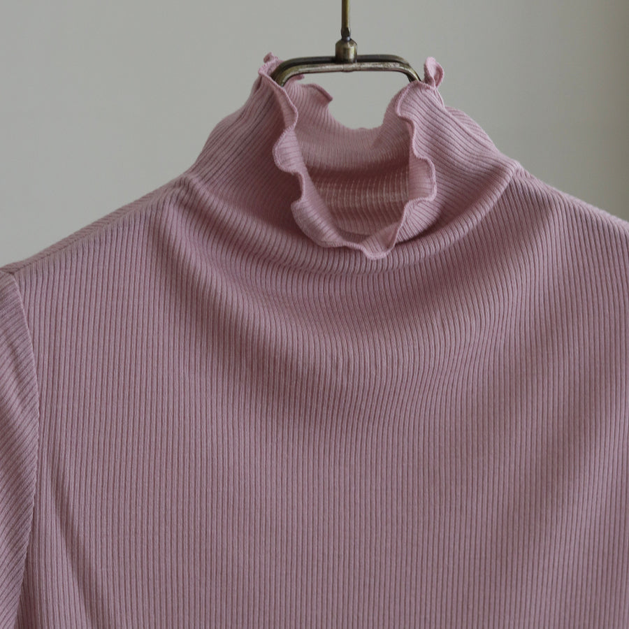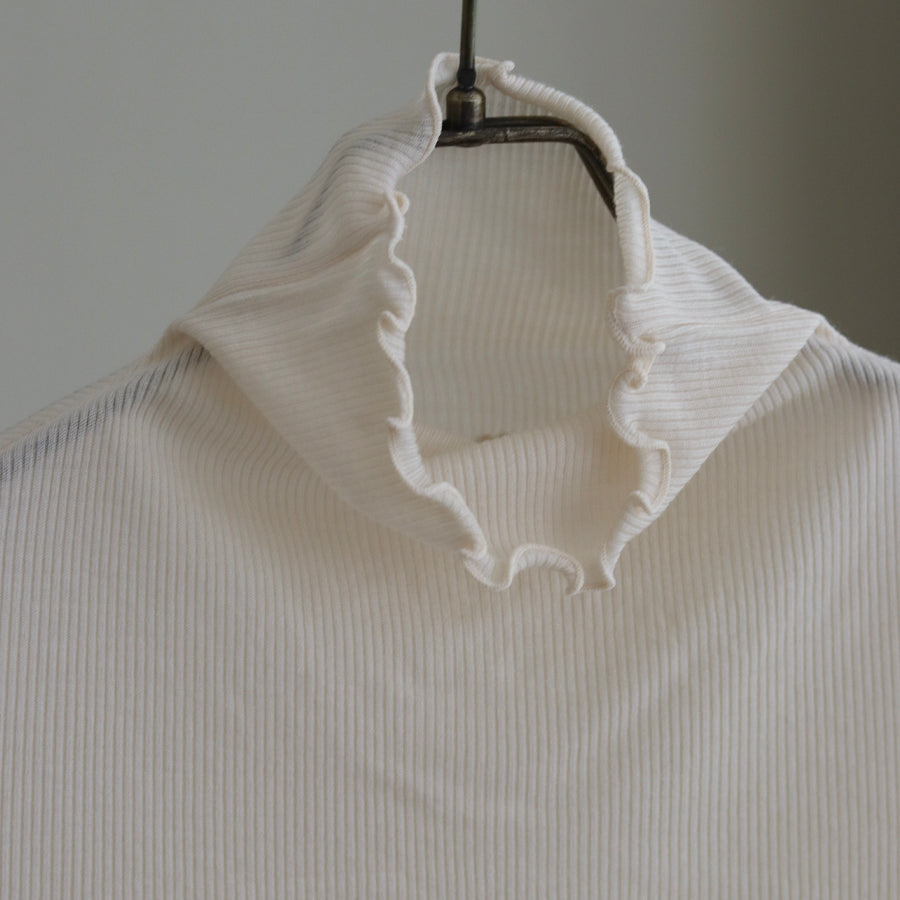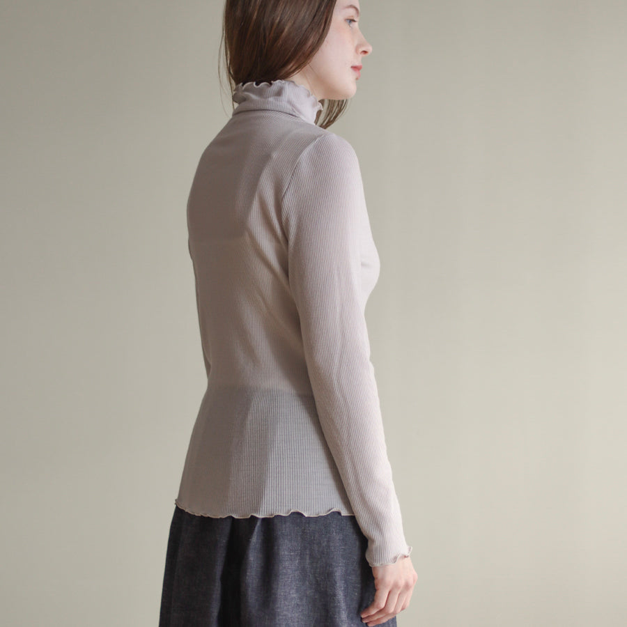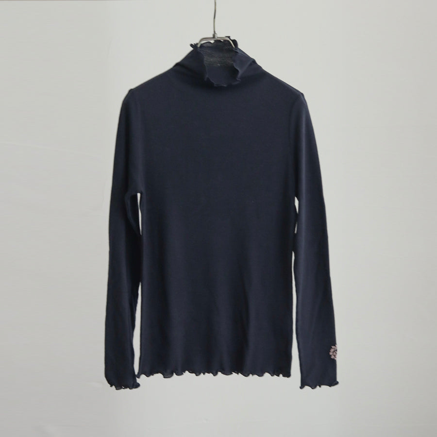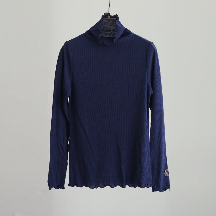 お袖にREIのロゴエンブレムレースを縫い付けアクセントにしたシンプルなハイネックインナーです。