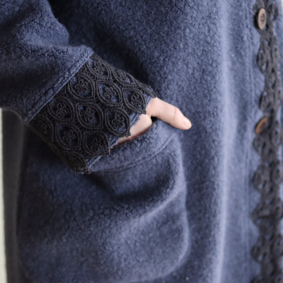 前立てとお袖にはオリジナルレース「patricoケミカル」を縫い合わせて上品な印象に。