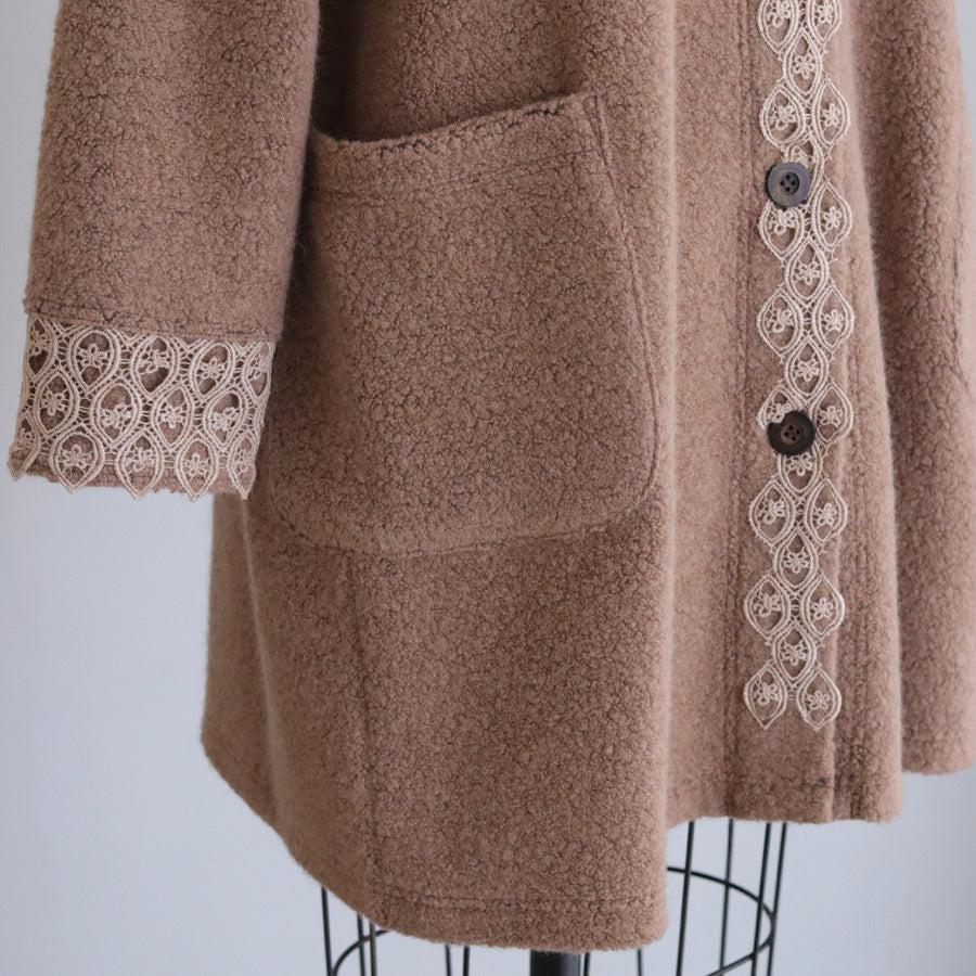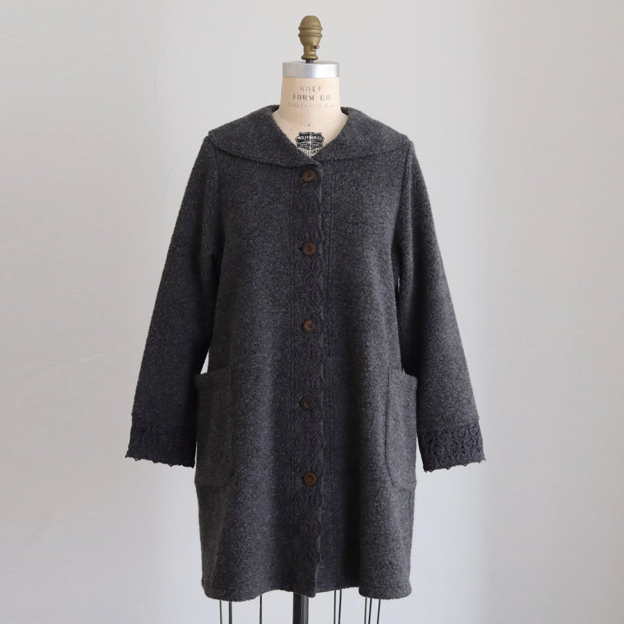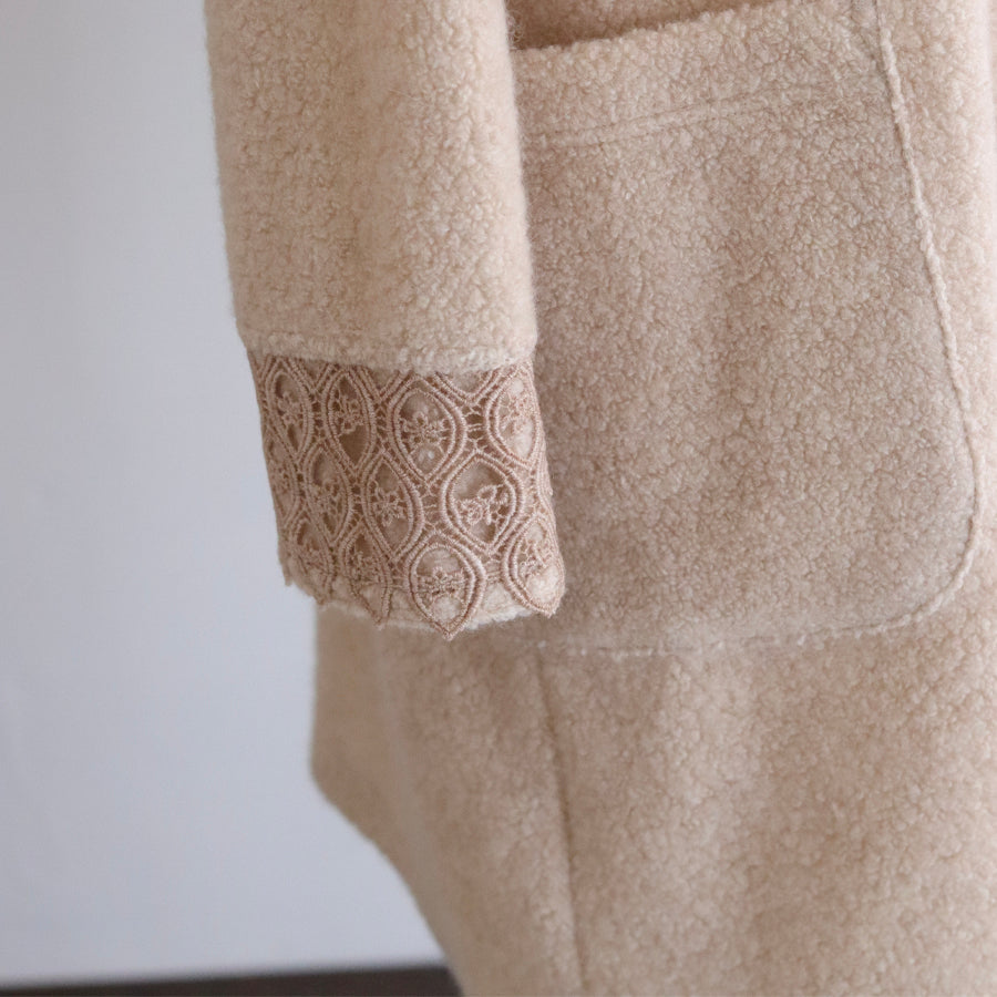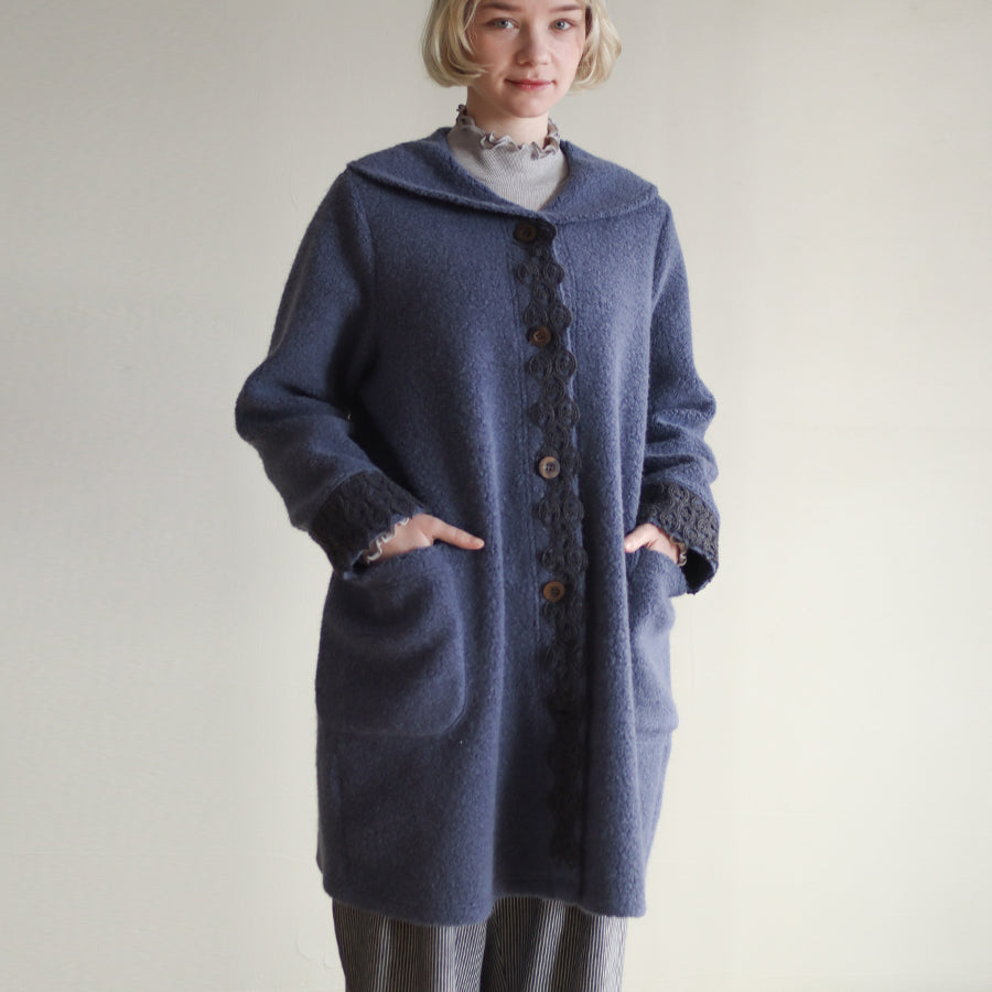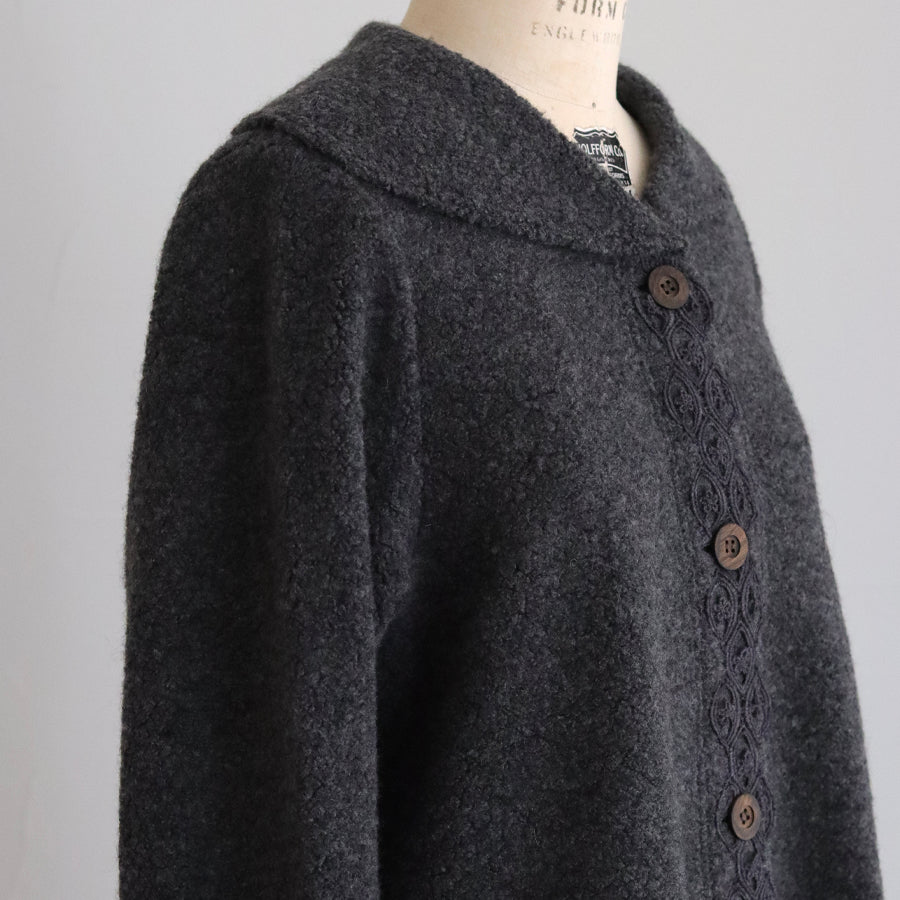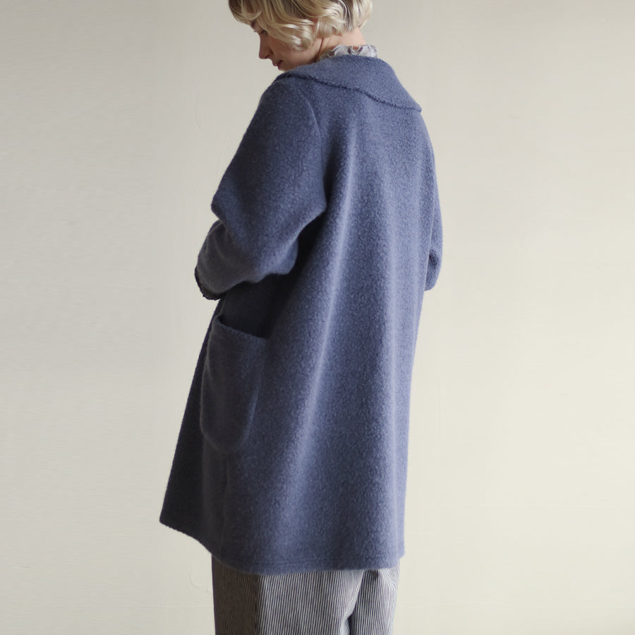 希少な丸編み機で制作した「ウールブークレ」シリーズの丸襟ミドル丈コート。