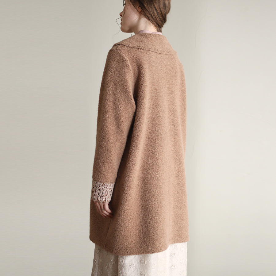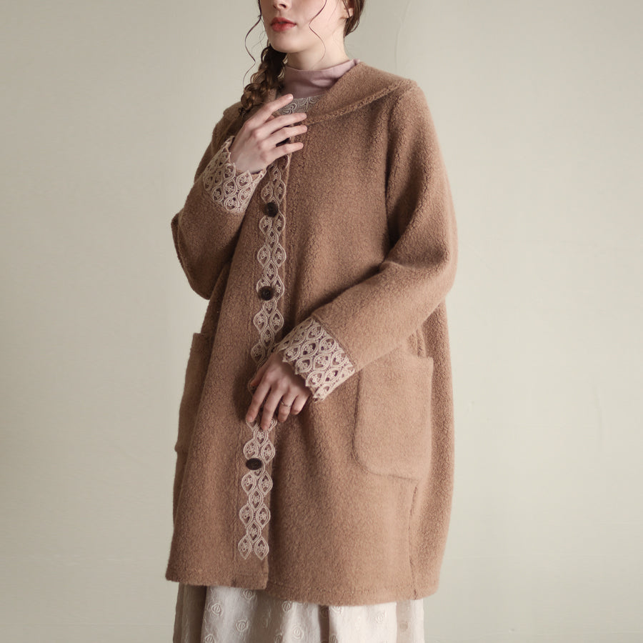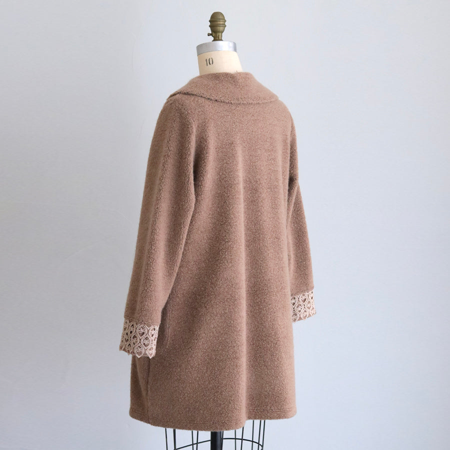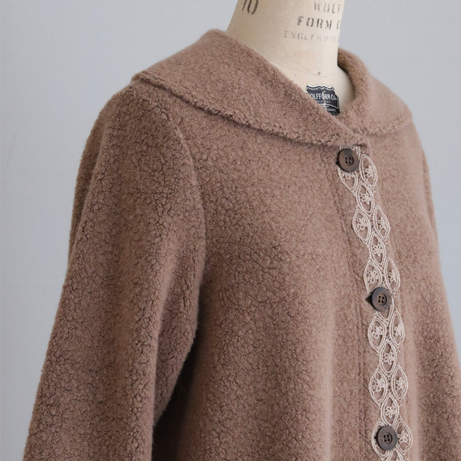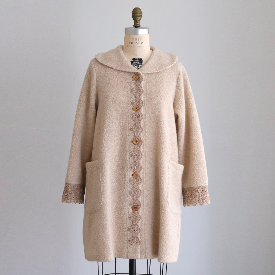 希少な丸編み機で制作した「ウールブークレ」シリーズの丸襟ミドル丈コート。