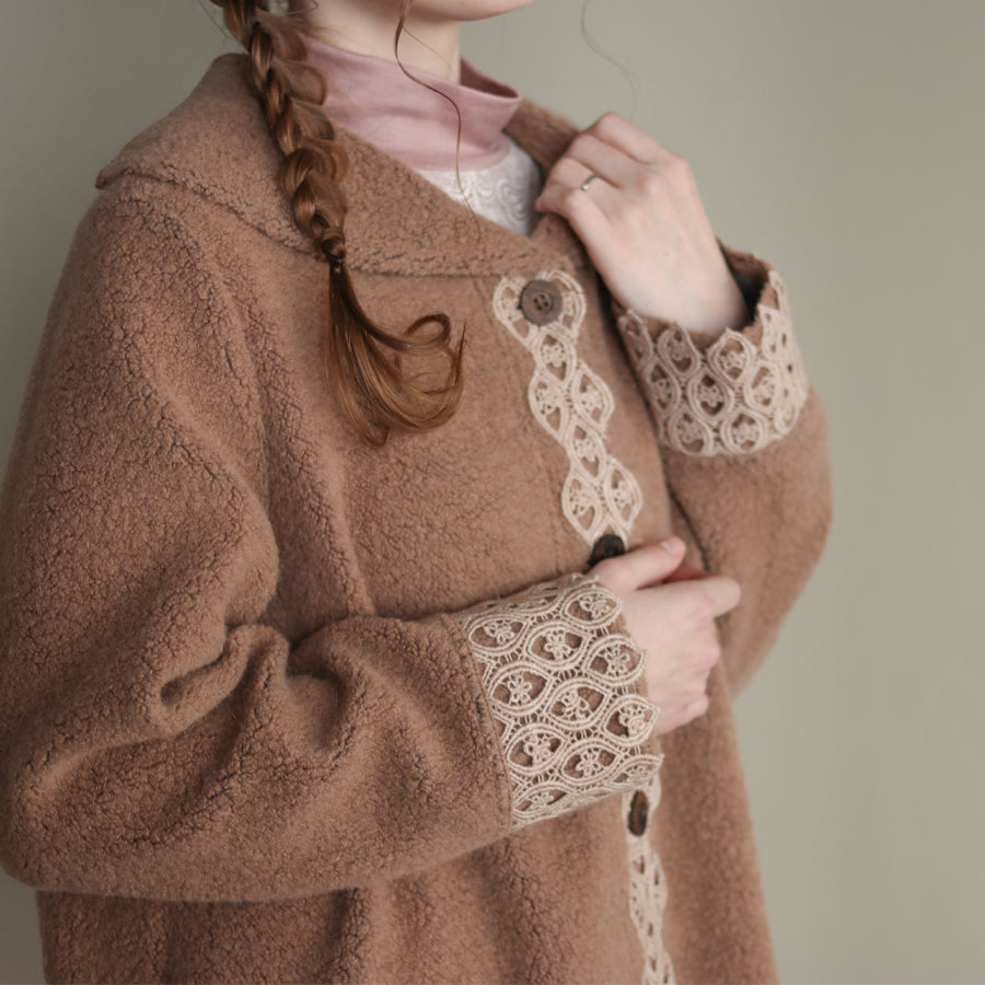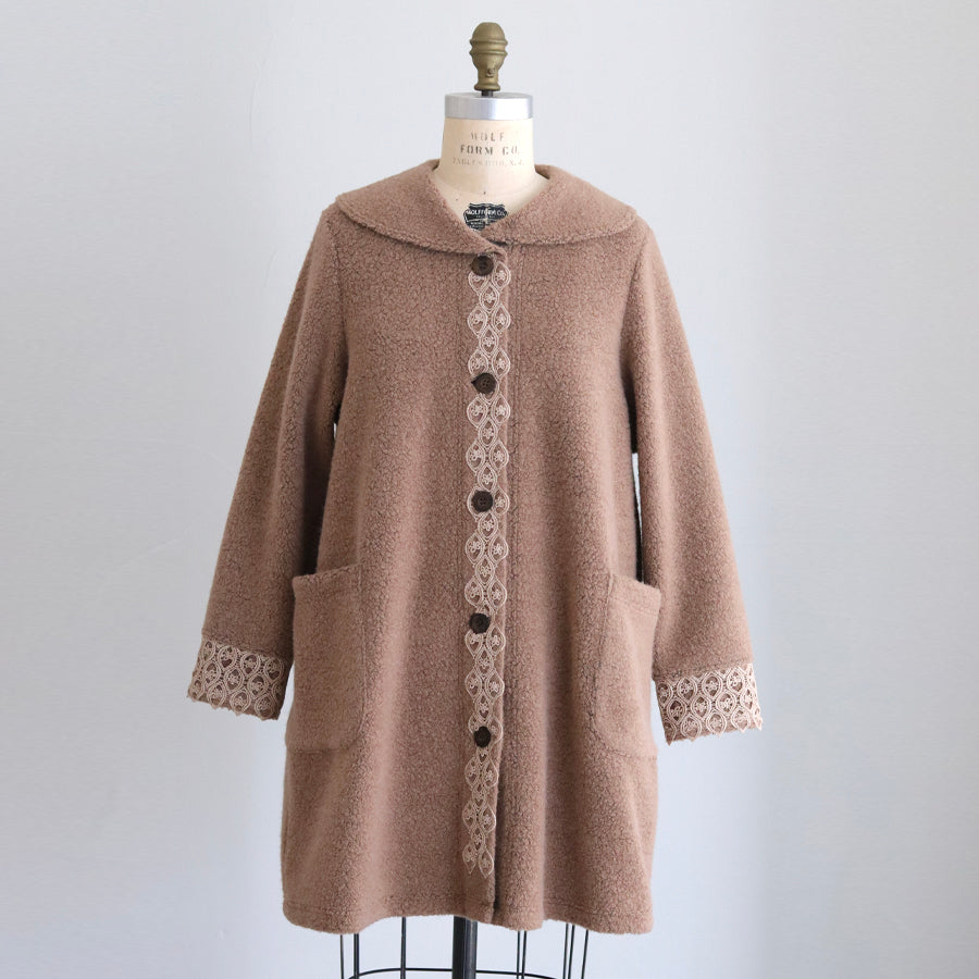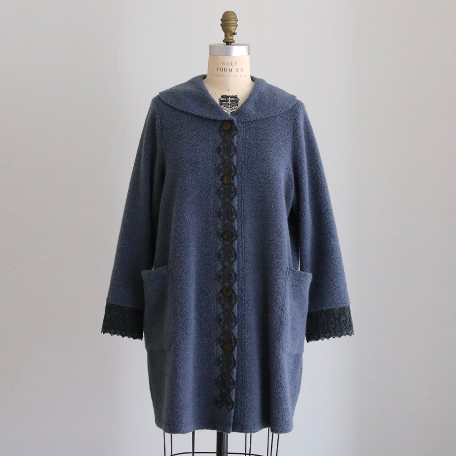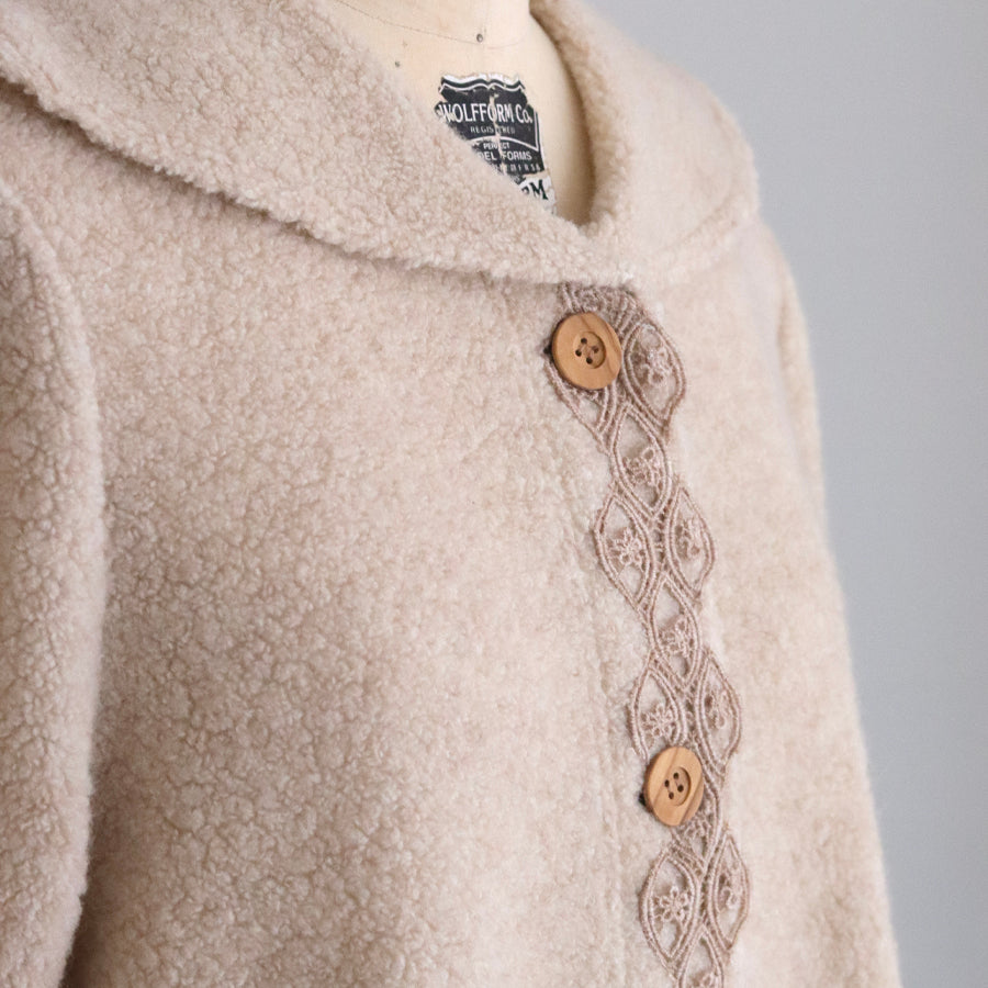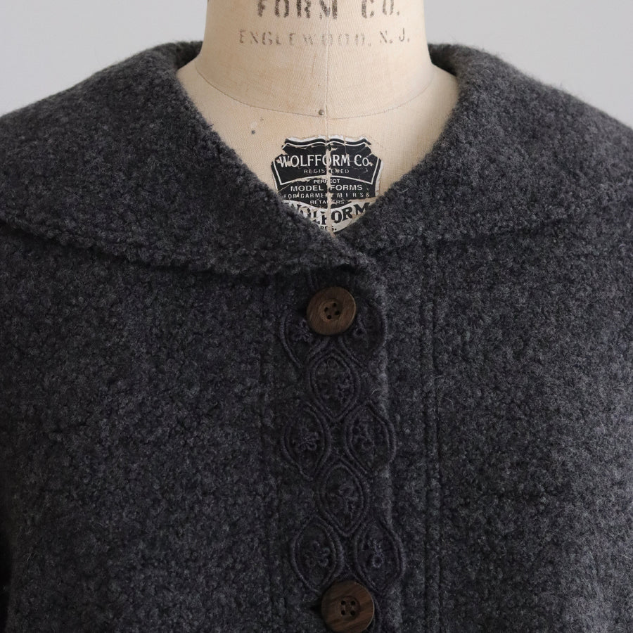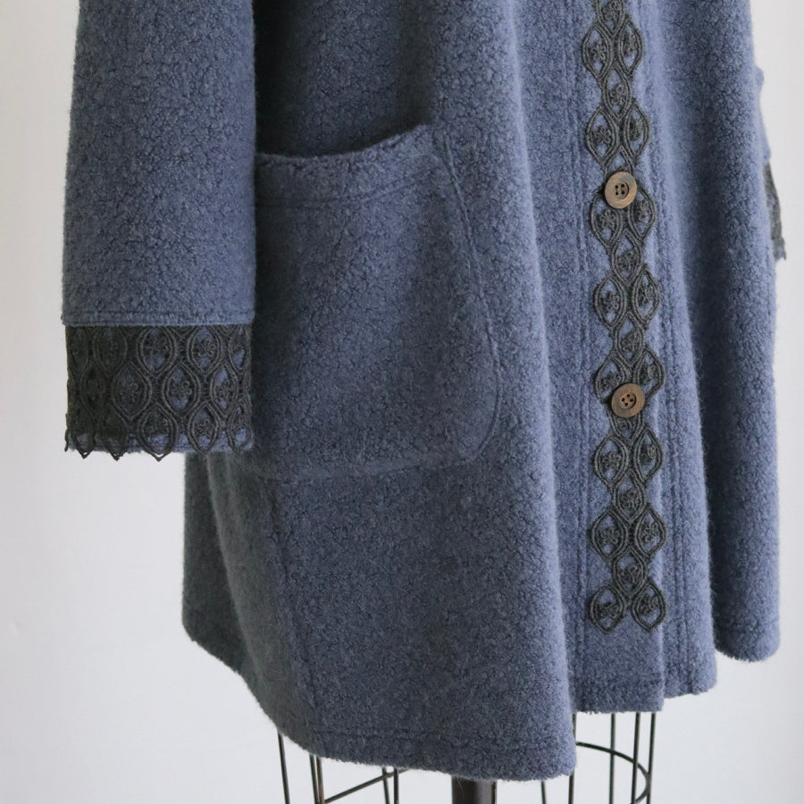 希少な丸編み機で制作した「ウールブークレ」シリーズの丸襟ミドル丈コート。