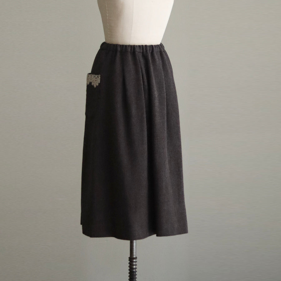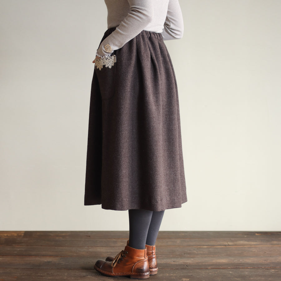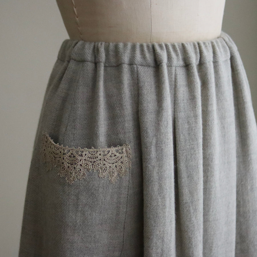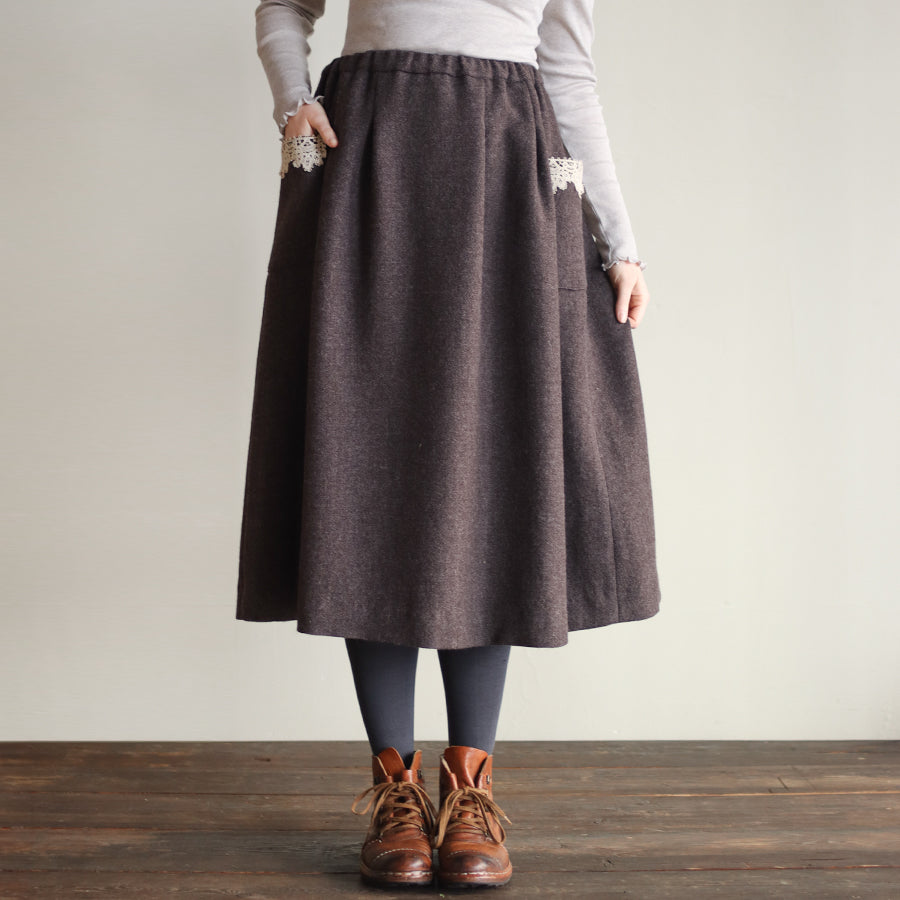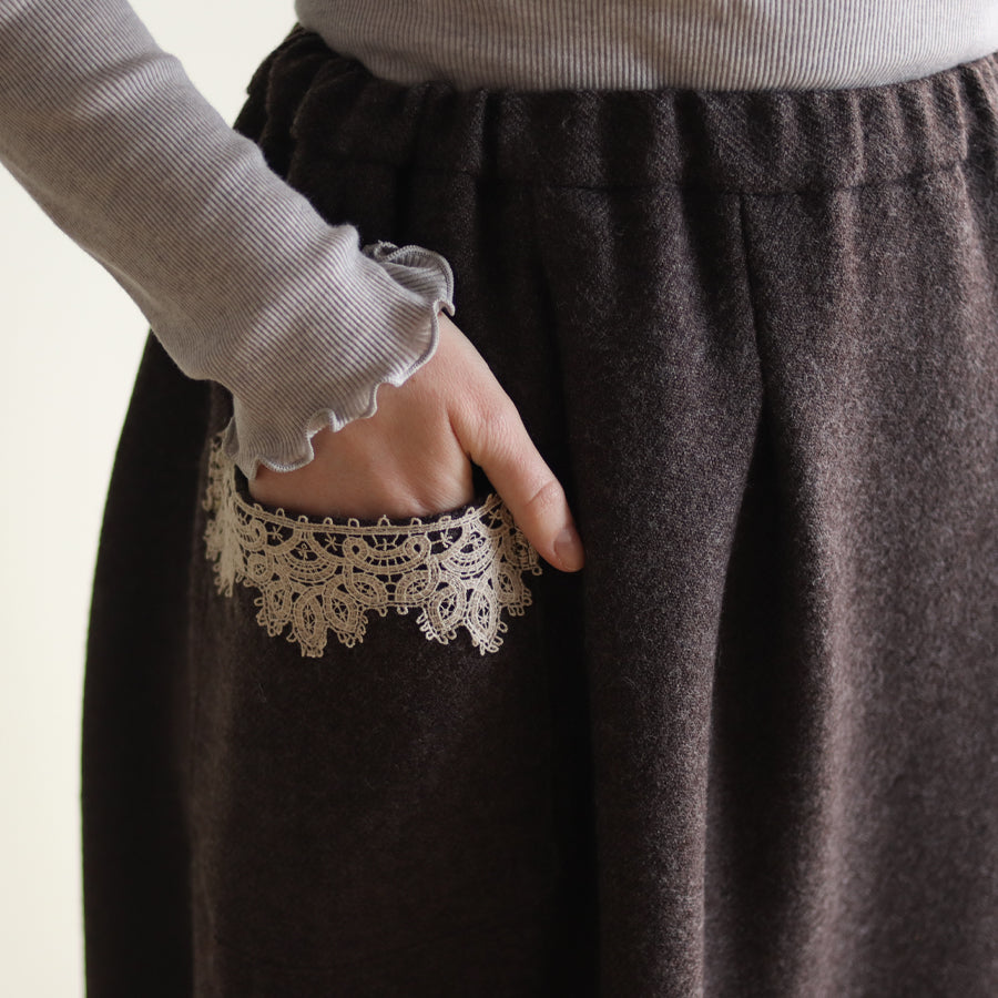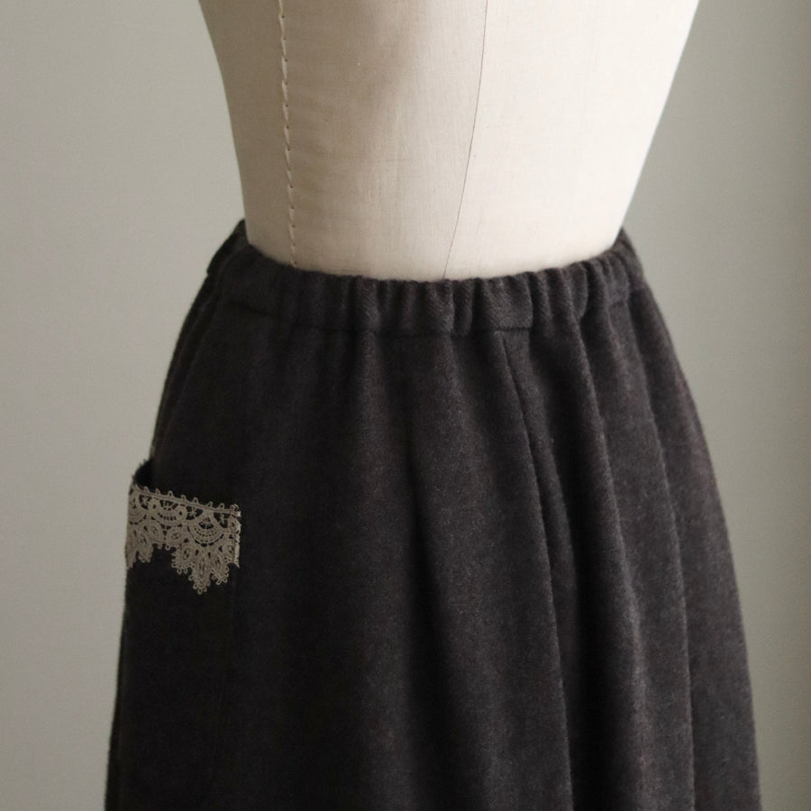 なめらかで落ち感の良い「ウールソフトサージ」素材のスカート。適度な肉厚感があり、とてもあたたかく上品な風合いです。