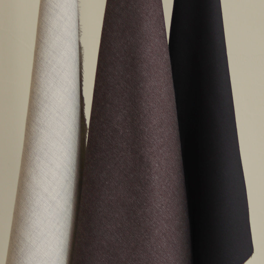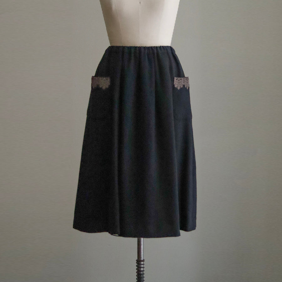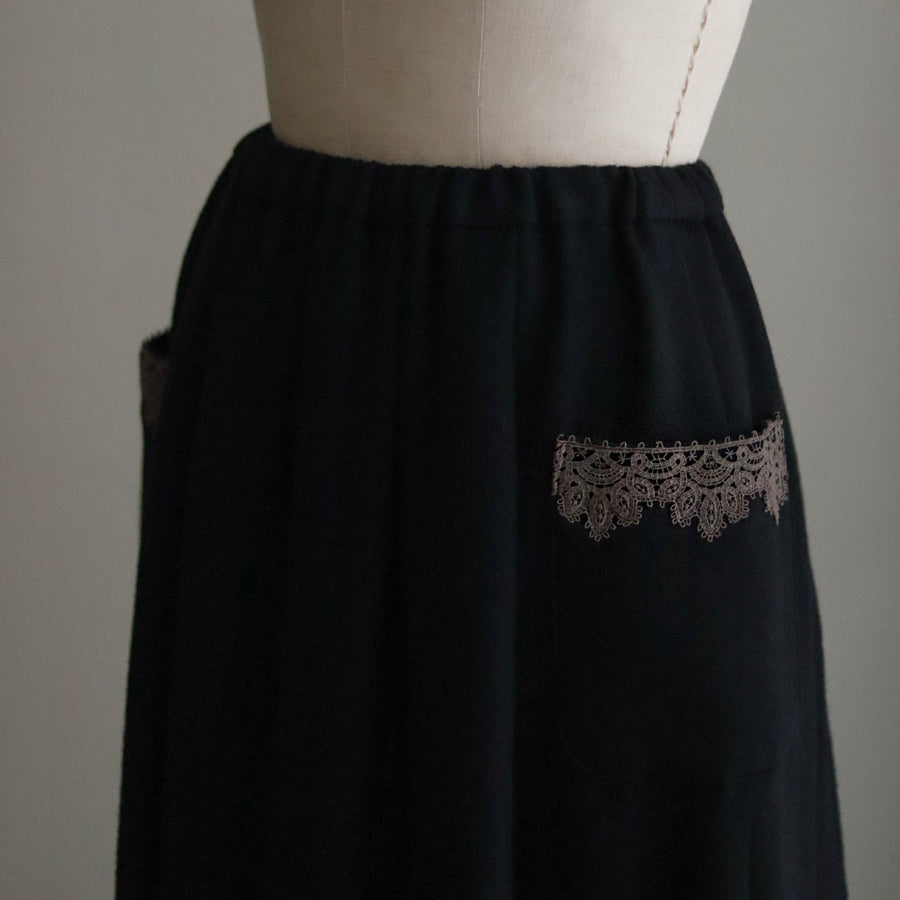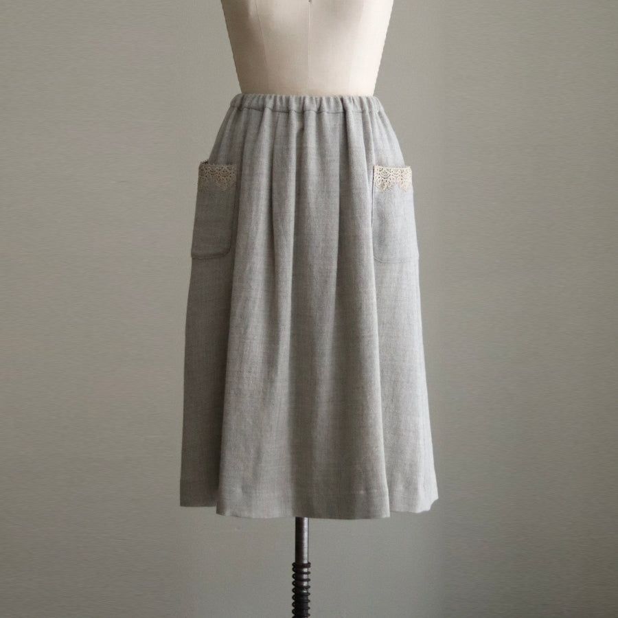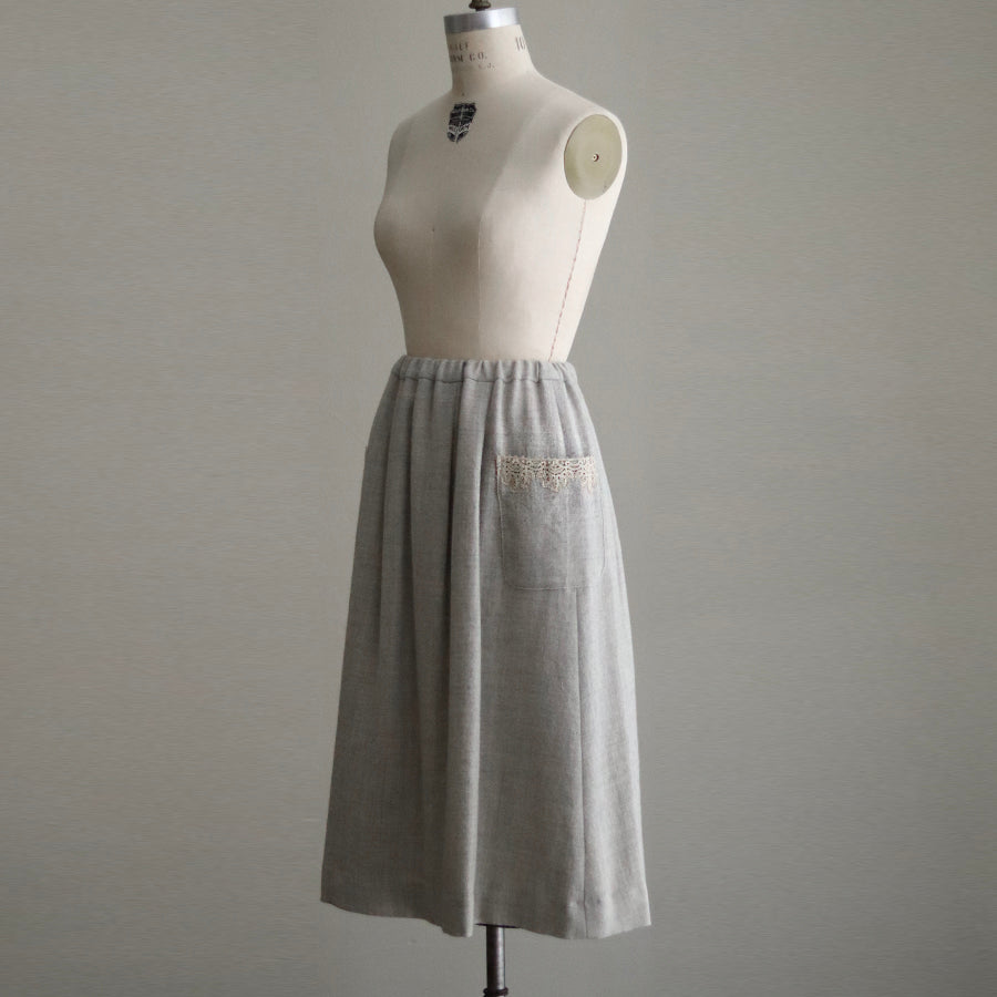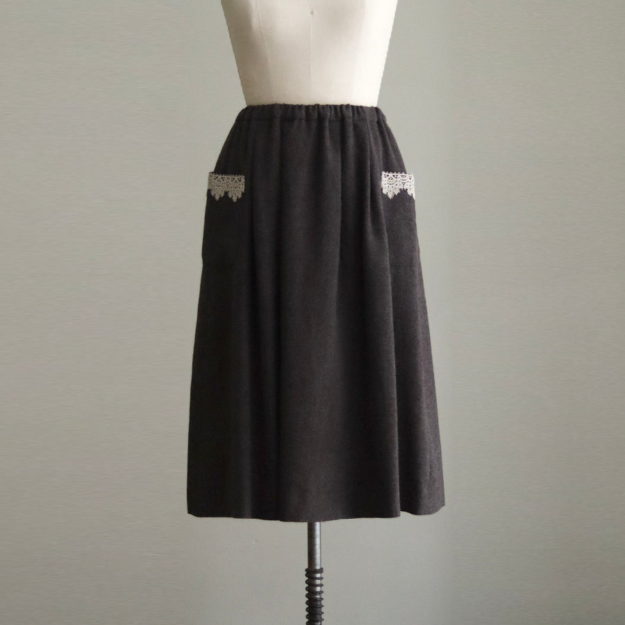 なめらかで落ち感の良い「ウールソフトサージ」素材のスカート。適度な肉厚感があり、とてもあたたかく上品な風合いです。