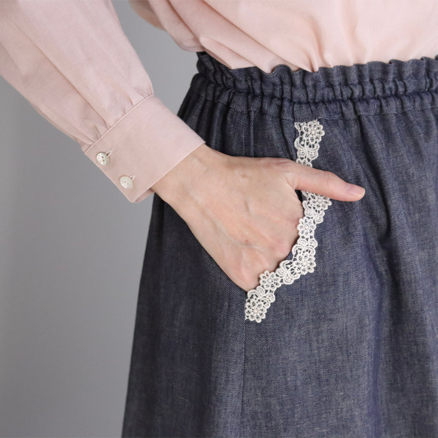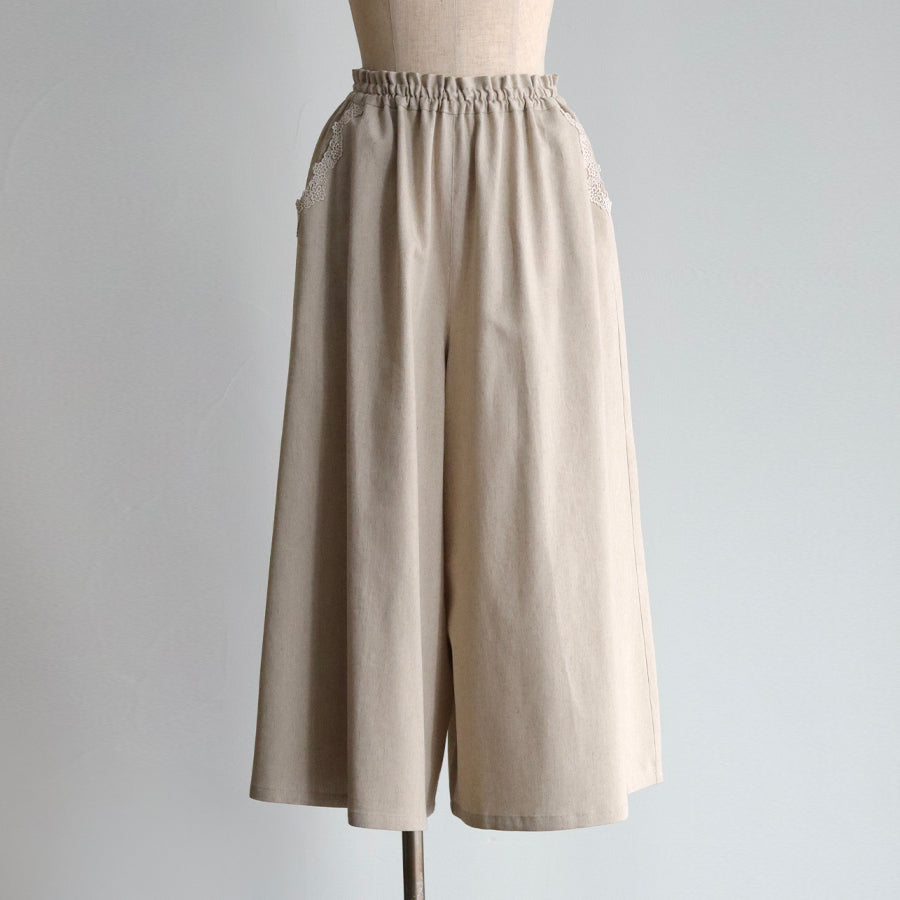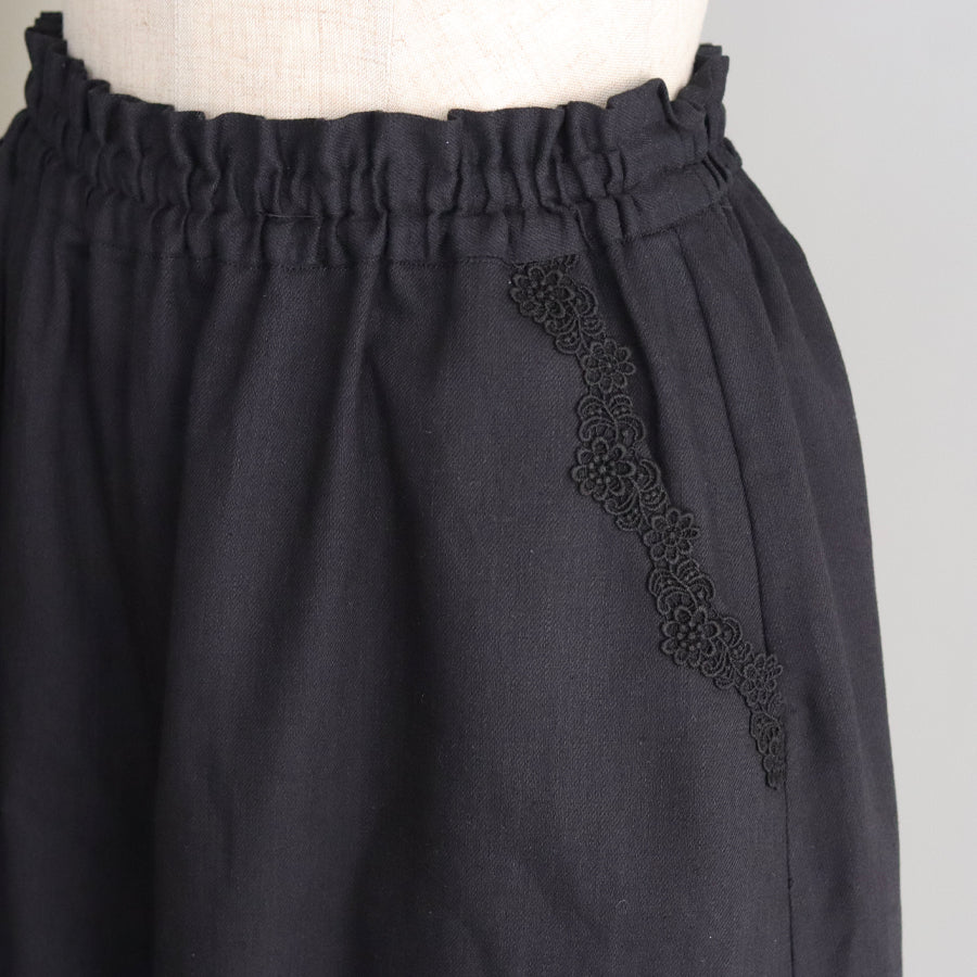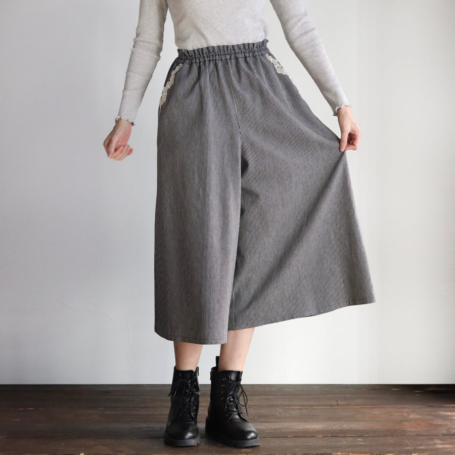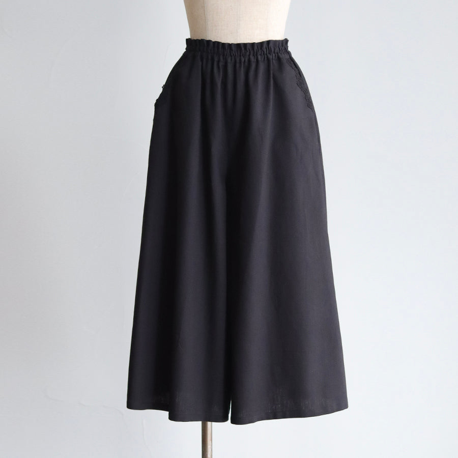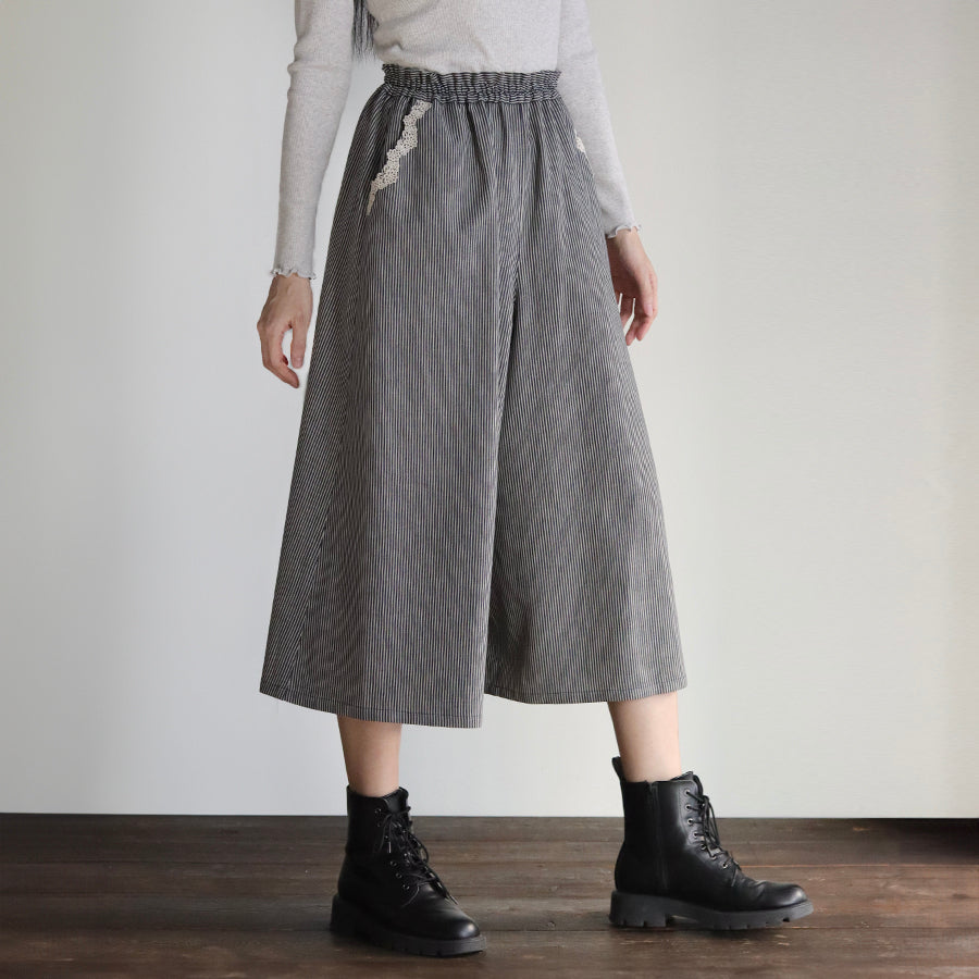ウエストゴムでストレスなく履ける軽やかな仕上がり。