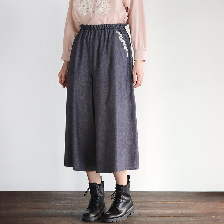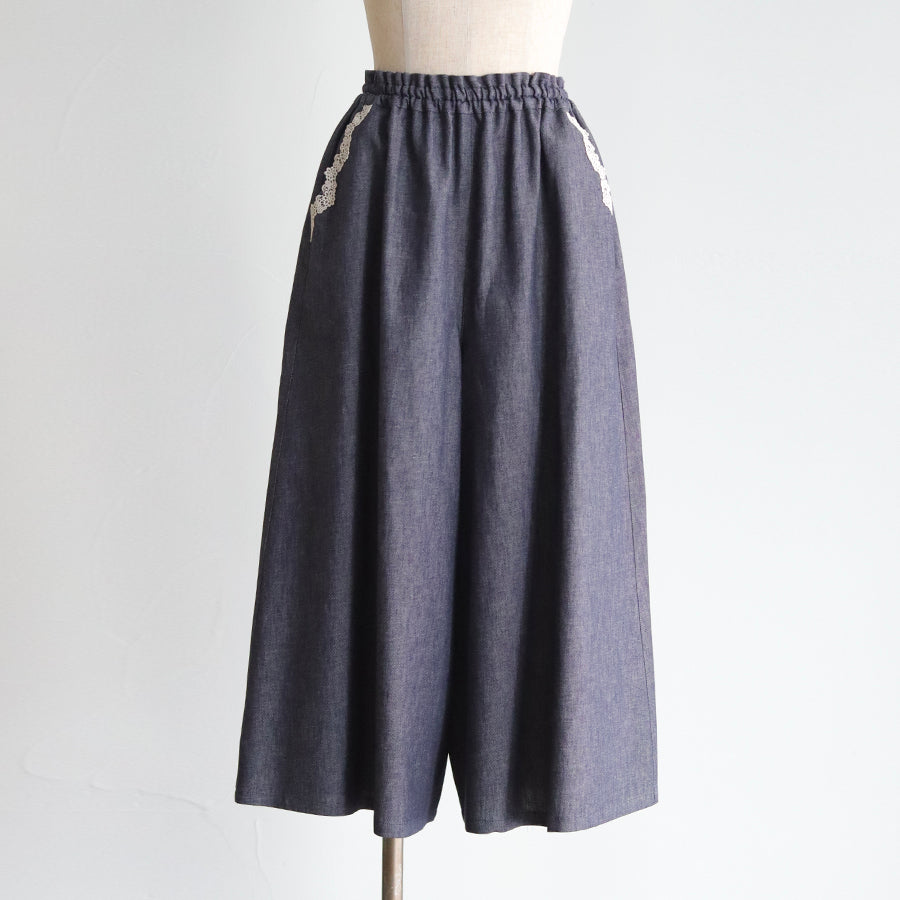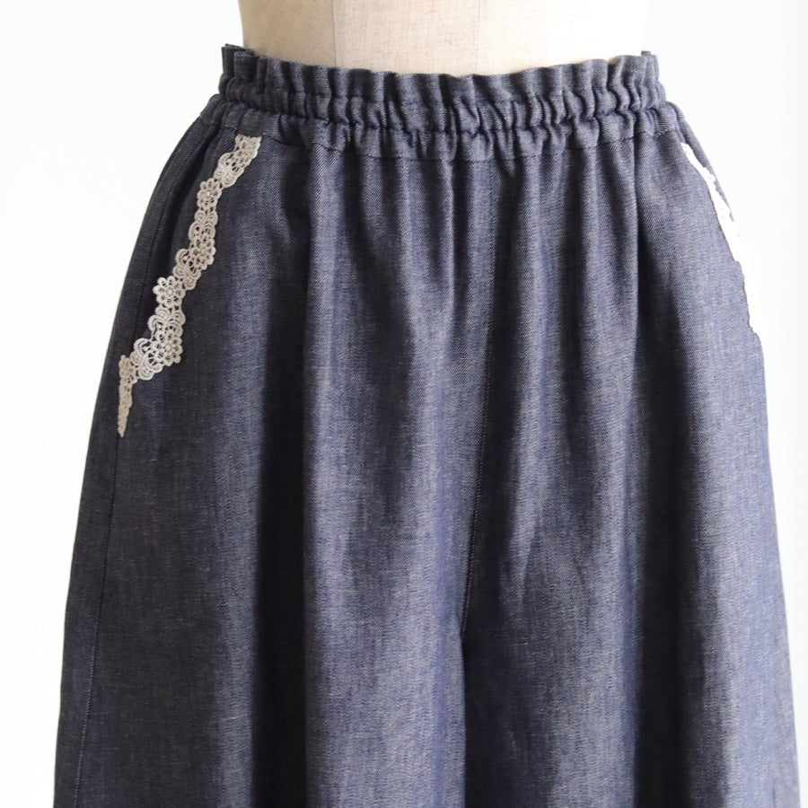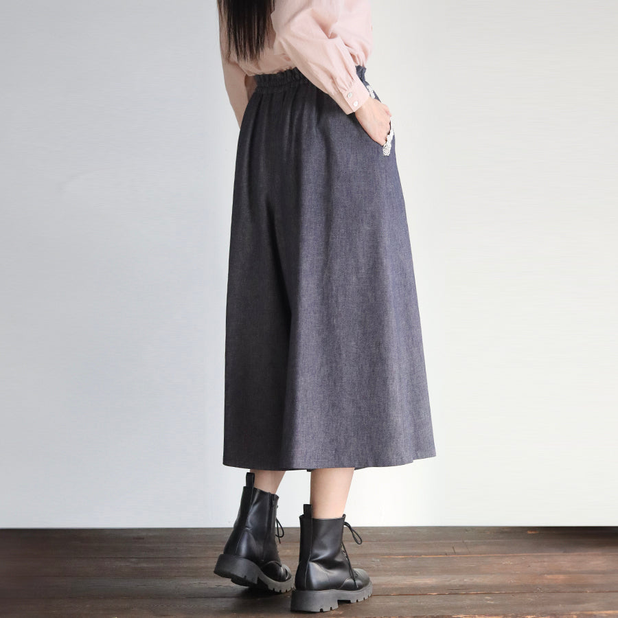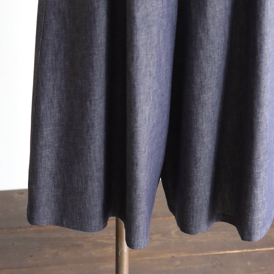 ゆったり履きやすいコットンリネンのデニムワイドパンツ。