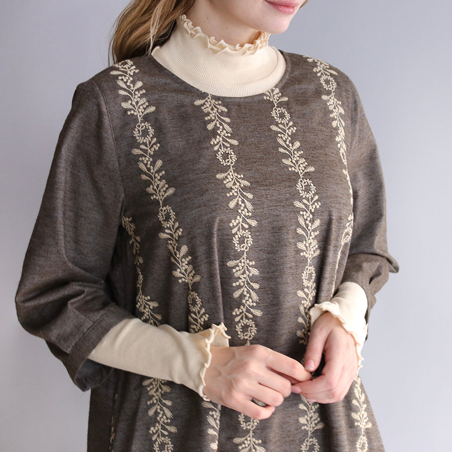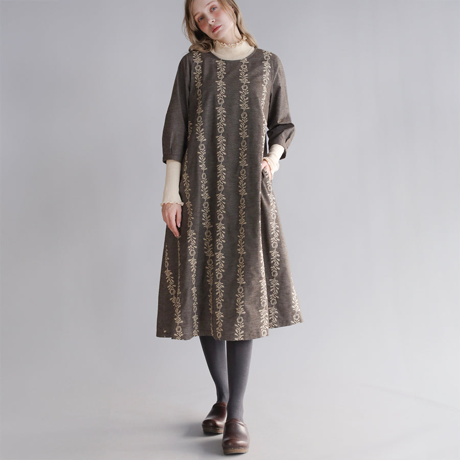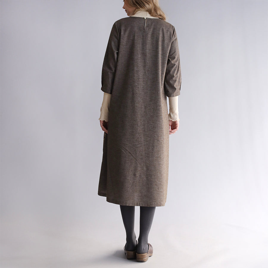 ほんのり起毛したやわらかなコットンツイルにオリジナル刺繍をのせた"かりん刺繍"シリーズのワンピース。
