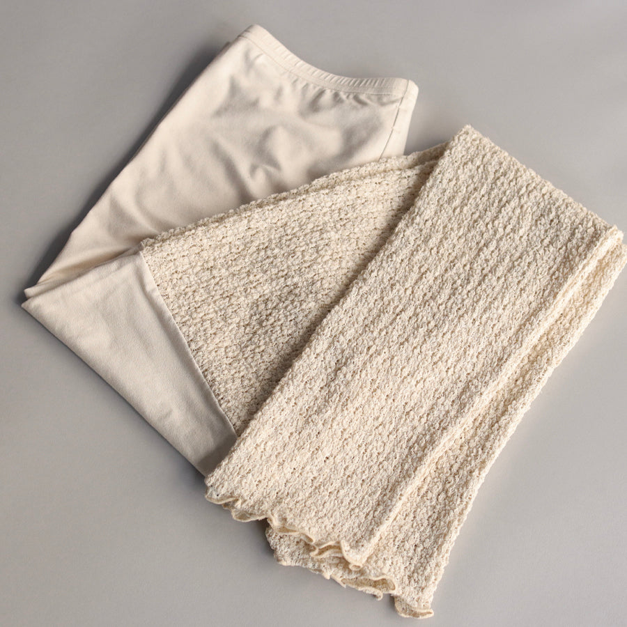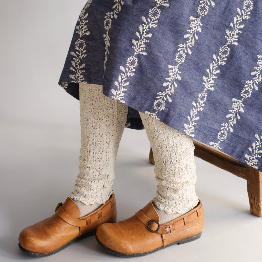 ぽこぽことふくらみのあるストレッチラッセル素材で作ったレギンス。