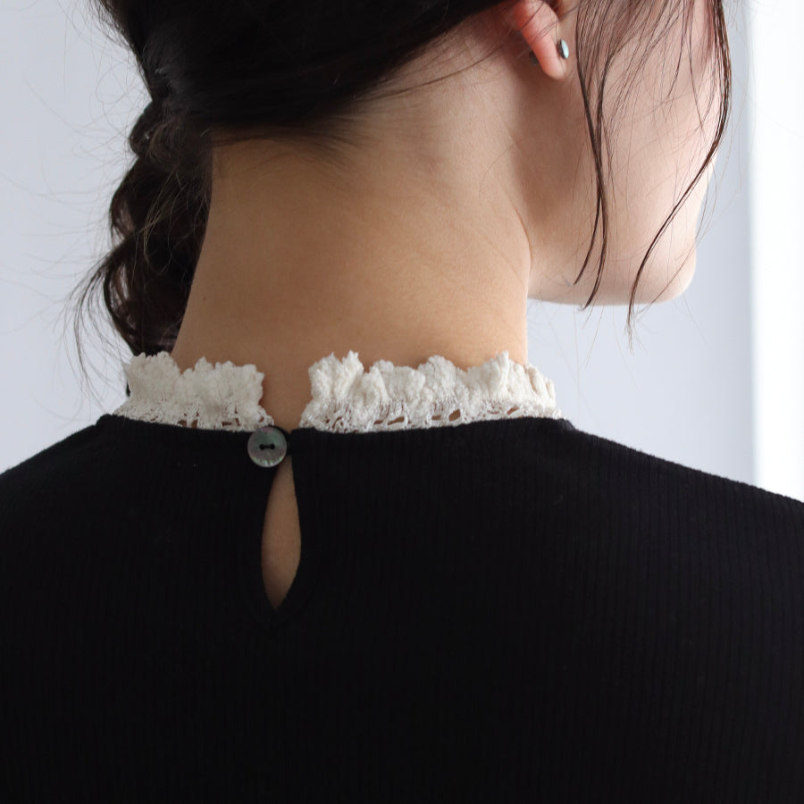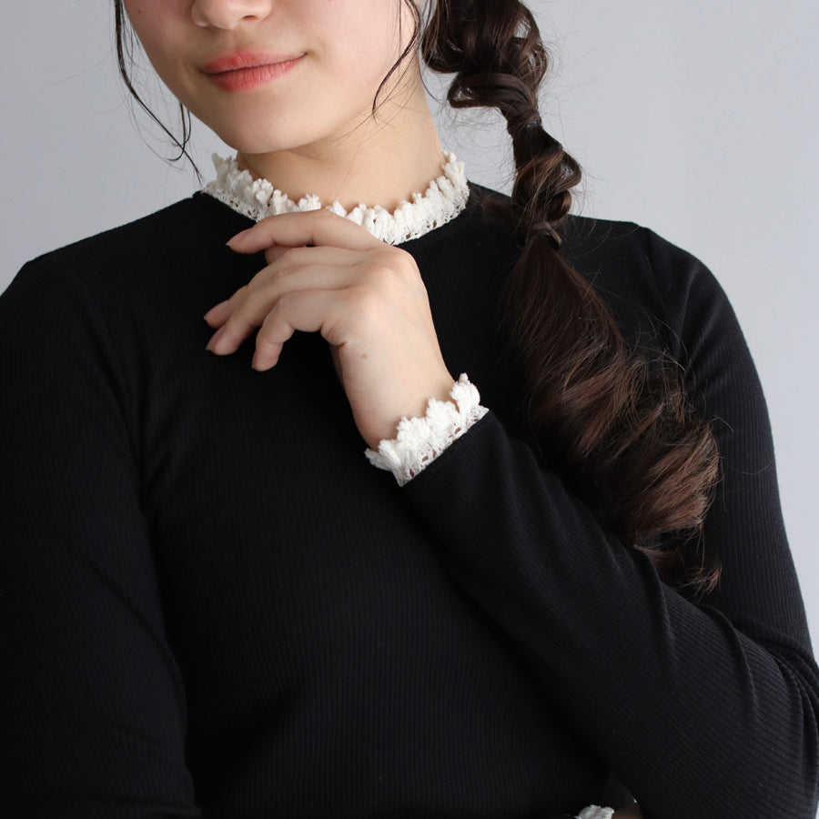 襟元とお袖にモール糸で作ったトーションレースを装飾しています。