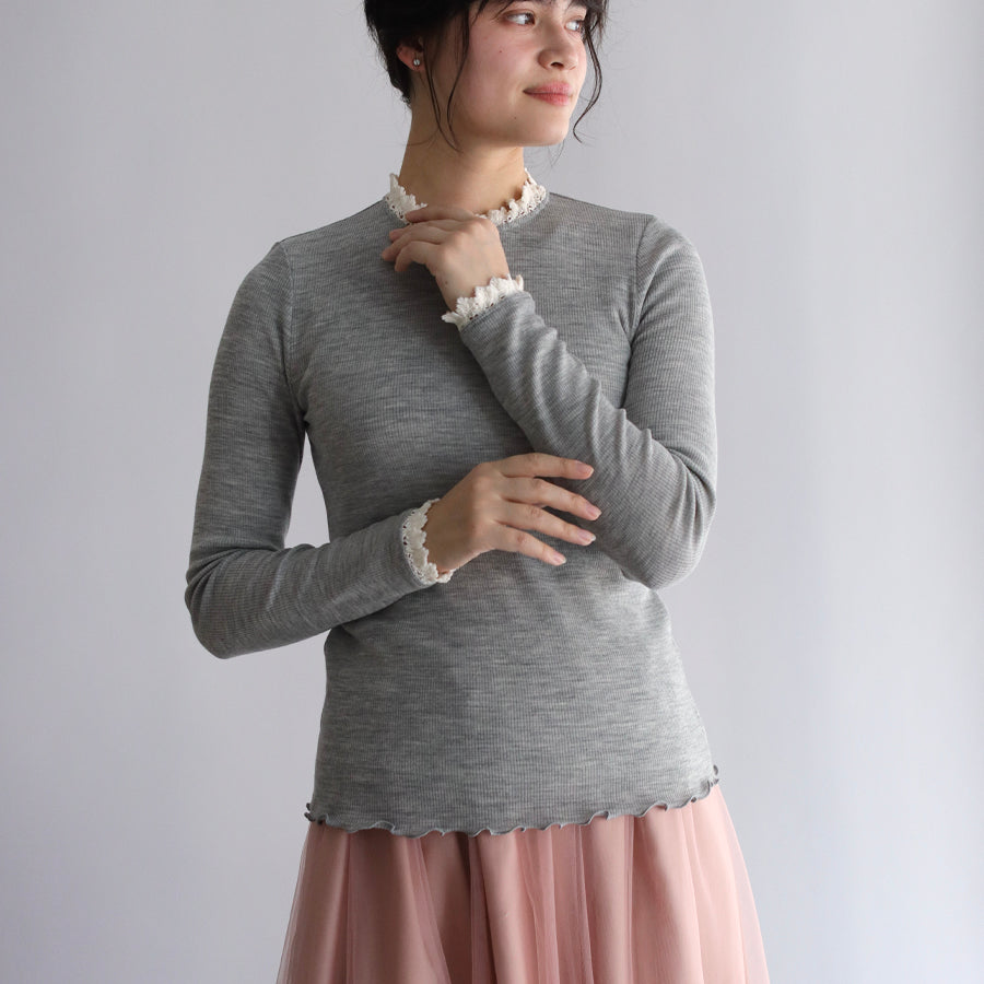 細番手のウール糸で作られているため、なめらかで肌ざわりの良い風合いが特徴。